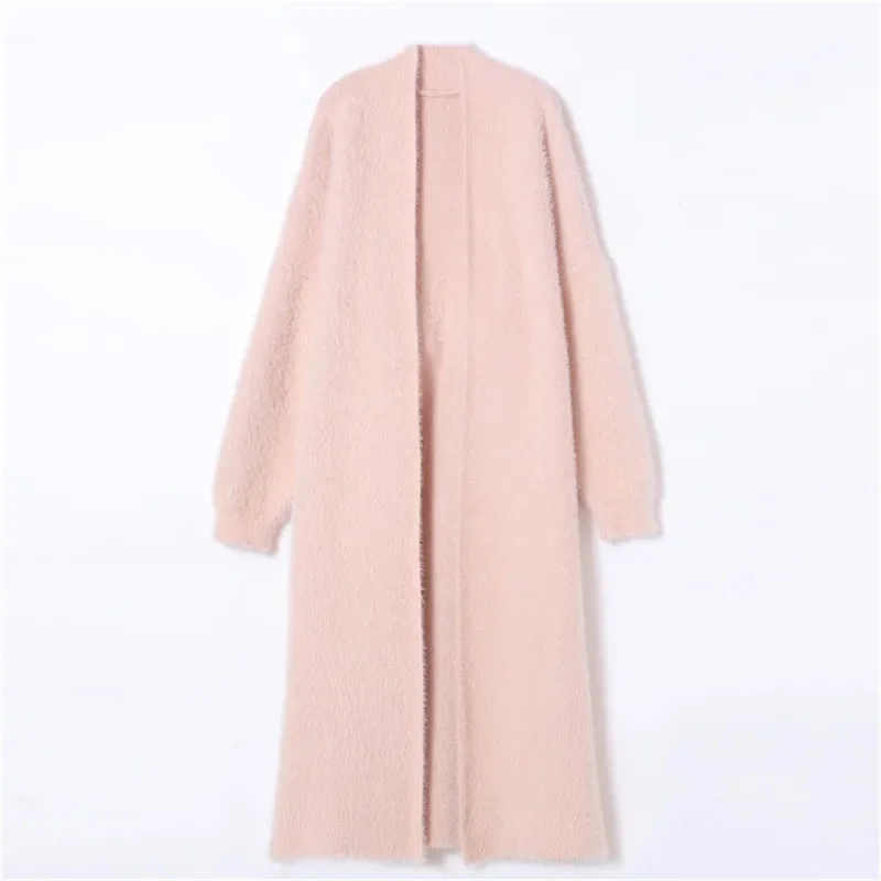 7 recensioni per 023 autunno/inverno stile pigro sciolto lunghezza al ginocchio addensato puro imitazione visone pile maglione lavorato a maglia Cardigan cappotto cappotto da donna
