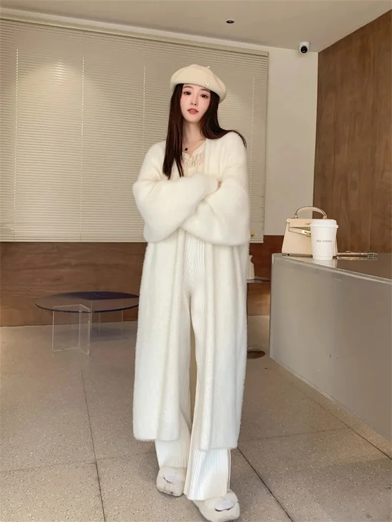 023 autunno/inverno stile pigro sciolto lunghezza al ginocchio addensato puro imitazione visone pile maglione lavorato a maglia Cardigan cappotto cappotto da donna