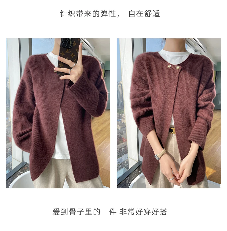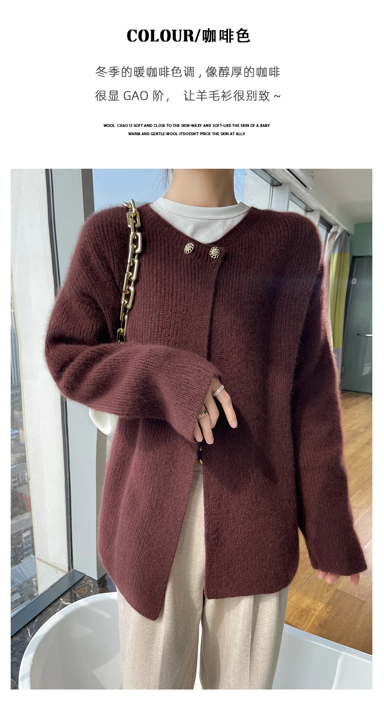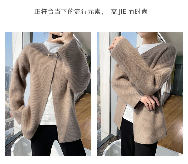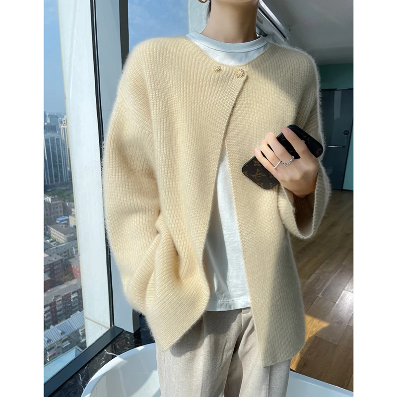 100% lana donna maglione invernale Cardigan donna collo tondo manica lunga giacca e maglione Cardigan lavorato a maglia donna