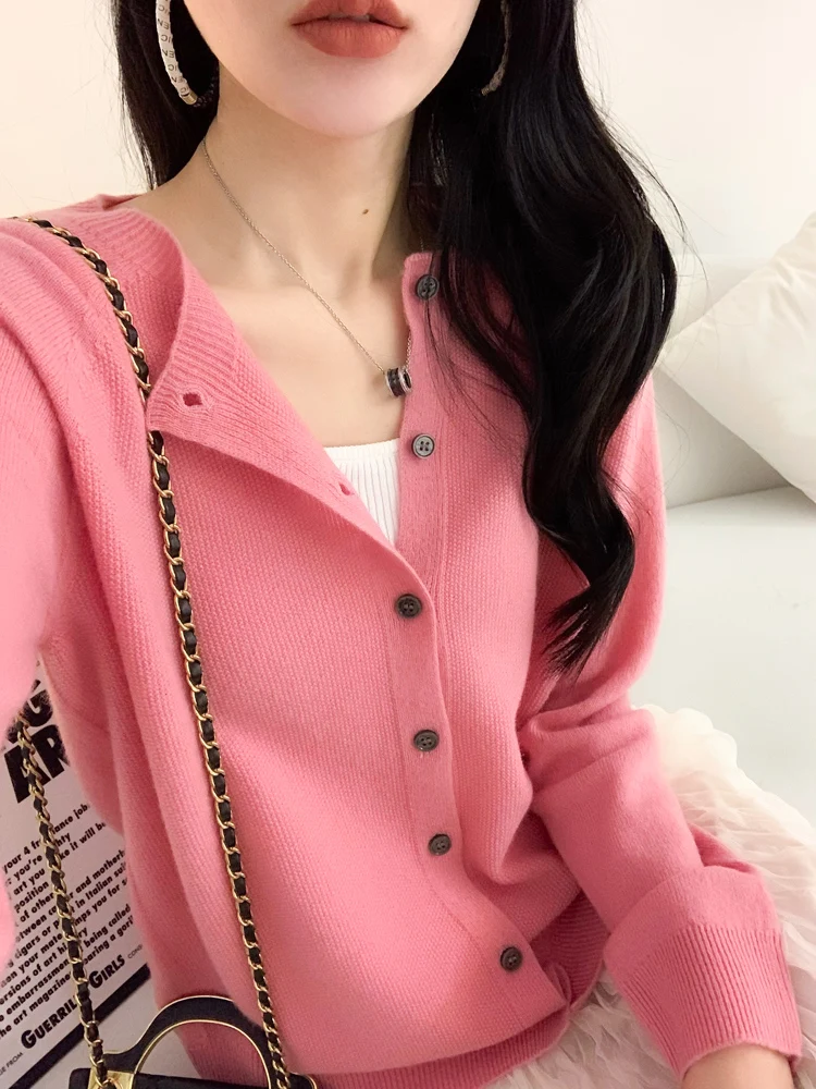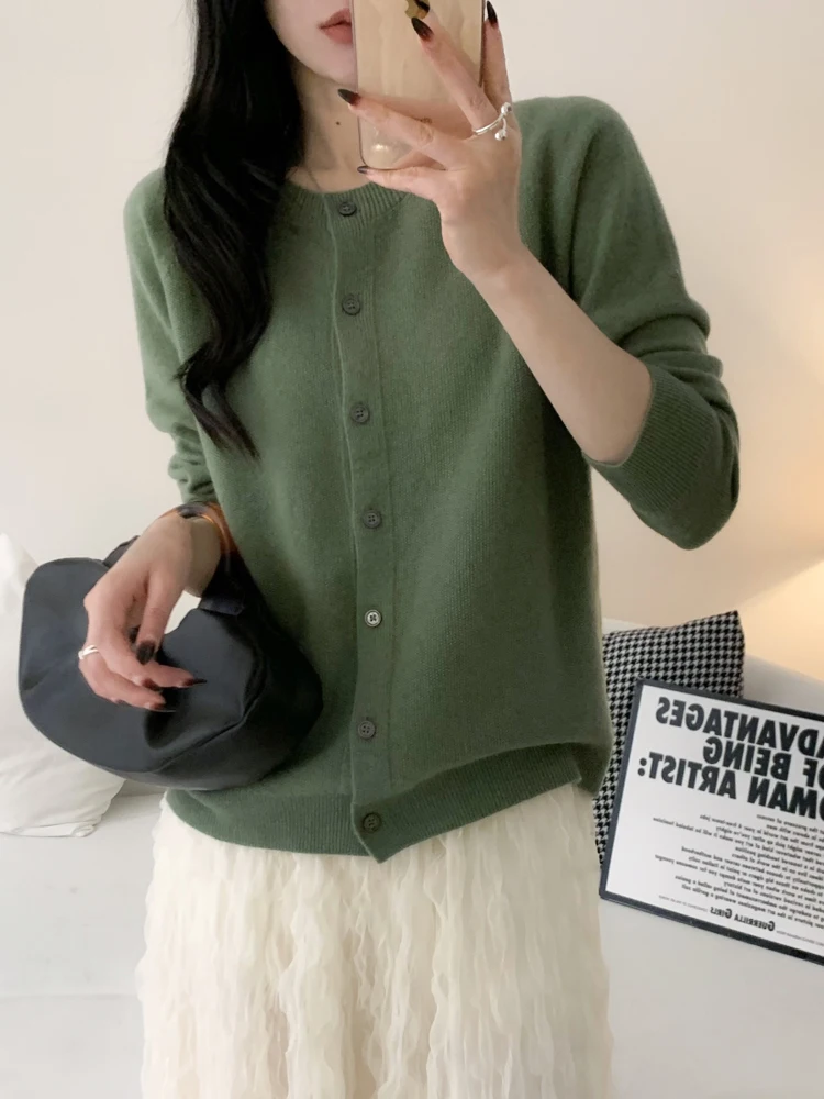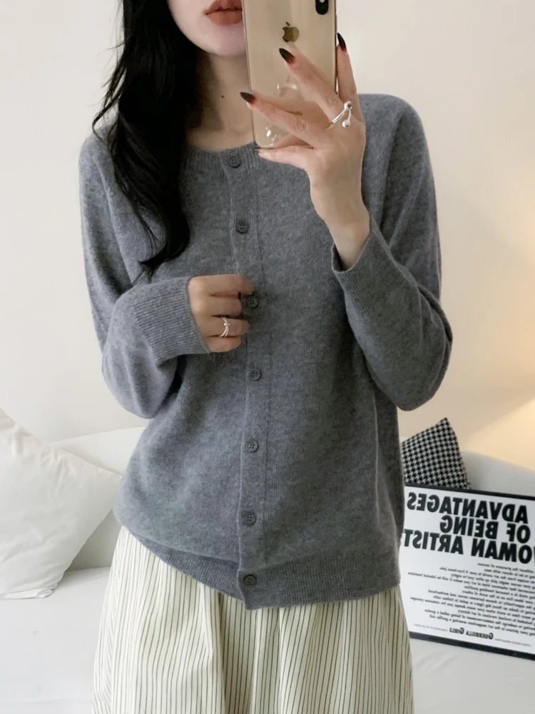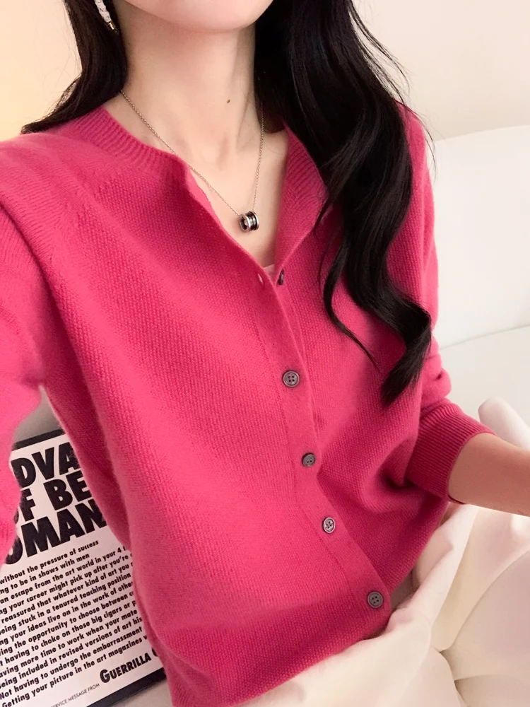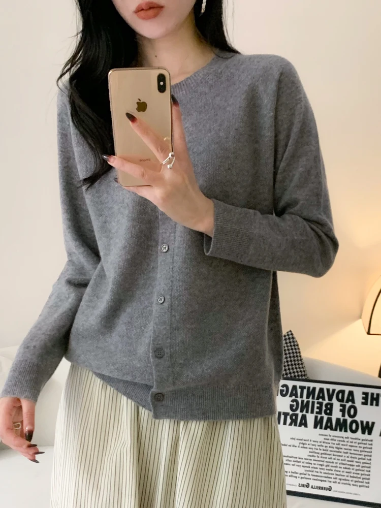 100% lana merino maglieria autunno inverno Grace tinta unita Nozioni di base cardigan morbido caldo casual maglione con o-collo donna abbigliamento top