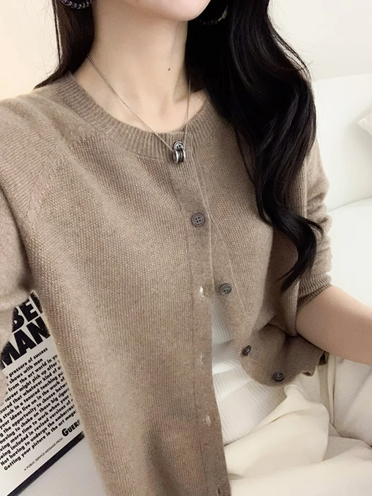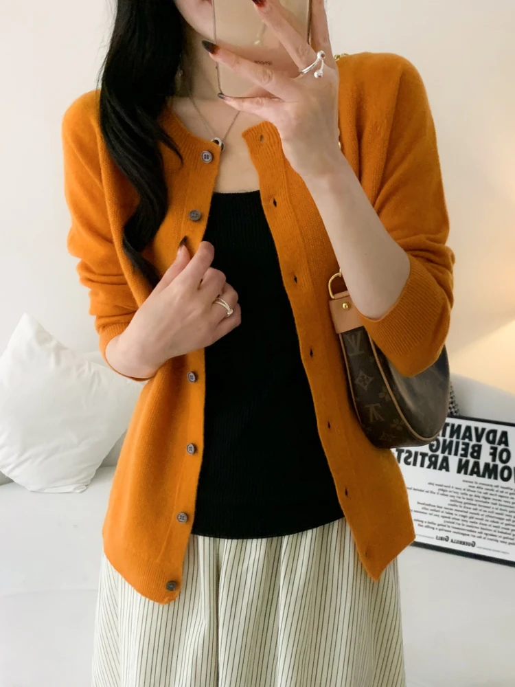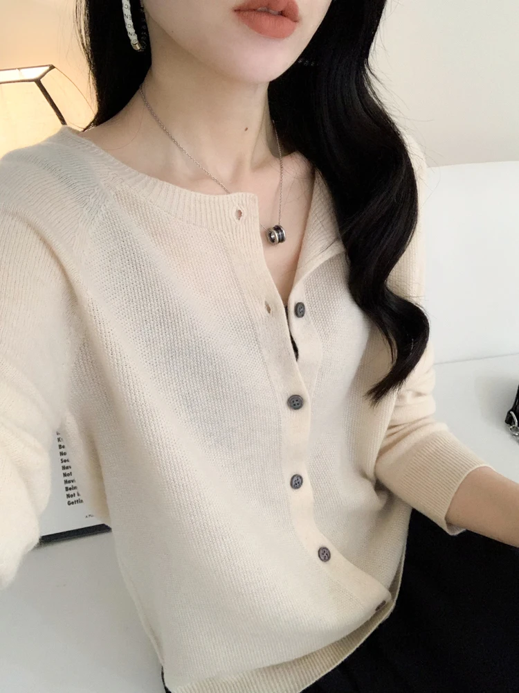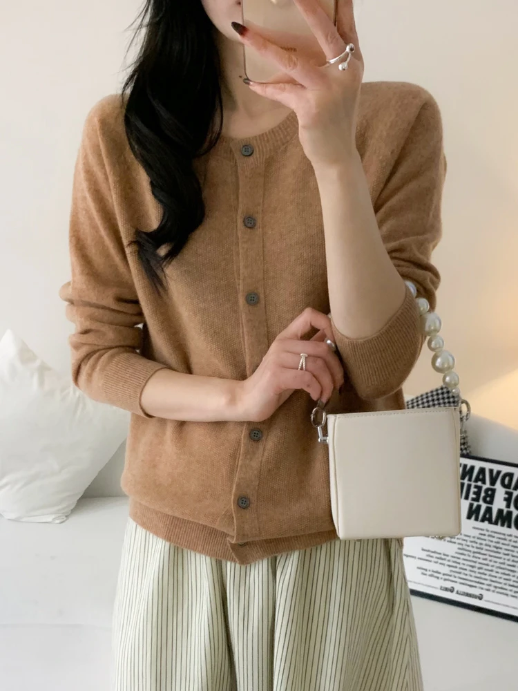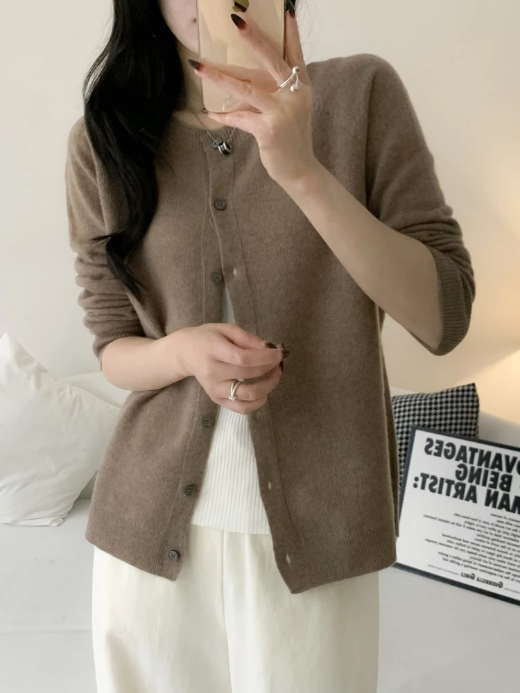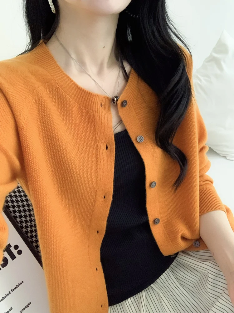 100% lana merino maglieria autunno inverno Grace tinta unita Nozioni di base cardigan morbido caldo casual maglione con o-collo donna abbigliamento top