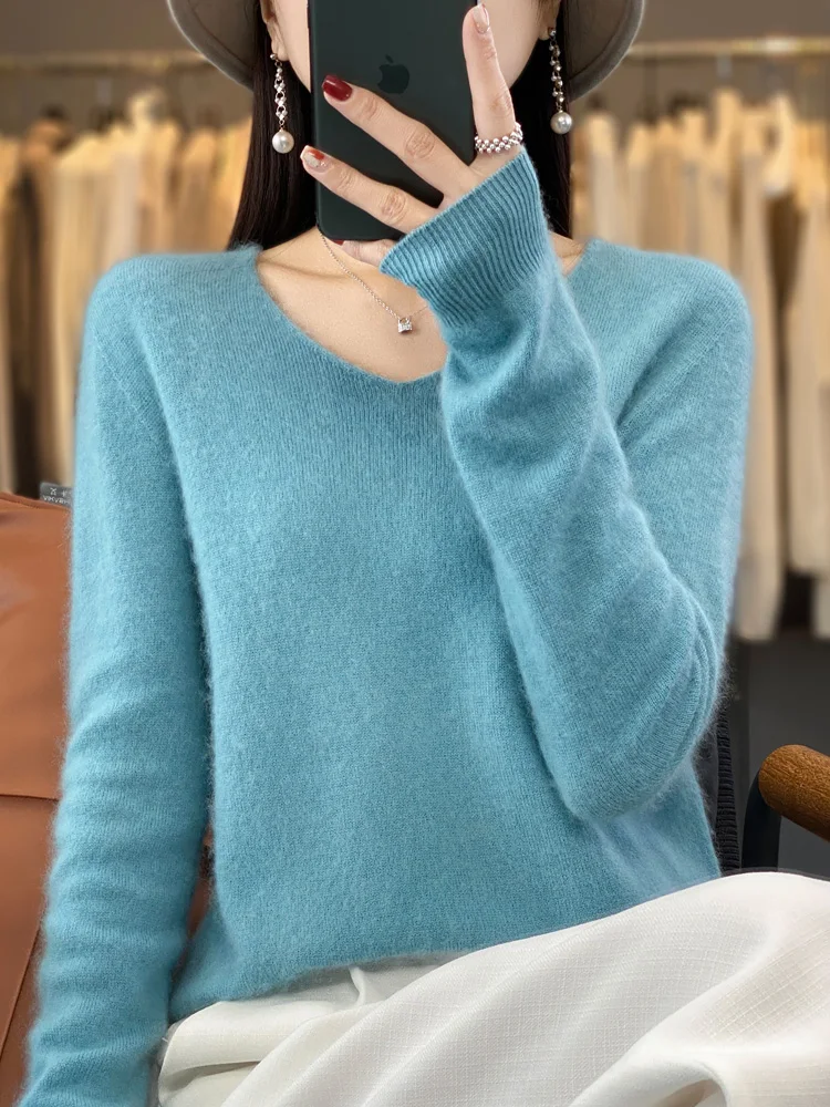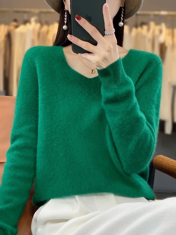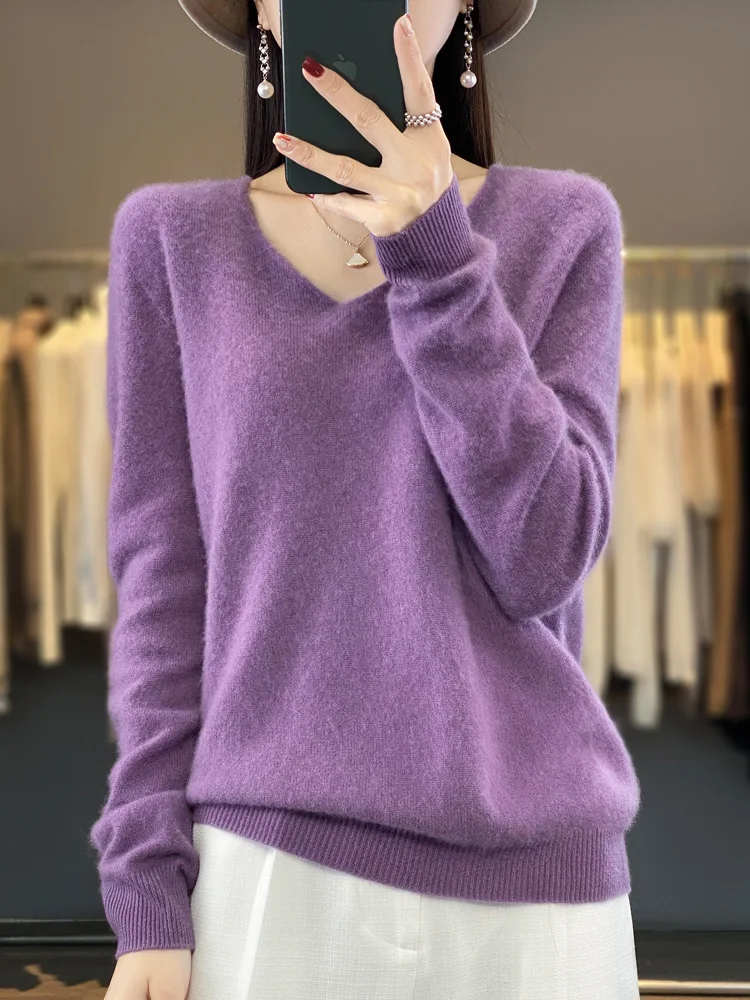 2 recensioni per 100% lana Merino maglione da donna con scollo a v pullover a maniche lunghe autunno inverno maglione di base maglieria in Cashmere abbigliamento femminile caldo