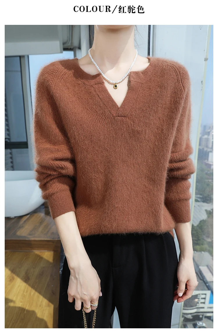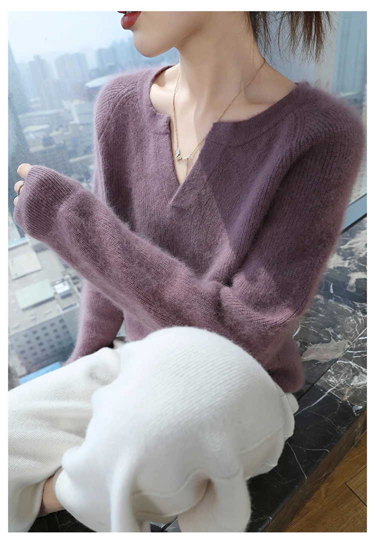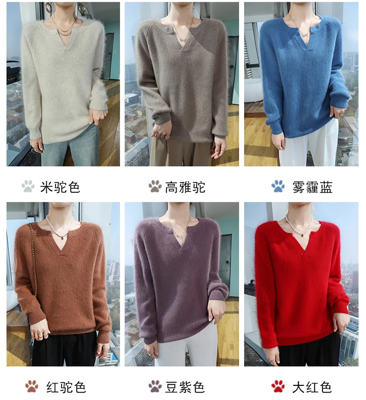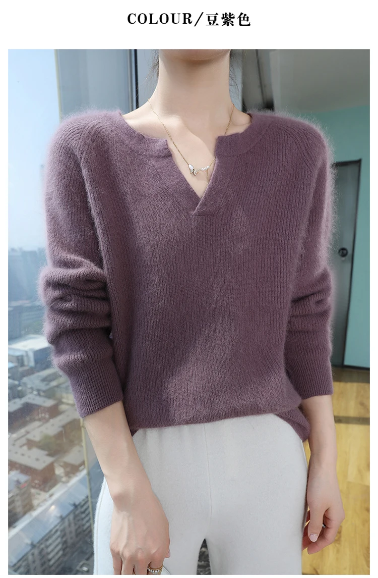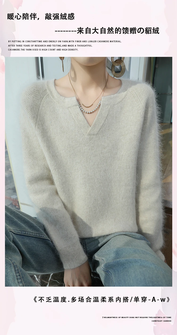 100% puro visone maglione di cachemire delle signore con scollo a V pullover di maglia spessa casual allentato camicetta a maniche lunghe autunno nuova camicia di grandi dimensioni