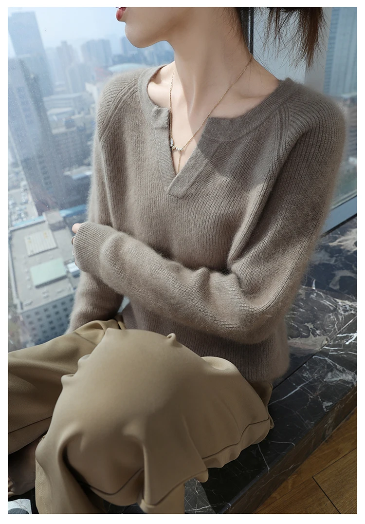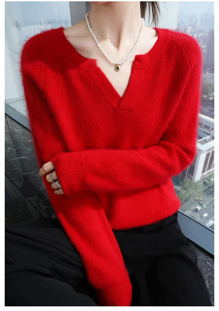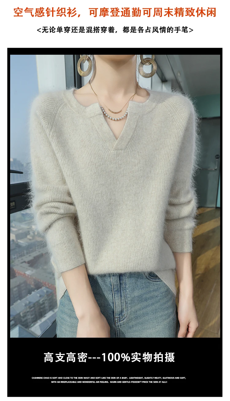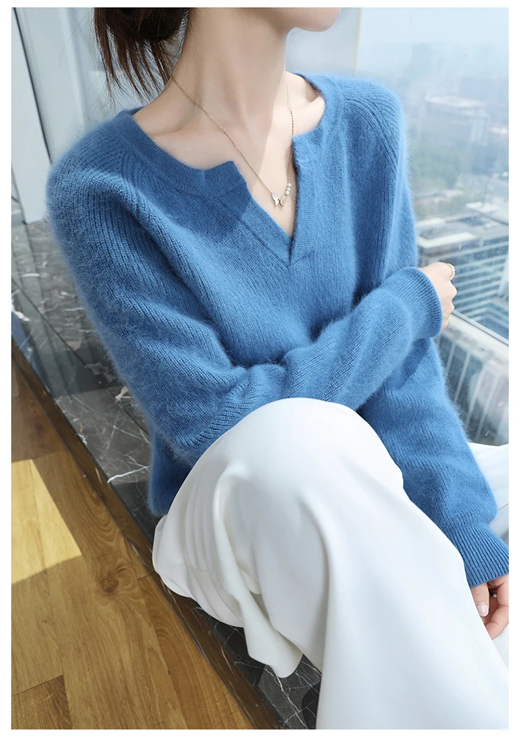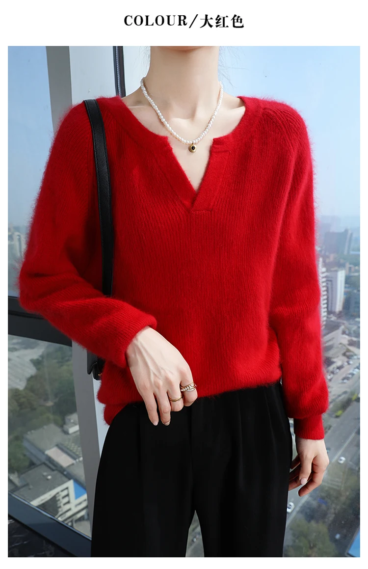 100% puro visone maglione di cachemire delle signore con scollo a V pullover di maglia spessa casual allentato camicetta a maniche lunghe autunno nuova camicia di grandi dimensioni