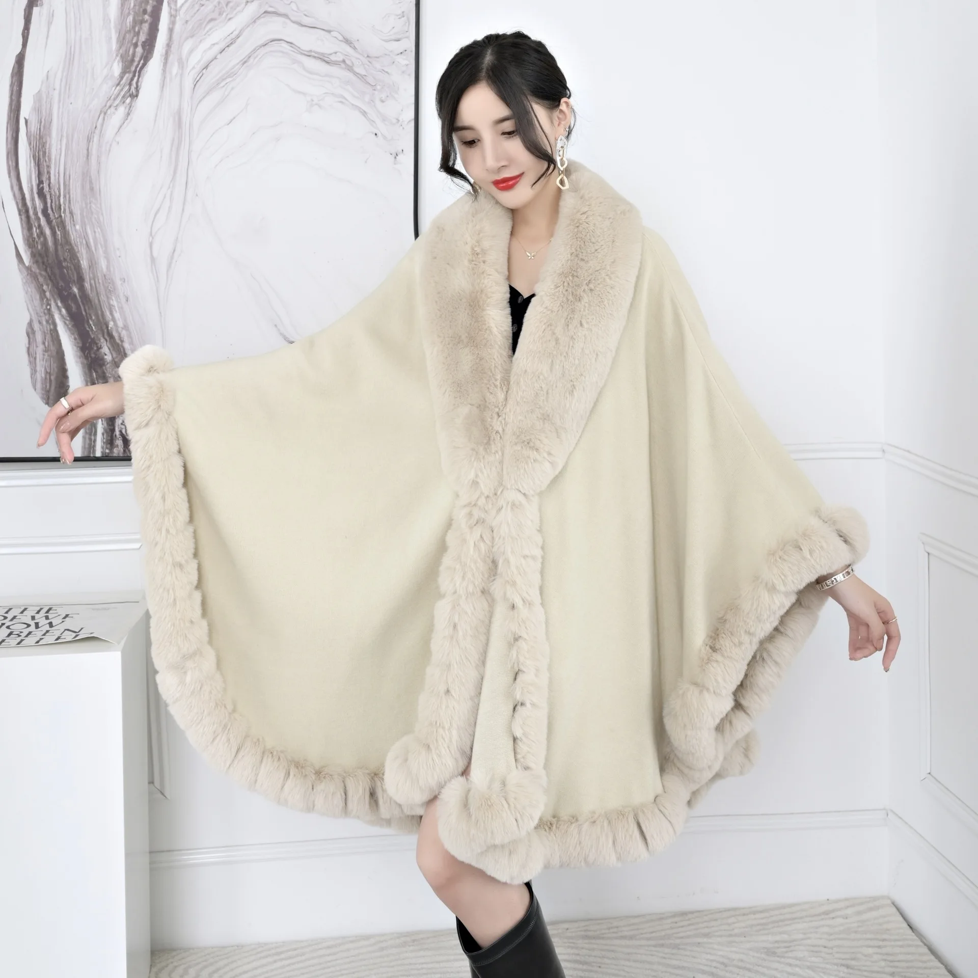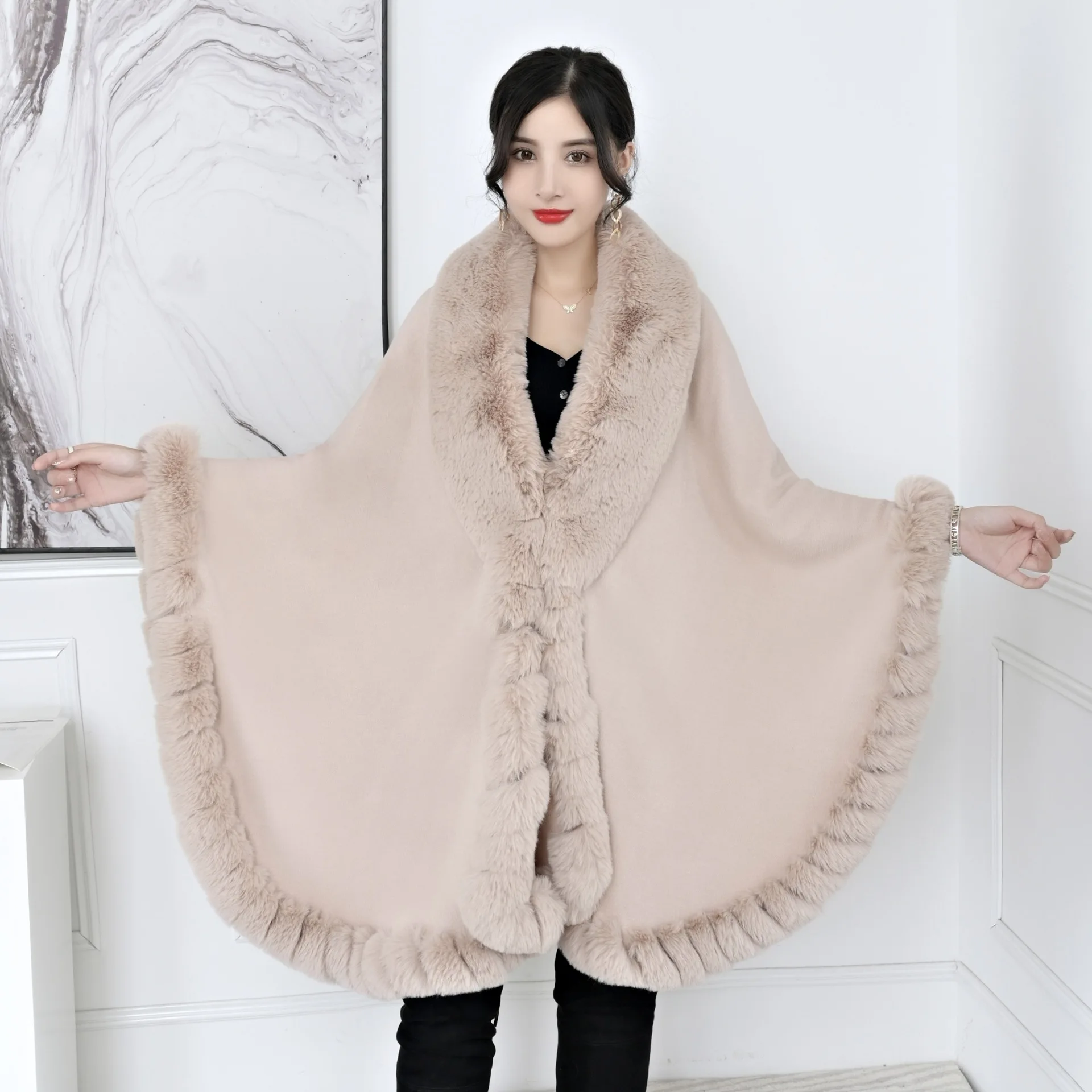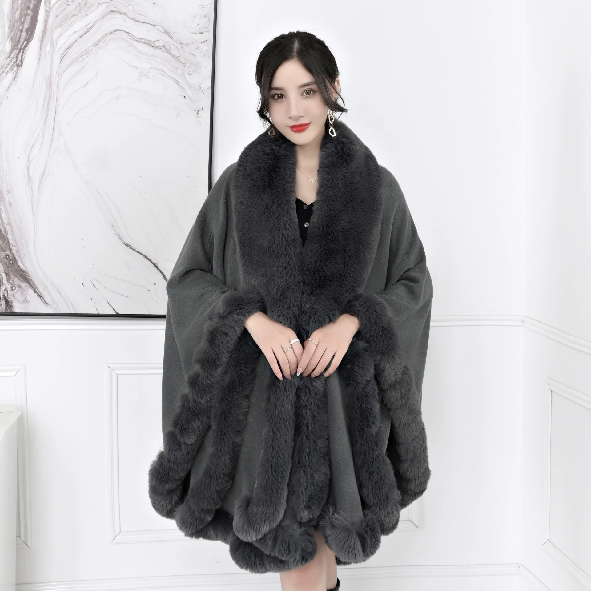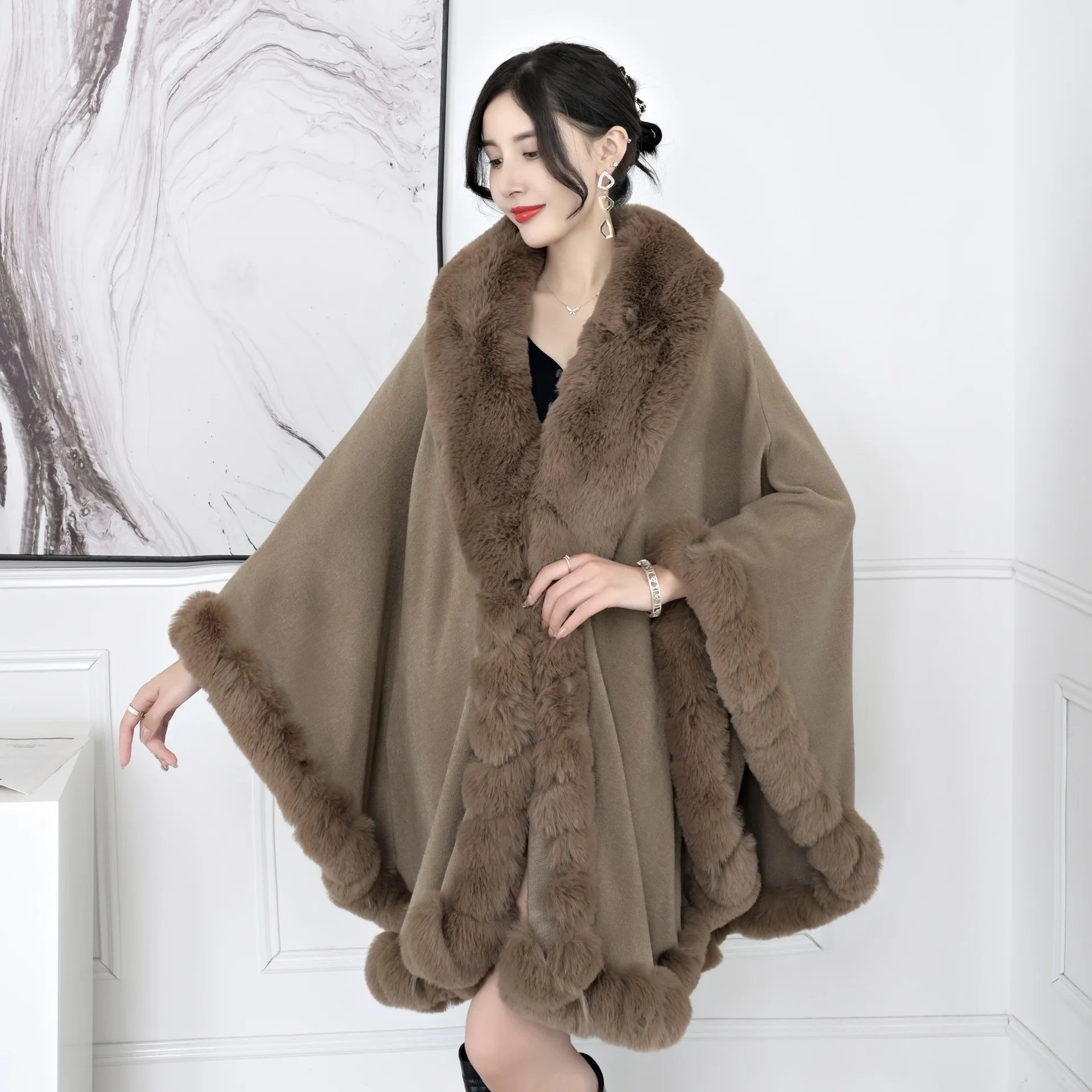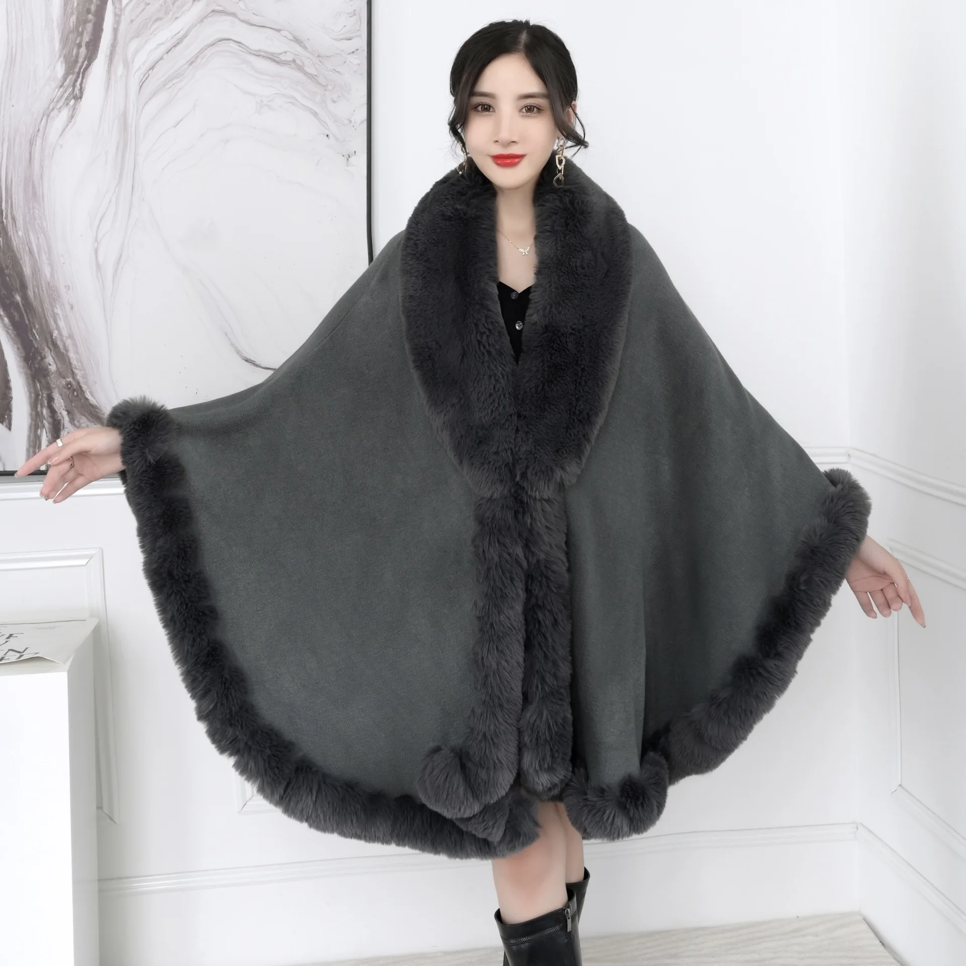 16 colori inverno caldo mantelle Plus Size maniche a pipistrello Poncho mantello donna Turn-Down collo in pelliccia sintetica Cardigan allentato scialle cappotto