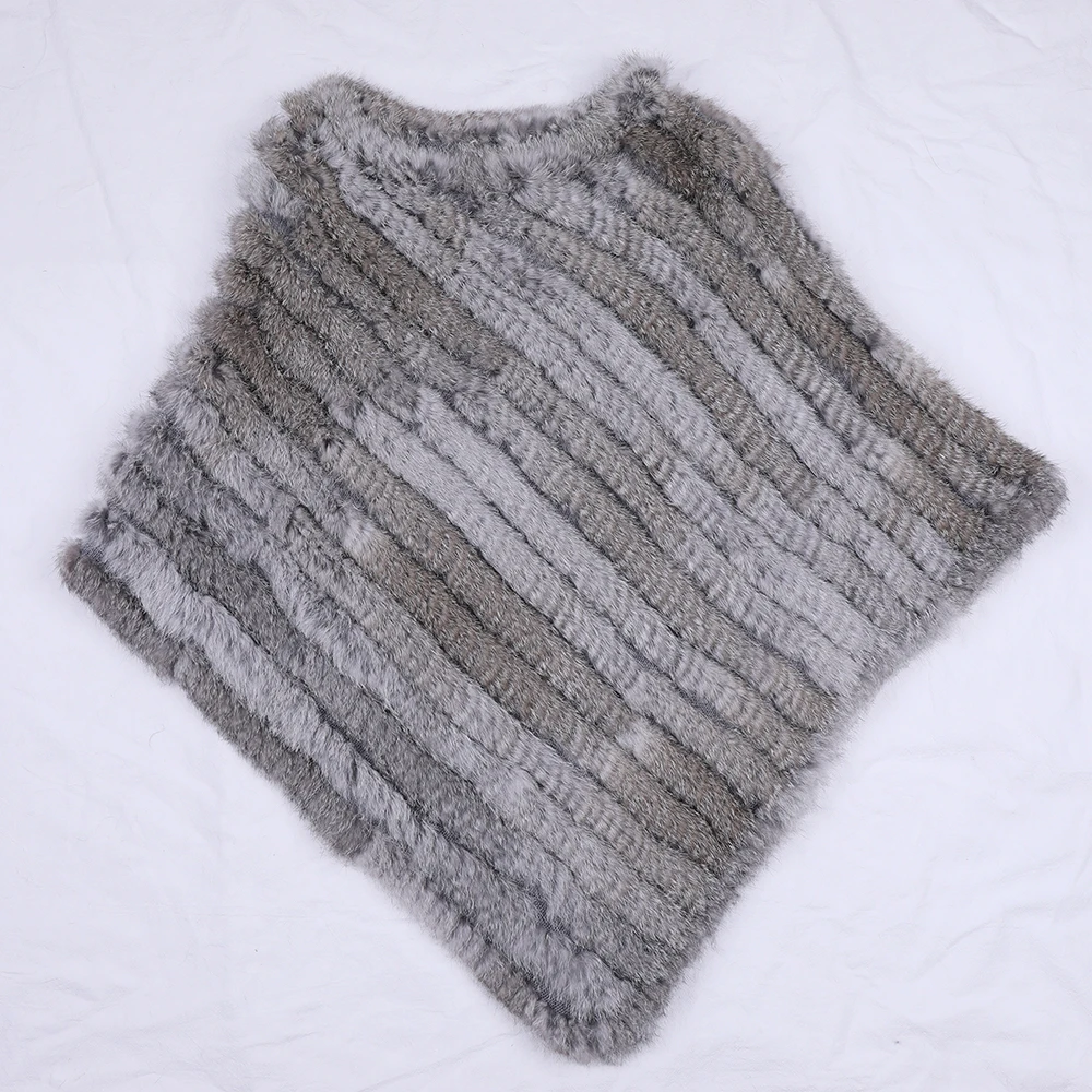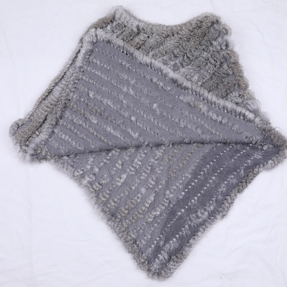 2021 vendita calda donne scialle di pelliccia di coniglio reale naturale lavorato a maglia vera pelliccia di coniglio Poncho sciarpa autunno inverno pelliccia di coniglio Pashmina