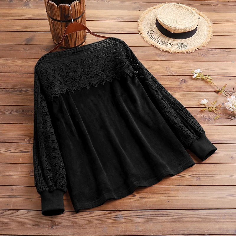 4 recensioni per 2023 Celmia donna primavera peluche pullover maglioni elegante manica lunga lanterna camicia tunica moda pizzo Hollow pelliccia Top Streetwear