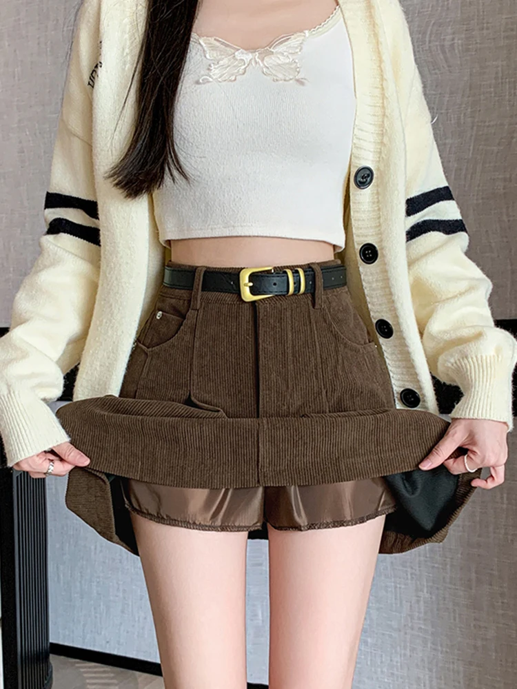 2024 Autunno e Inverno Mini Gonna a pieghe Moda donna Streetwear A-line Skater Kawaii Gonne con cintura Ragazza della scuola coreana Saia