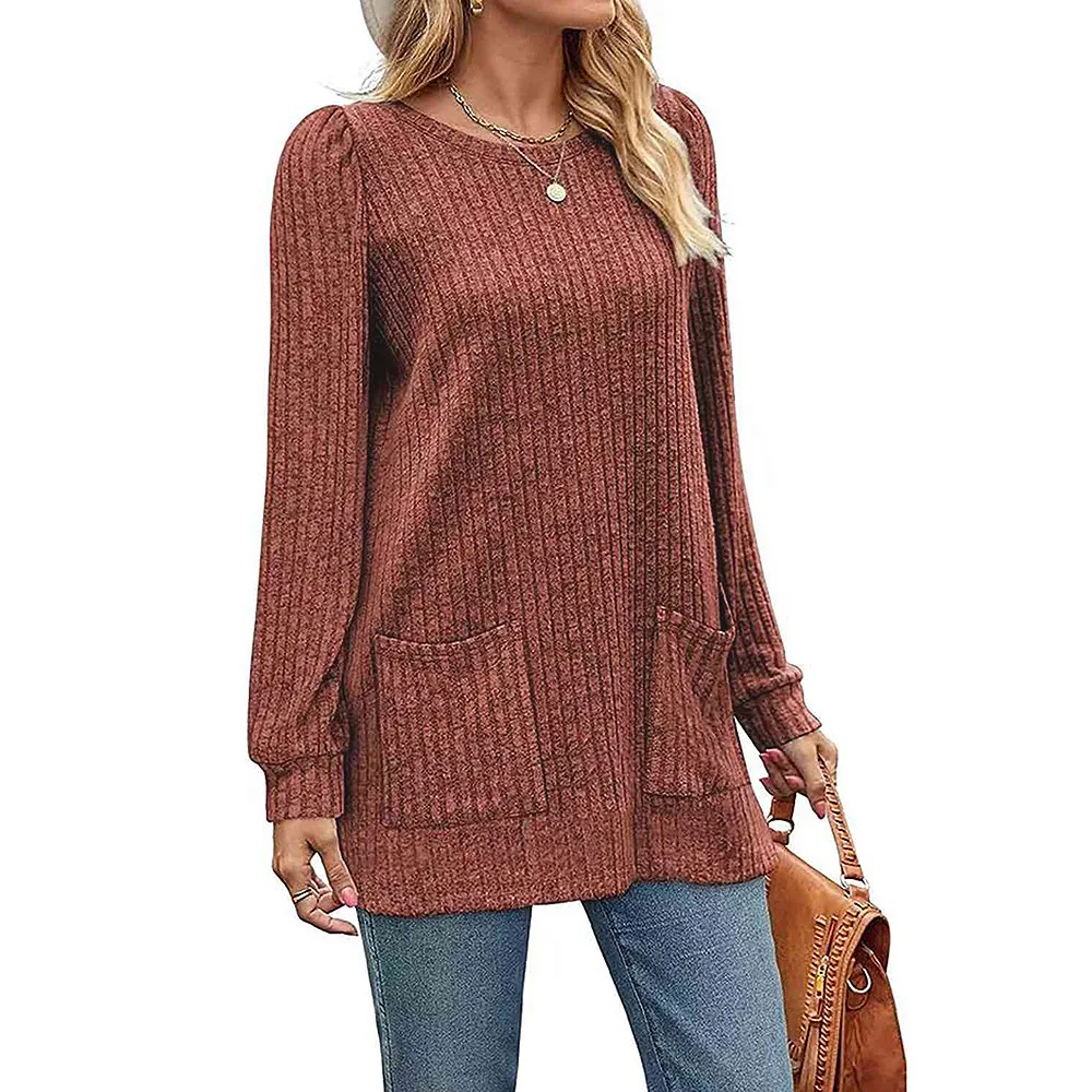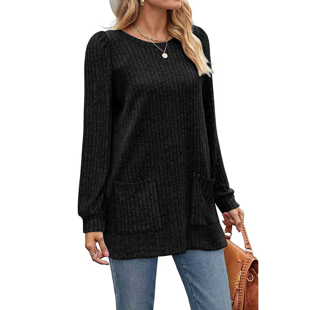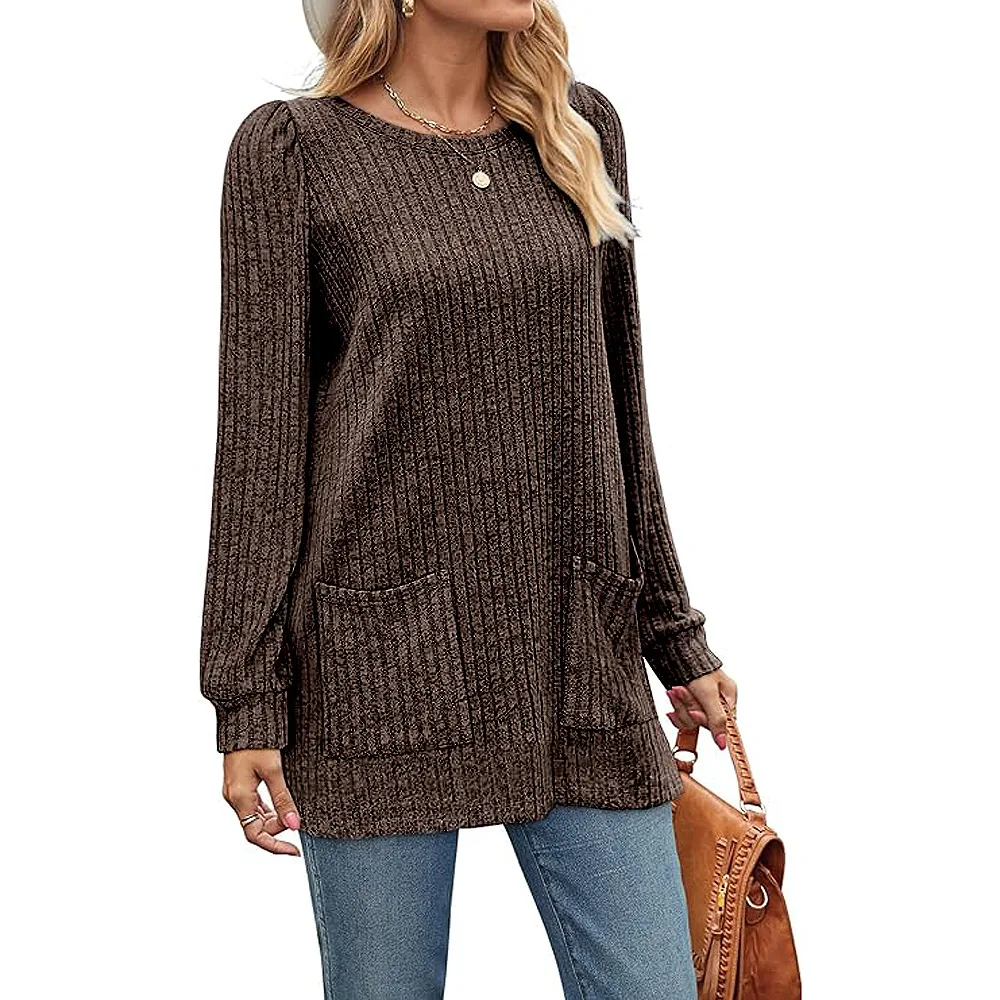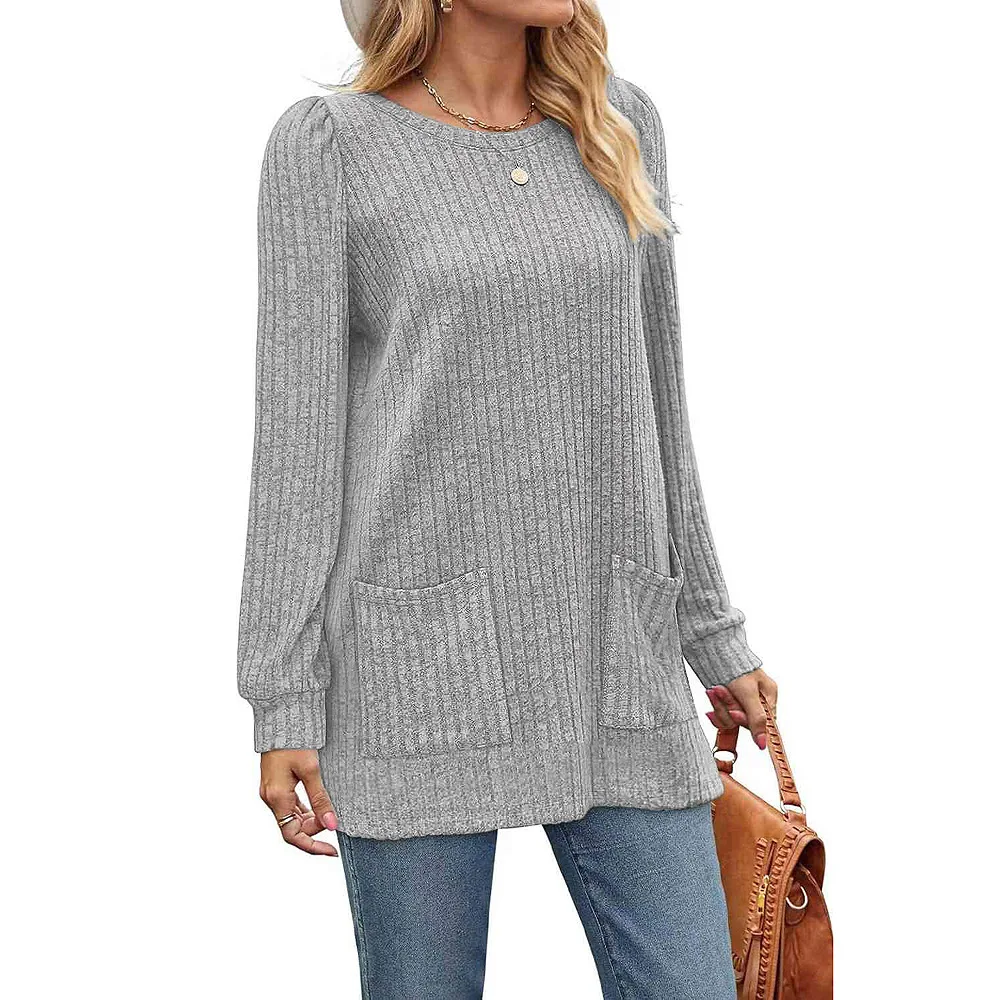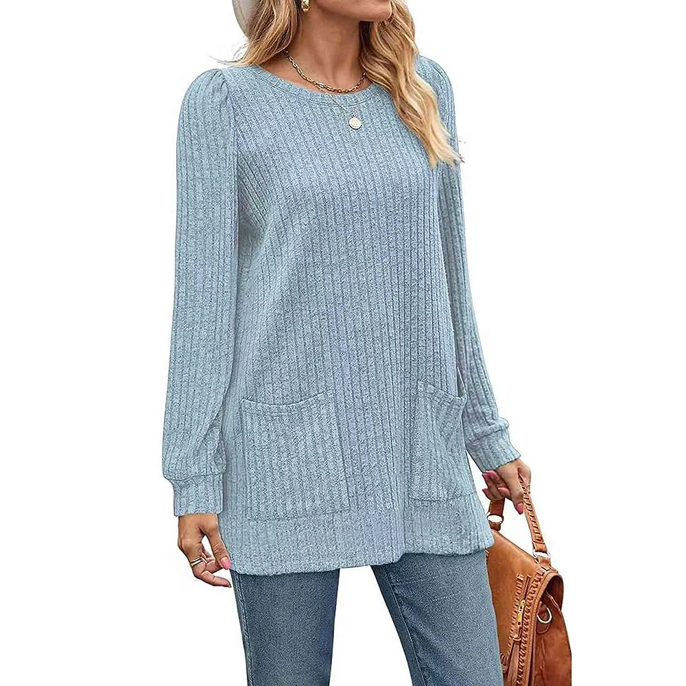 2024 Europa e Stati Uniti Autunno e inverno nuovo maglione di media lunghezza pit strip abito da donna con tasca in tinta unita