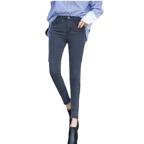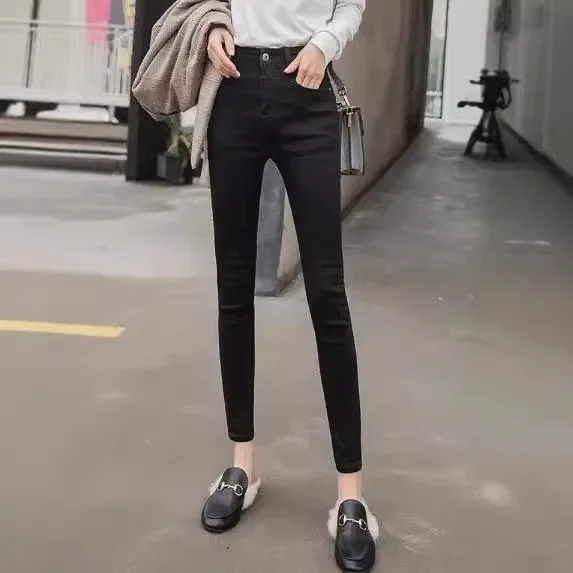 2024 Jeans foderati in pile ispessito a vita alta da donna di nuovo stile Pantaloni imbottiti in cotone nero Abbigliamento esterno alla moda