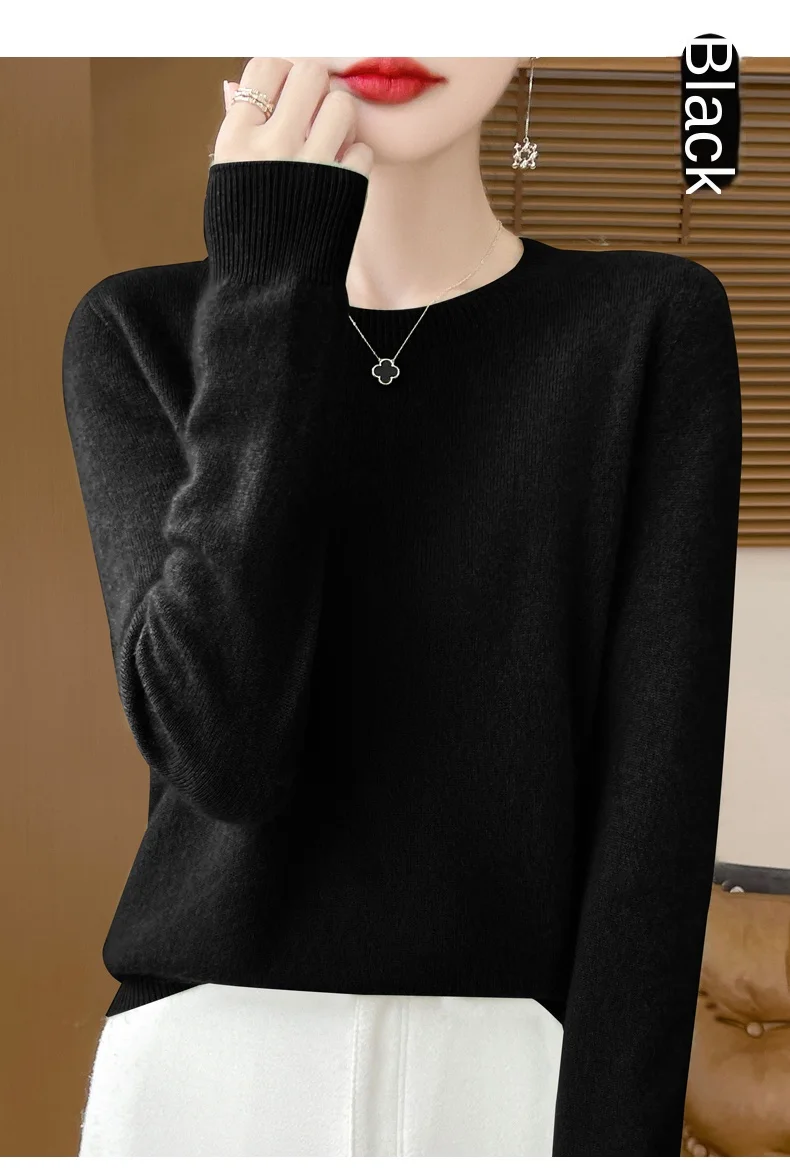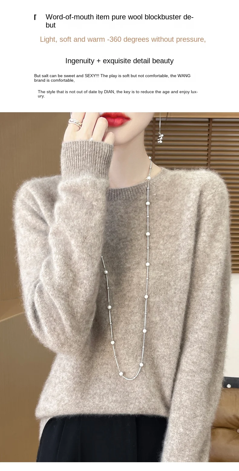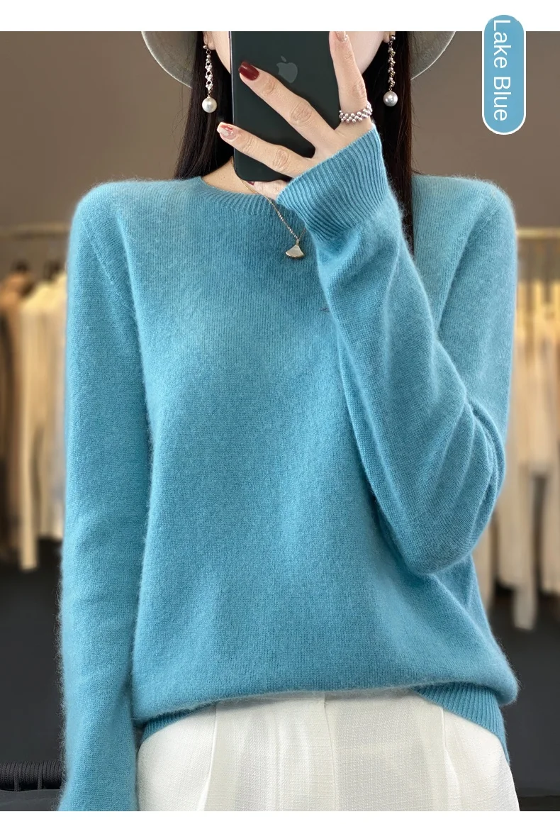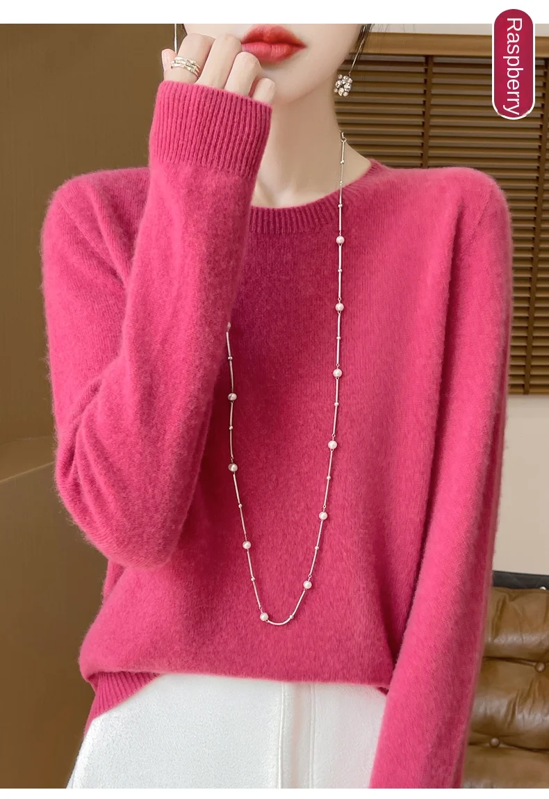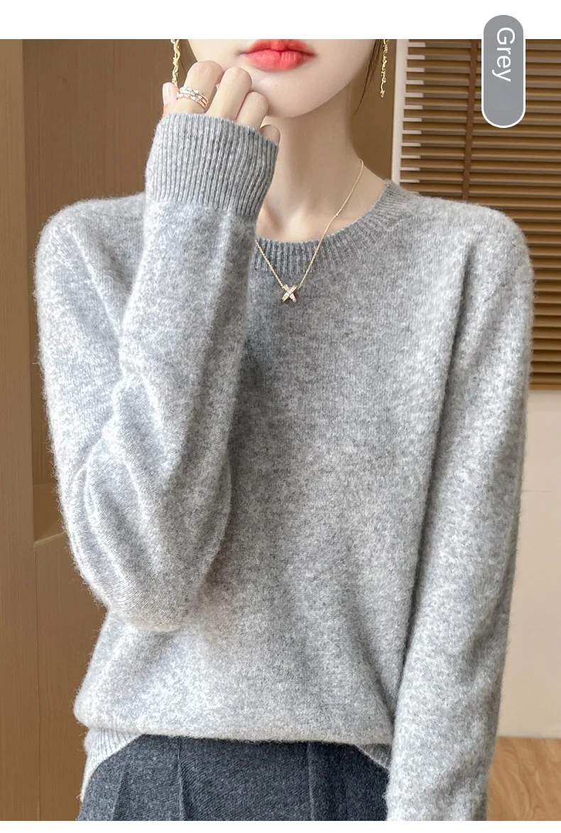 10 recensioni per 2024 moda 100% lana merino maglione pullover di cashmere O-Collo manica lunga donna maglieria autunno inverno abbigliamento Y2K top O Ling