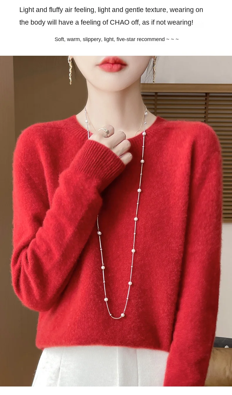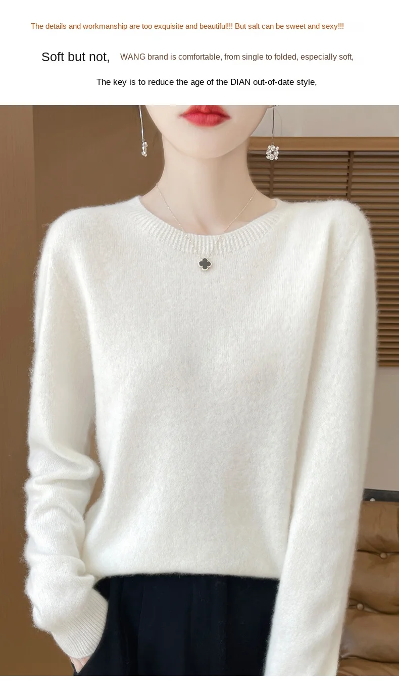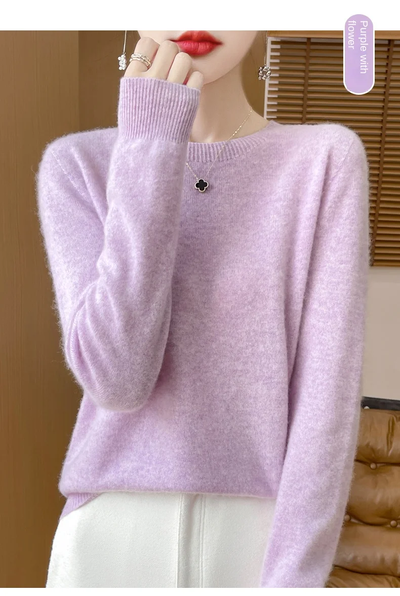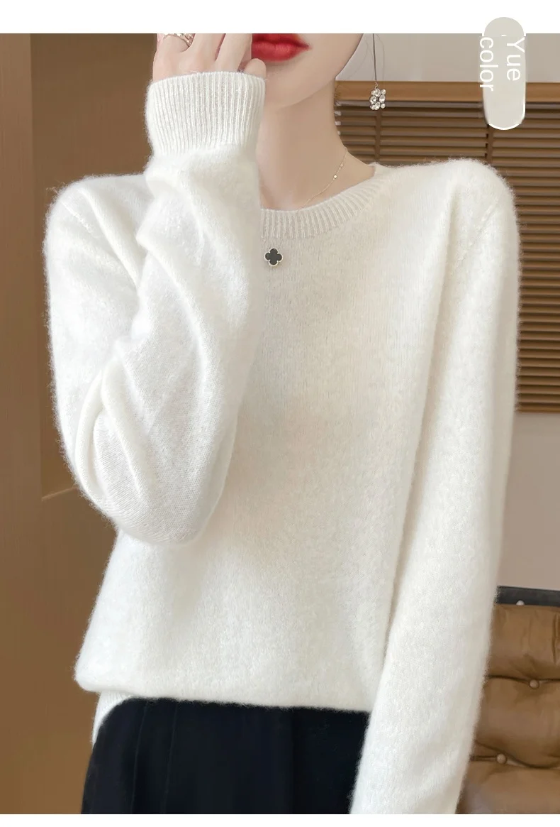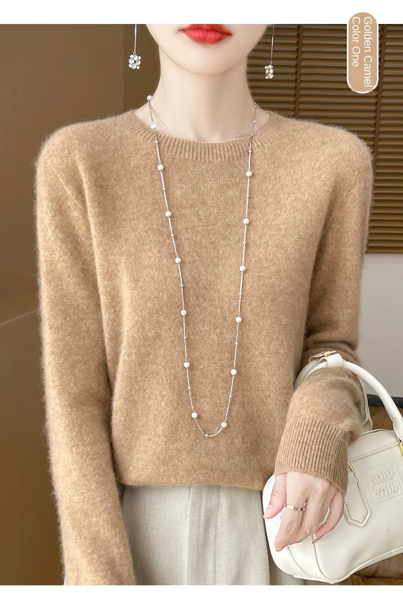10 recensioni per 2024 moda 100% lana merino maglione pullover di cashmere O-Collo manica lunga donna maglieria autunno inverno abbigliamento Y2K top O Ling