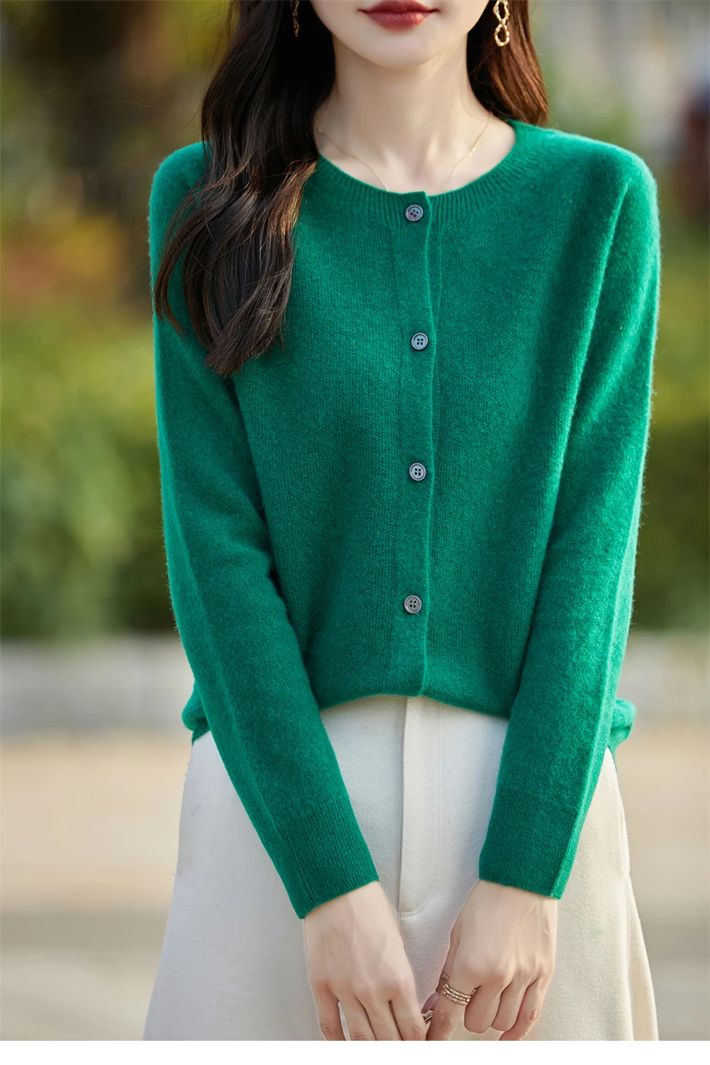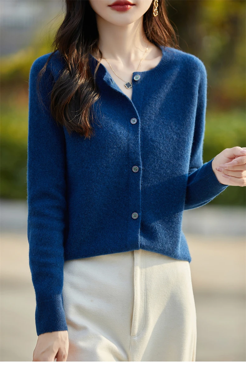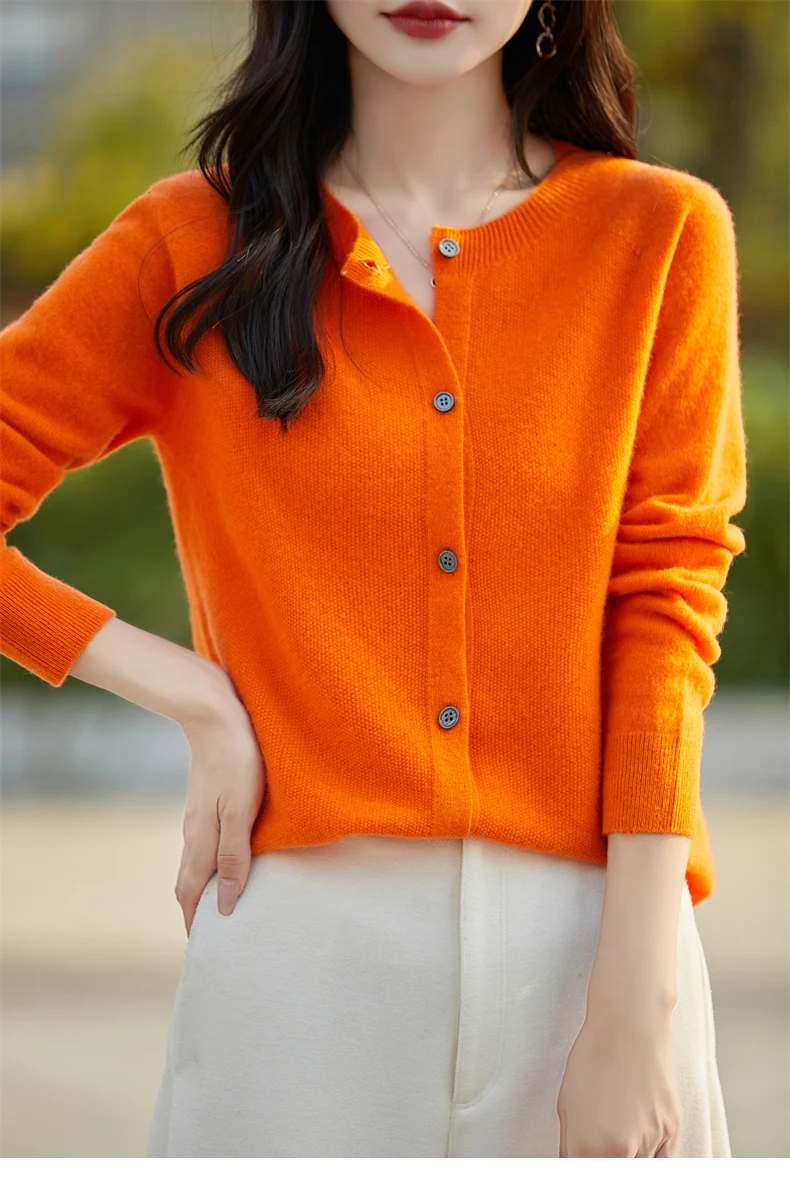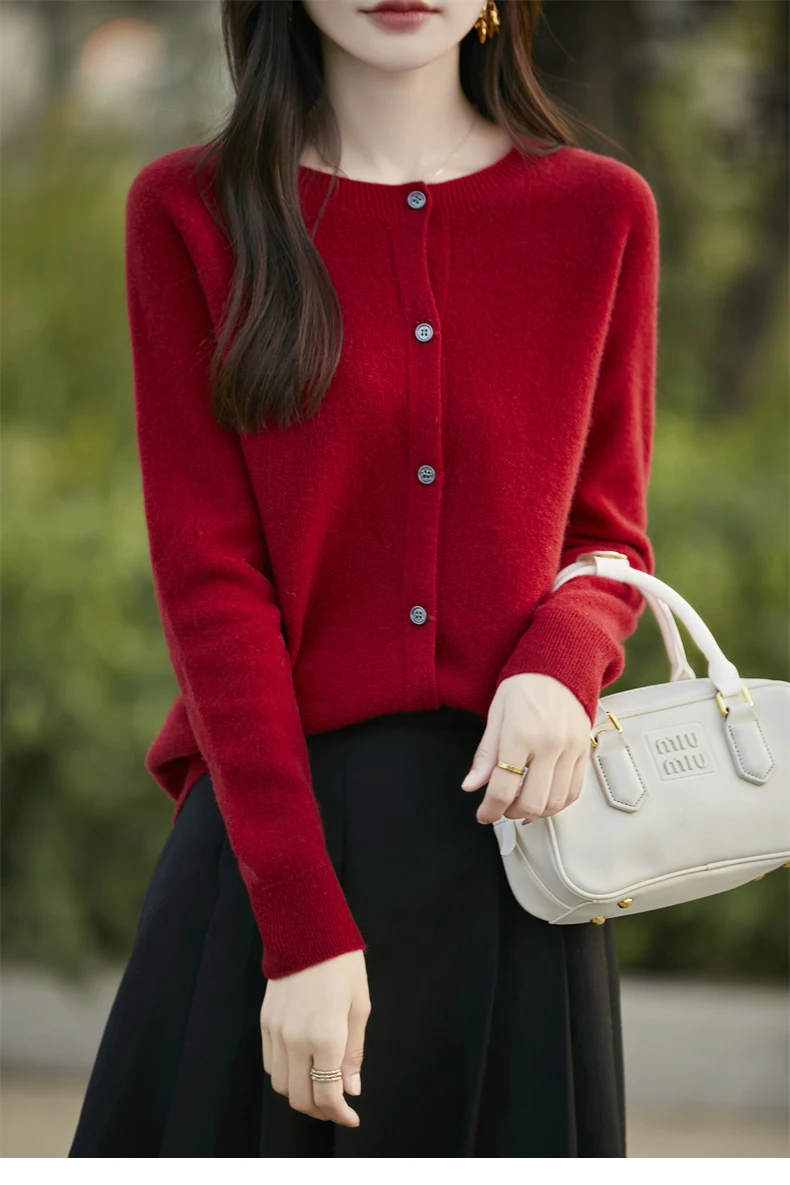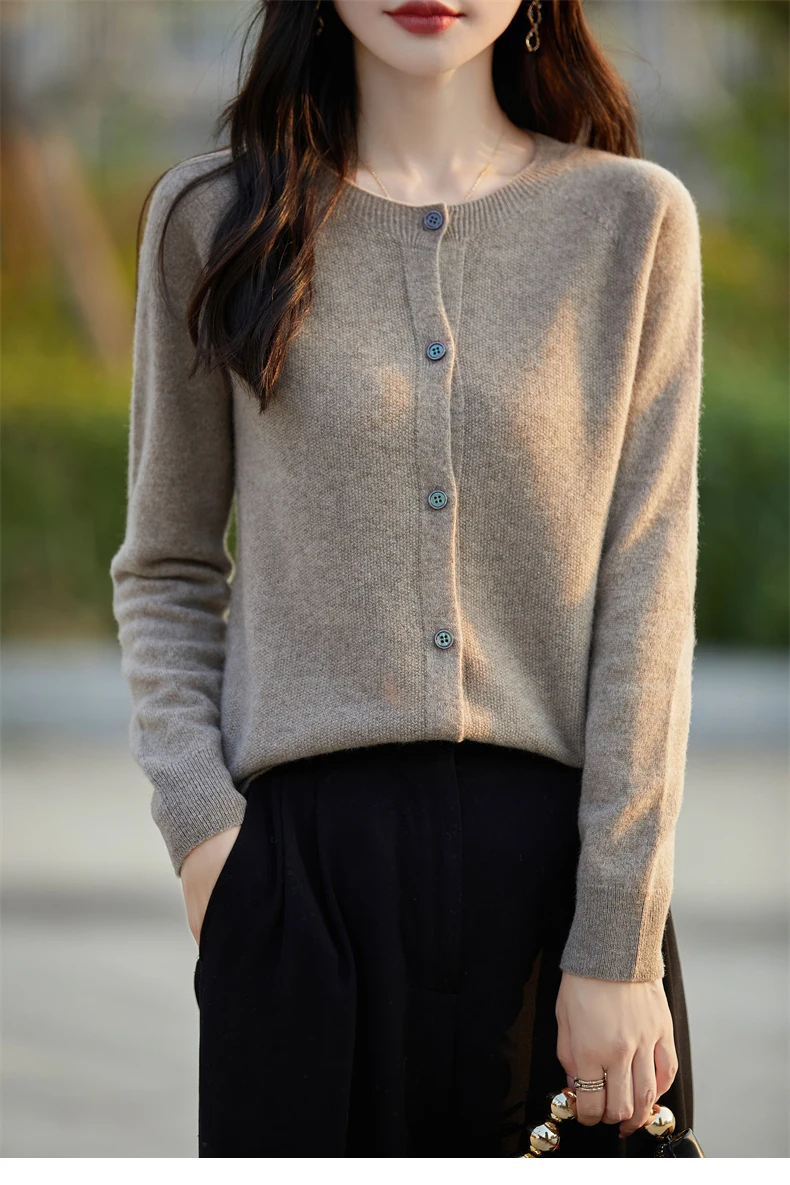 2024 Nozioni di base Autunno Inverno Donna Maglione Vendite Maglieria di lana merino New Fashion Solid Cardigan Classico Abbigliamento a maniche lunghe Top