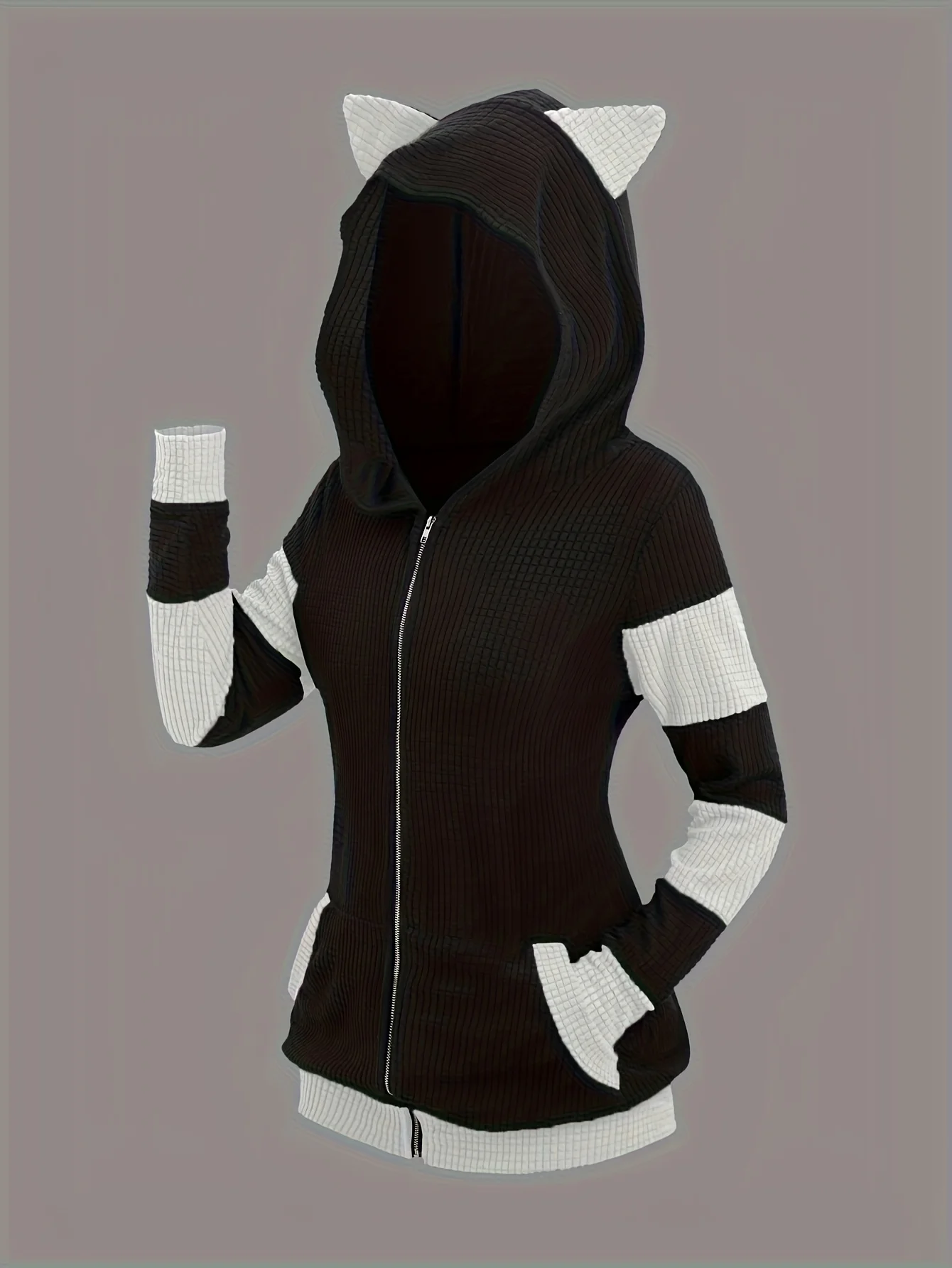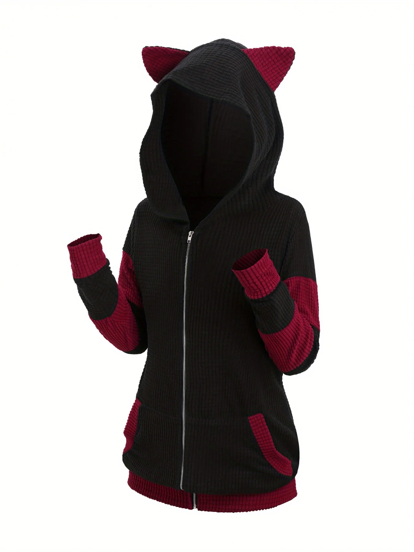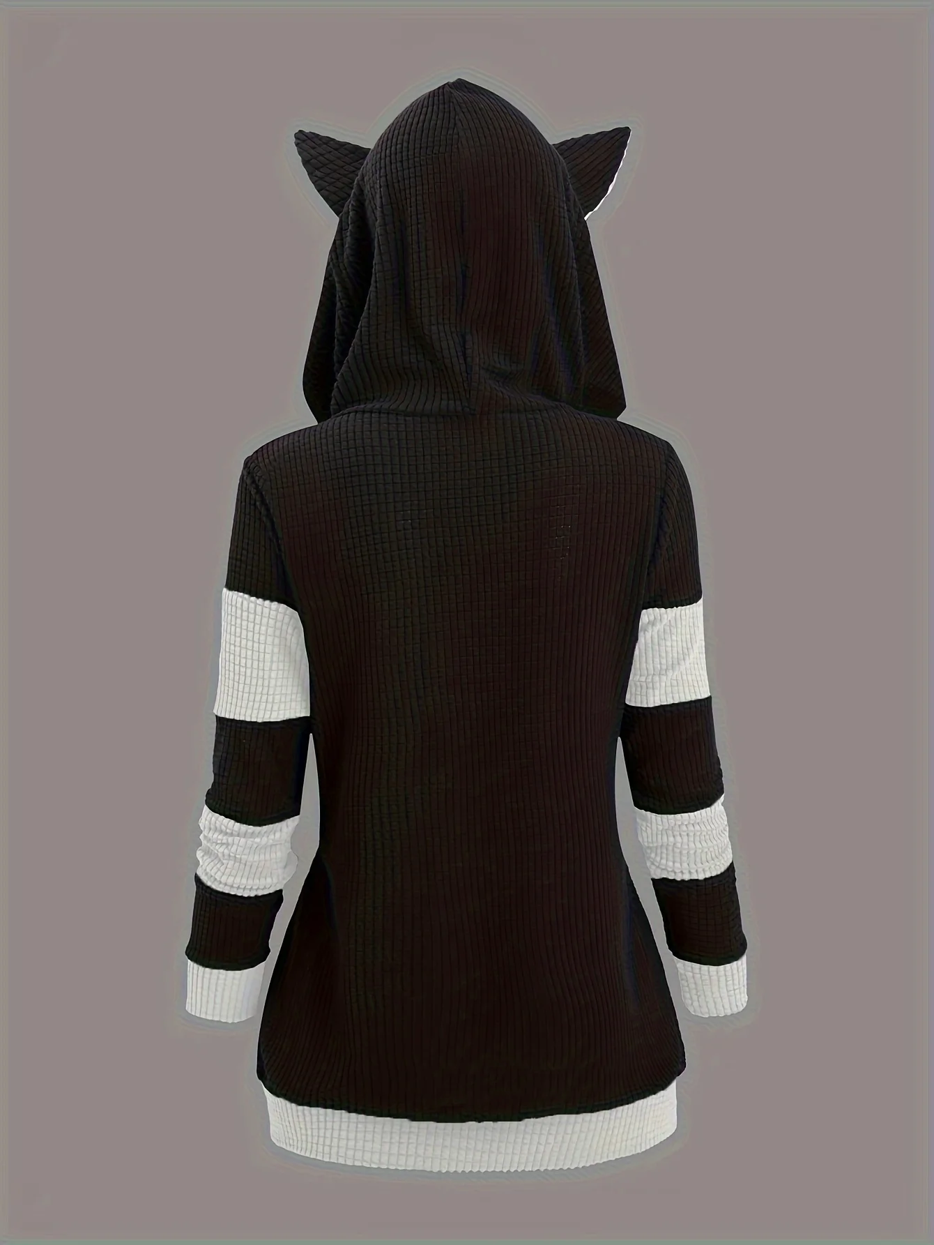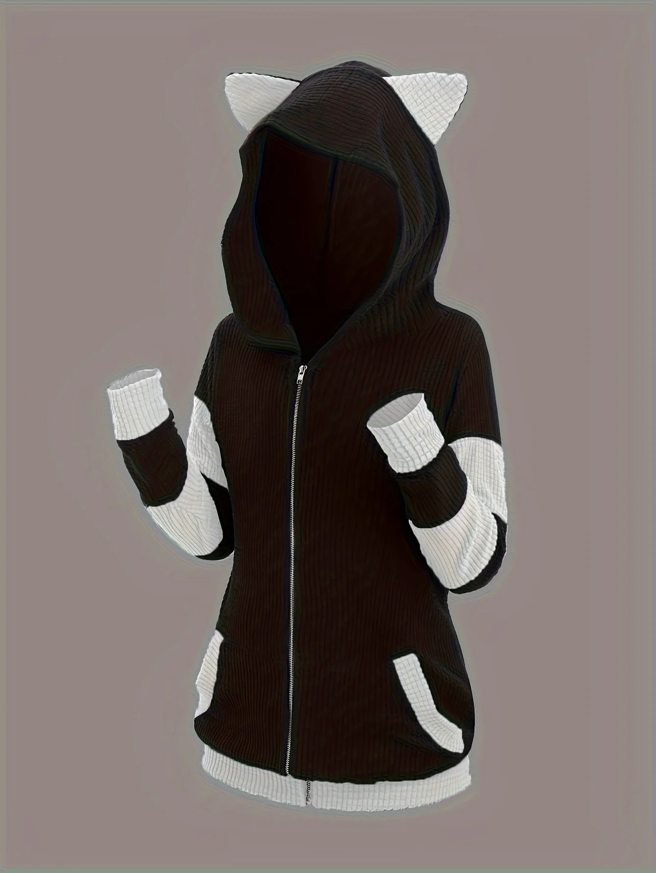 2024 nuove orecchie di gatto spesse delle donne europee e americane in autunno e inverno lungo cappotto maglione con cappuccio abbinato ai colori