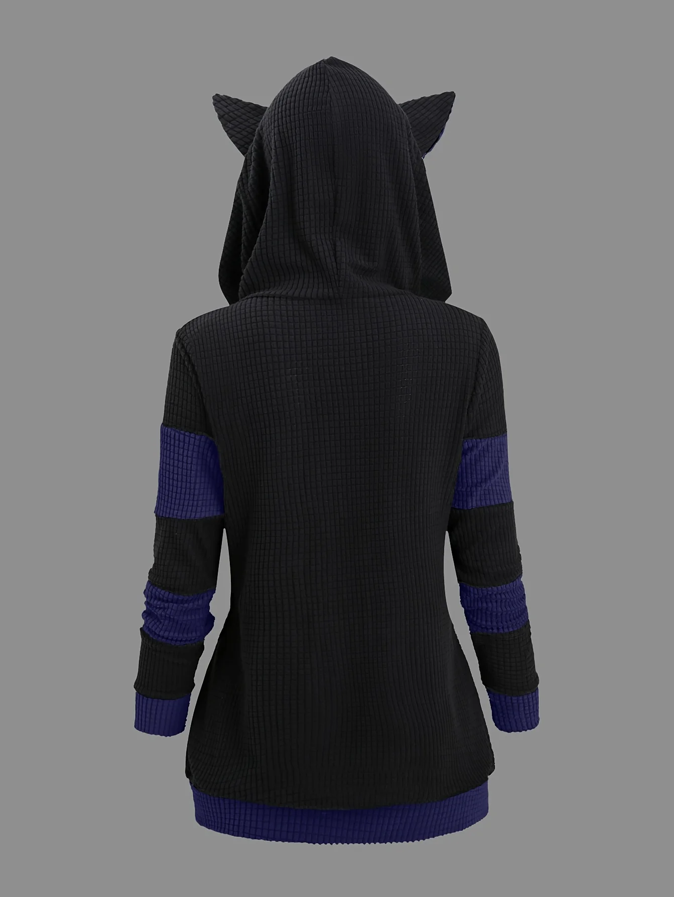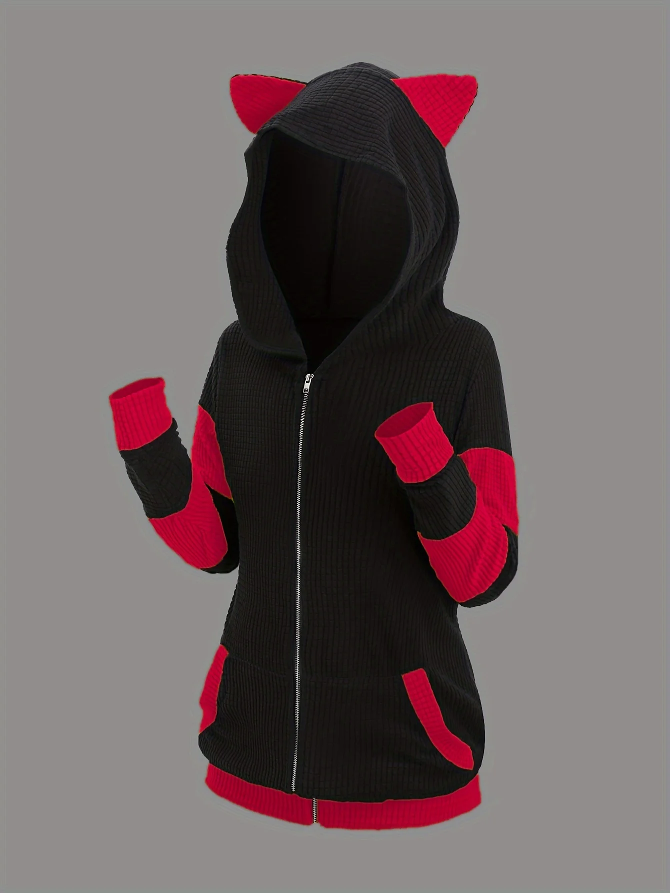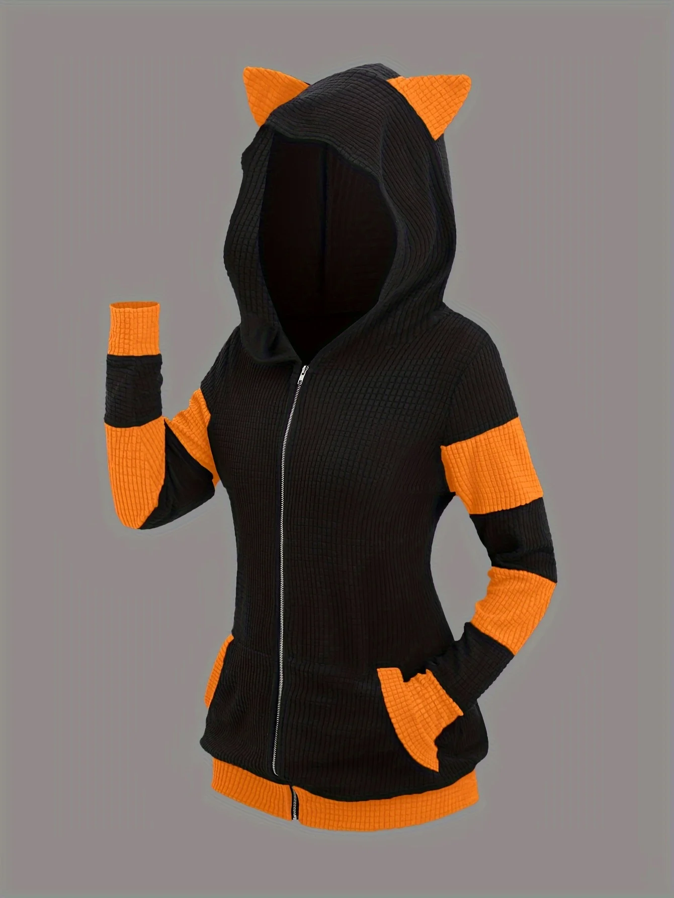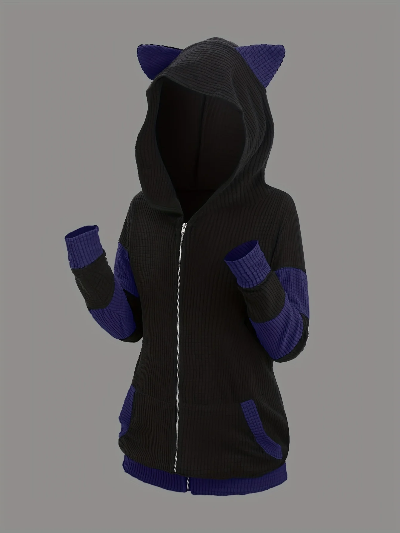 2024 nuove orecchie di gatto spesse delle donne europee e americane in autunno e inverno lungo cappotto maglione con cappuccio abbinato ai colori