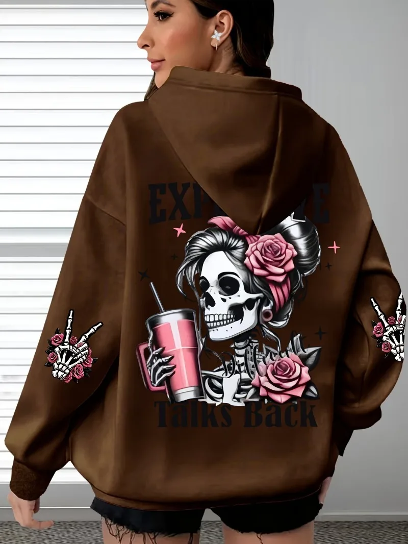 2025 Abbigliamento sportivo oversize popolare per l’autunno e l’inverno, felpa con cappuccio a maniche lunghe con stampa teschio