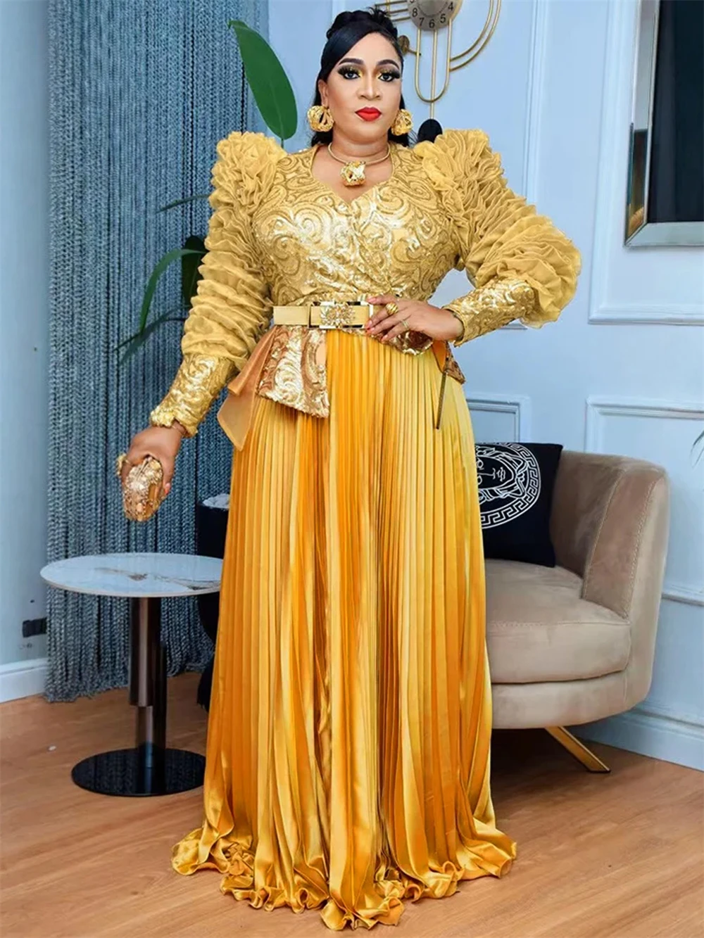 2 recensioni per 2025 Abiti da festa di lusso Eleganti abiti da sera con paillettes per le donne Africa Abbigliamento Matrimonio Prom Abito lungo aderente Abiti Dashiki