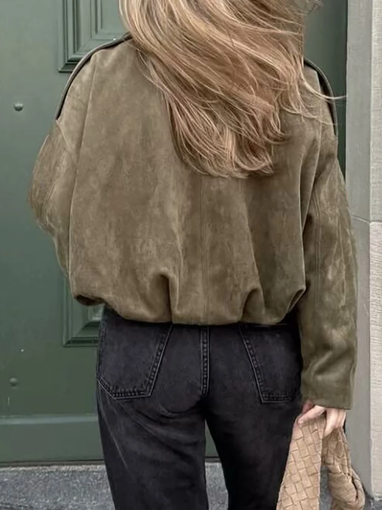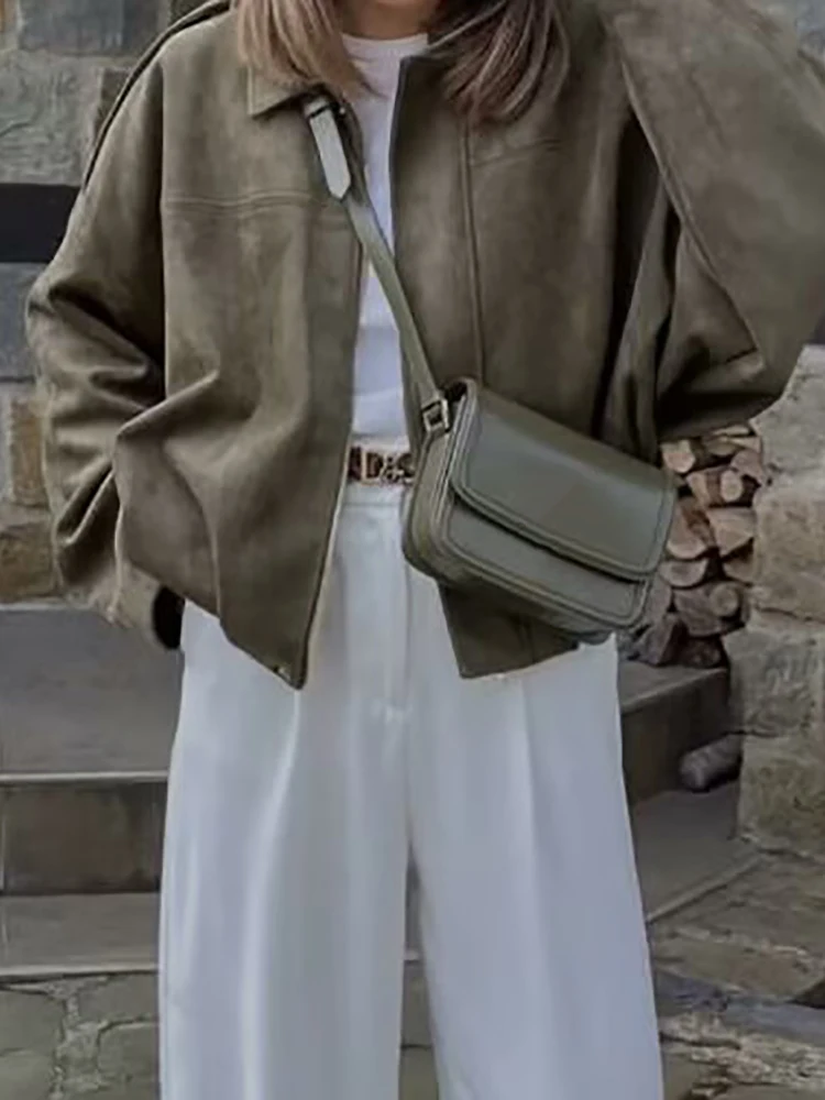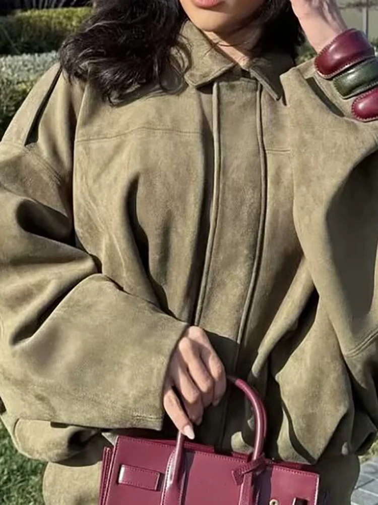 2025 Colletto rovesciato Cerniera Patchwork Manica lunga a pipistrello Cappotti Donna Autunno Inverno Moda Casual Capispalla Giacche Streetwear