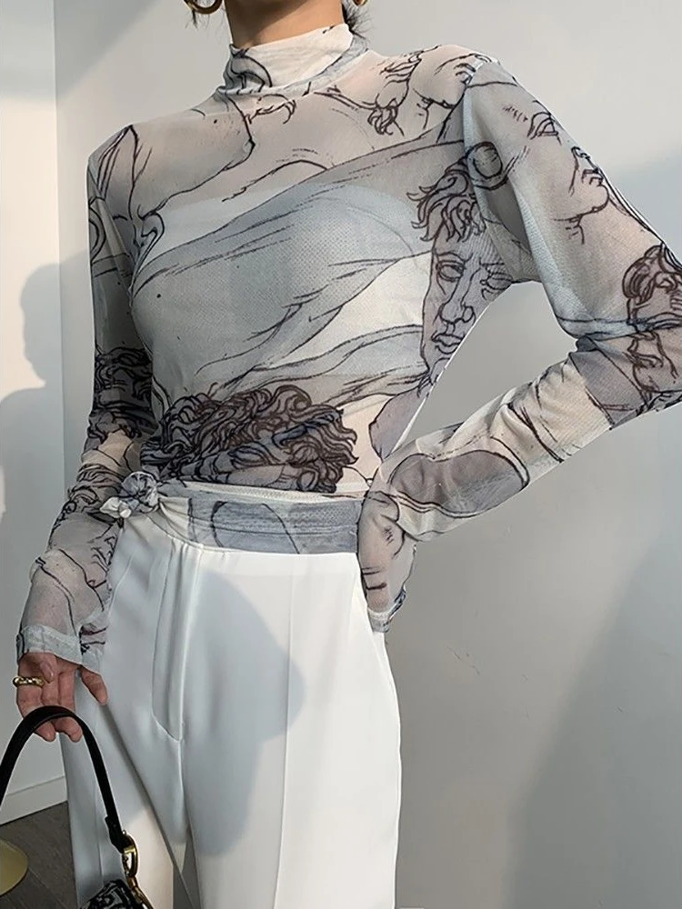2025 Dolcevita Abbigliamento T-shirt da donna sottile in pizzo Top grafico per donna T-shirt in rete Manica lunga T-shirt all’ingrosso di alta qualità di lusso