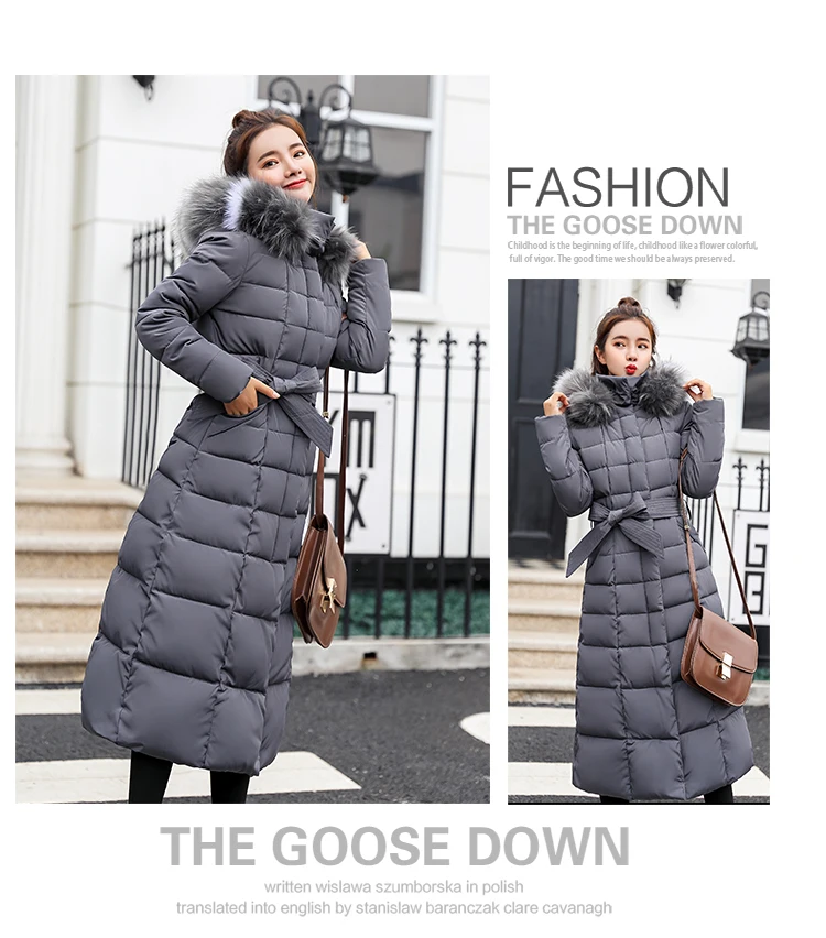 2025 Giacca da donna invernale Moda calda Comoda cintura con fiocco Collo in pelliccia di volpe Abiti Abito lungo Cappotto spesso da donna casual da ufficio
