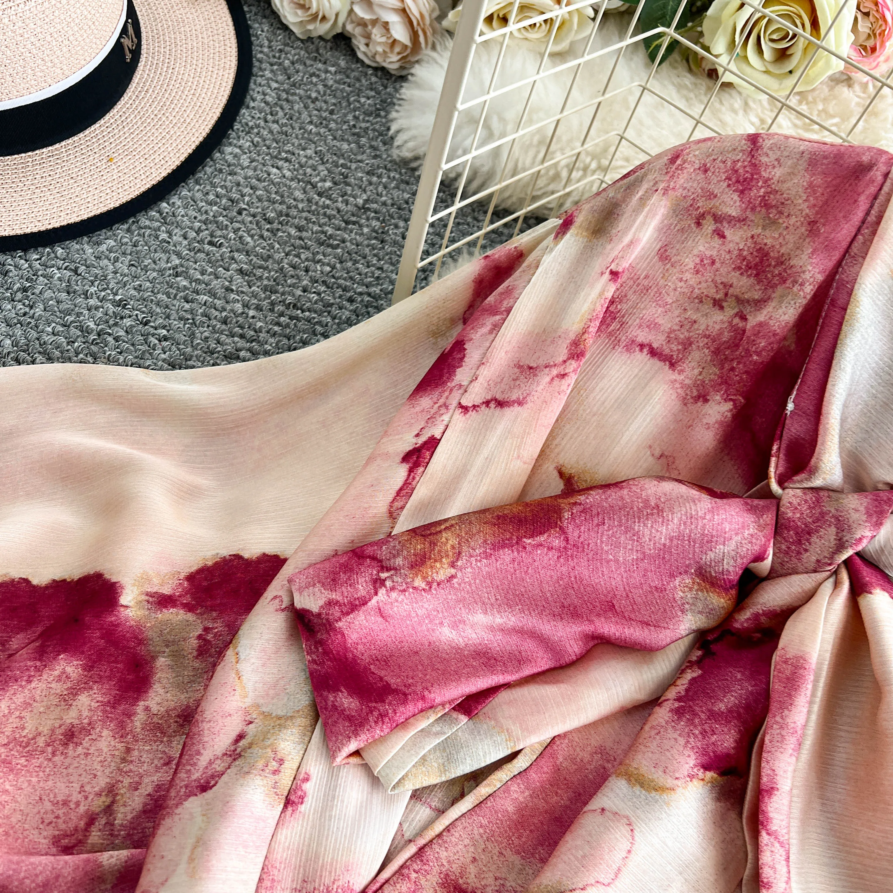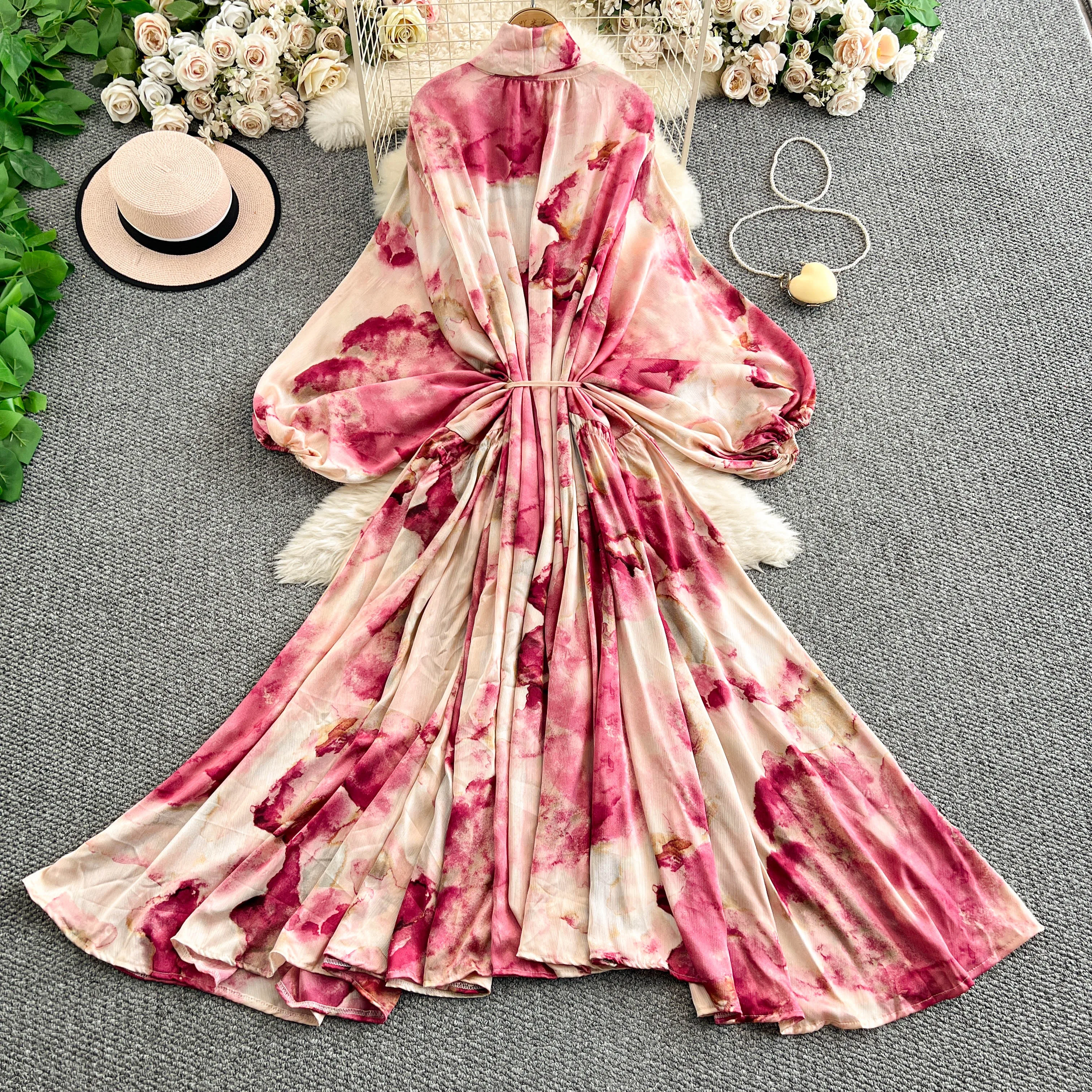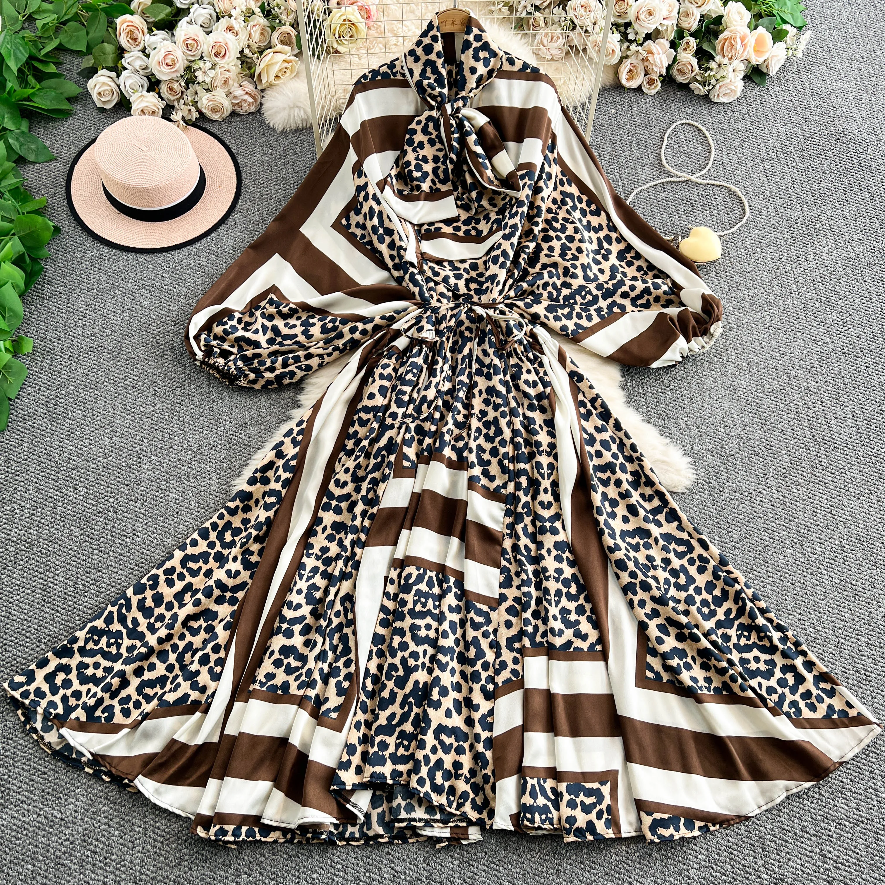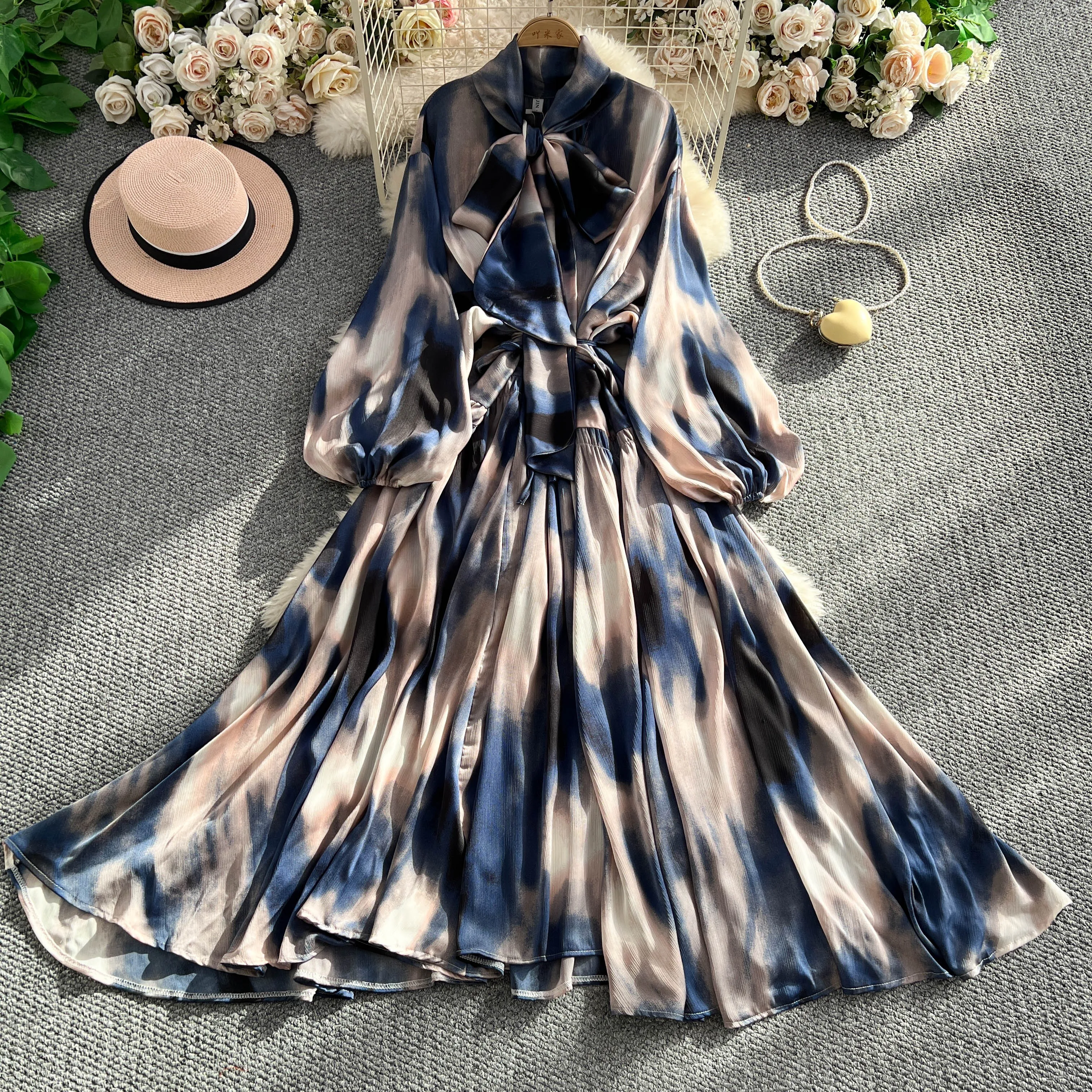 2025 Nuovo francese retrò pizzo con fiocco scollo a V manica lanterna Maxi abito da donna Casual Vintage Fashion Party grande gonna lunga altalena