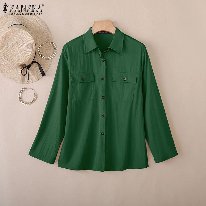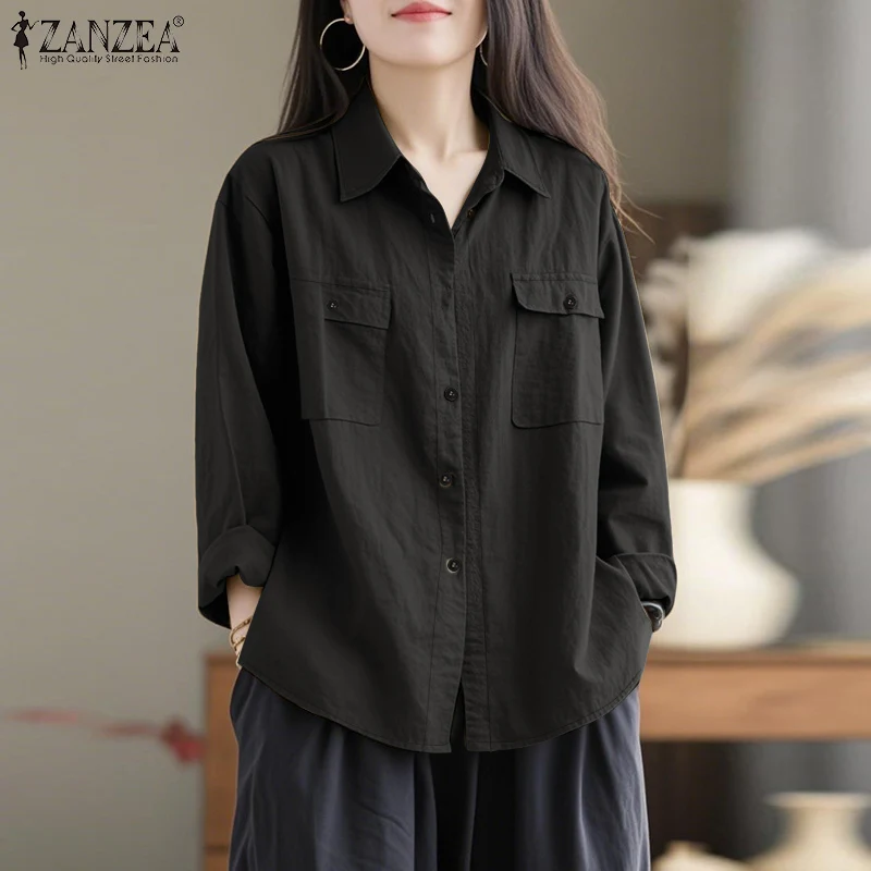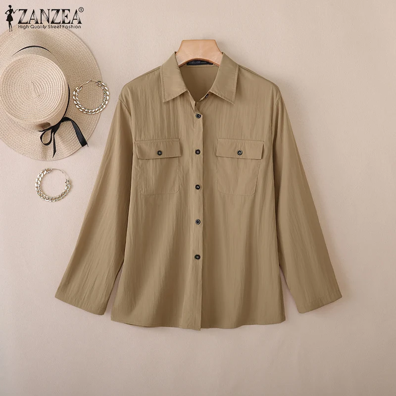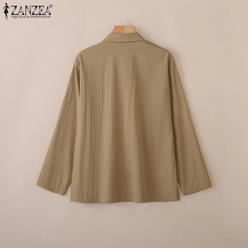 2 recensioni per 2025 ZANZEA Camicia moda autunno Camicetta da donna Collo con risvolto Top a maniche lunghe Elegante Solido Allentato OL Camicie da lavoro Tunica Blusas Femme