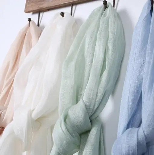 55*180 cm Moda Morbida Solida Donna 100% Lino Lino Nappa Sciarpa Viaggio Estivo Protezione Solare Scialle Lungo Elegante Hijab Donne Foulard