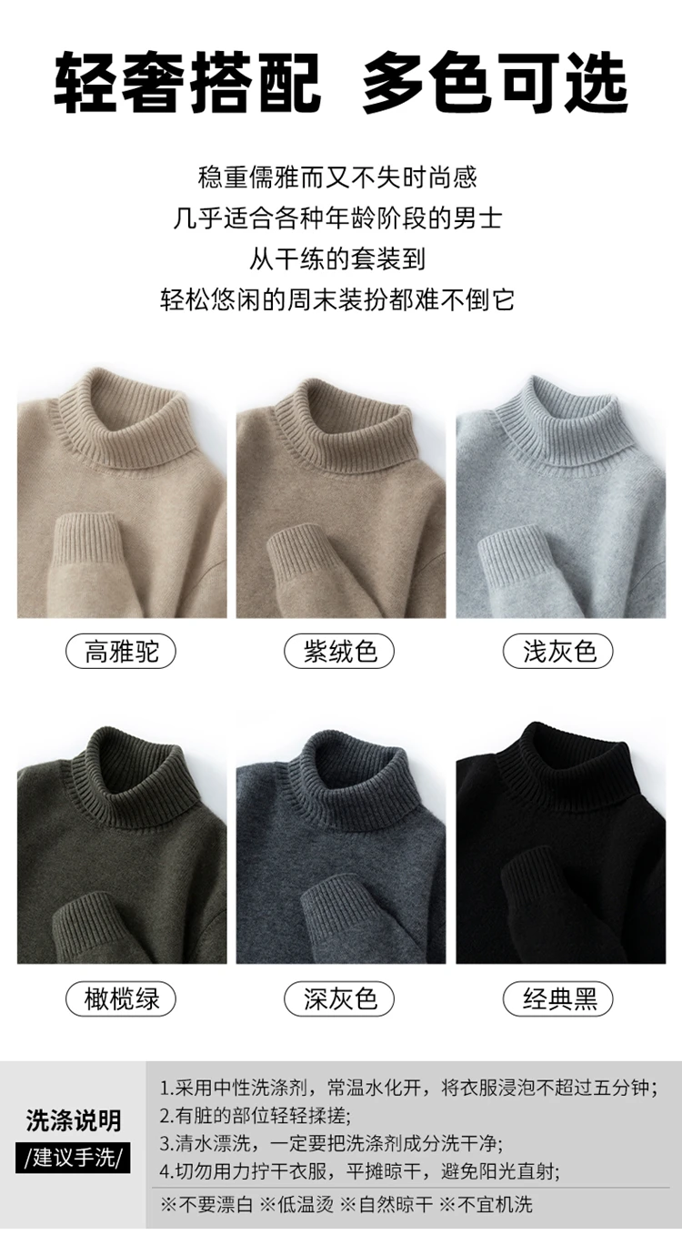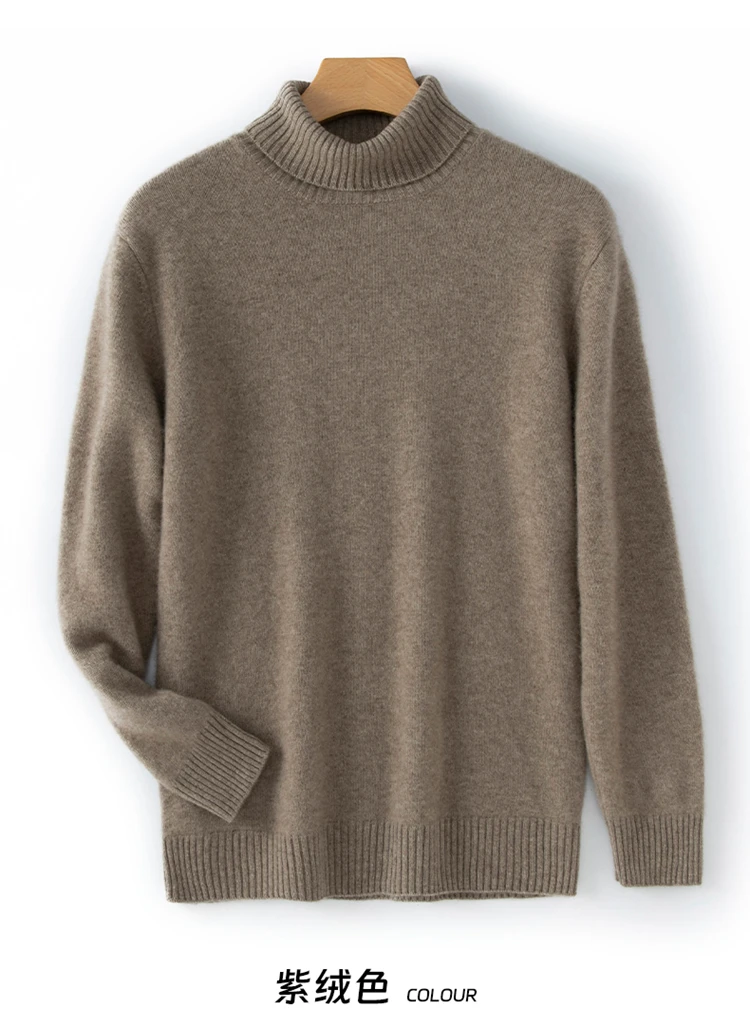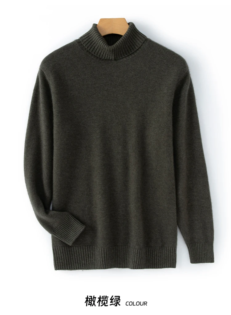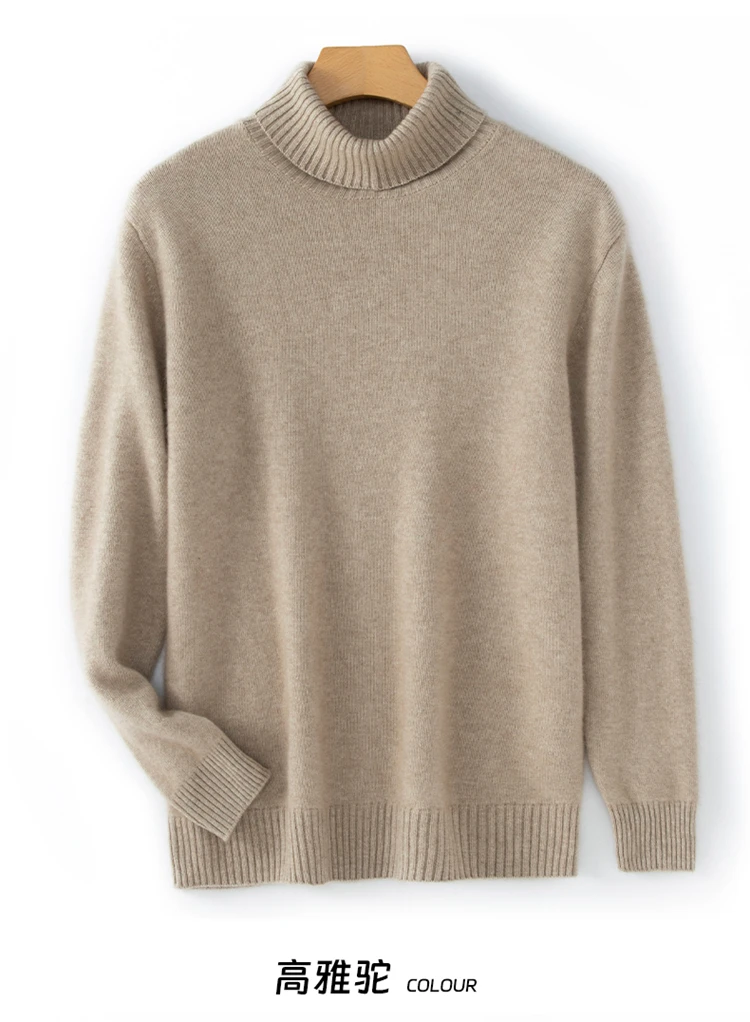 Abbigliamento da uomo spesso 100% maglione lavorato a maglia in cashmere dolcevita pullover autunno inverno tinta unita manica lunga casual top morbidi