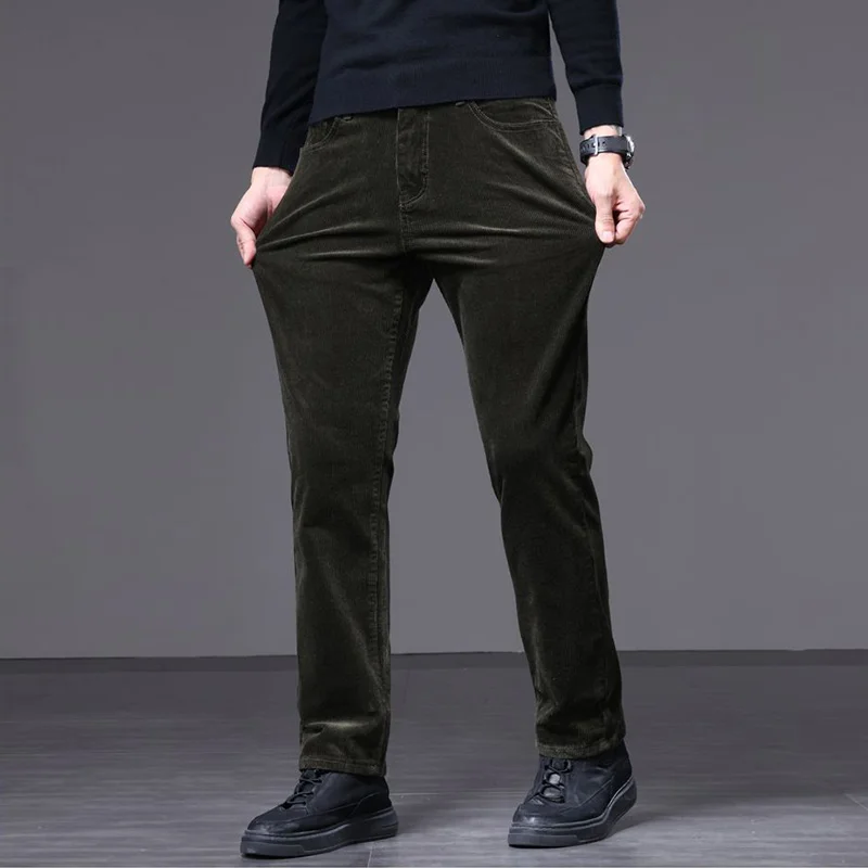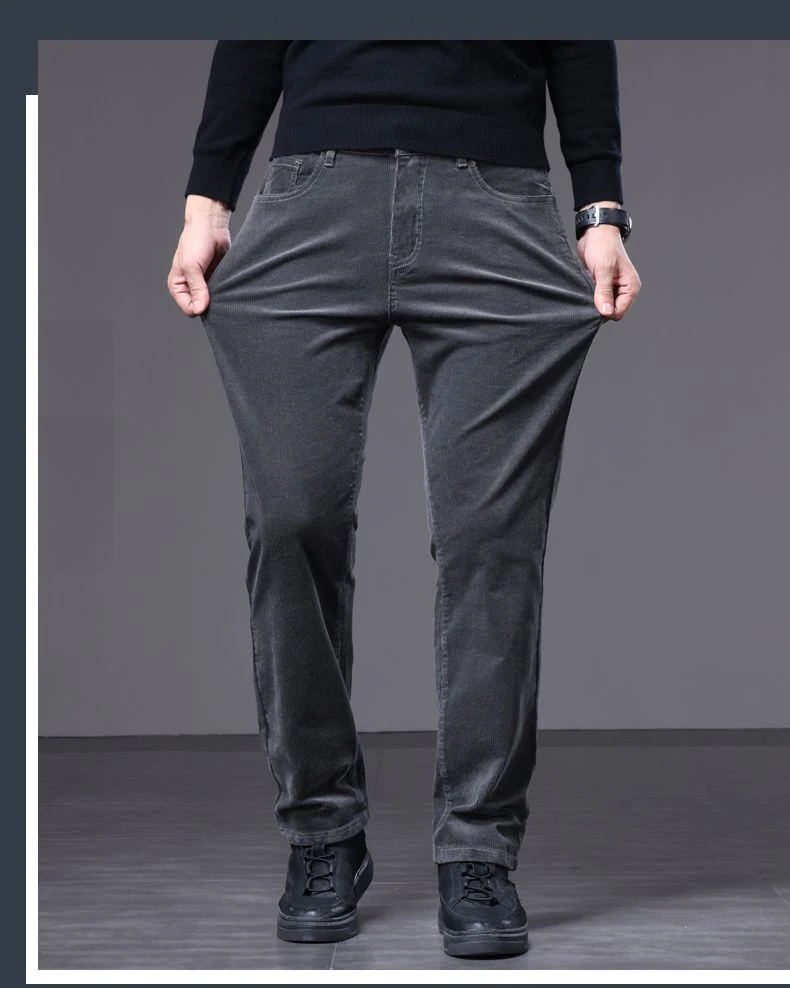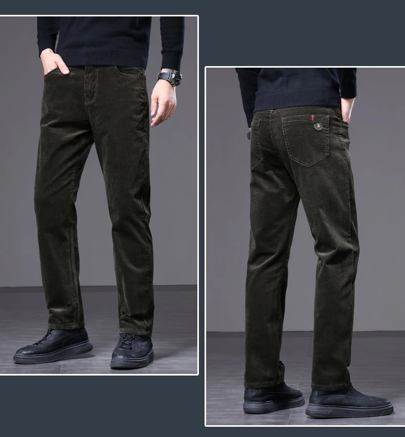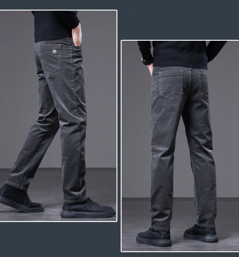 Abbigliamento di marca Autunno Inverno Tessuto di velluto a coste Pantaloni casual da uomo Spessi piccoli dritti Slim Cargo Work Pantaloni verdi grigi da uomo