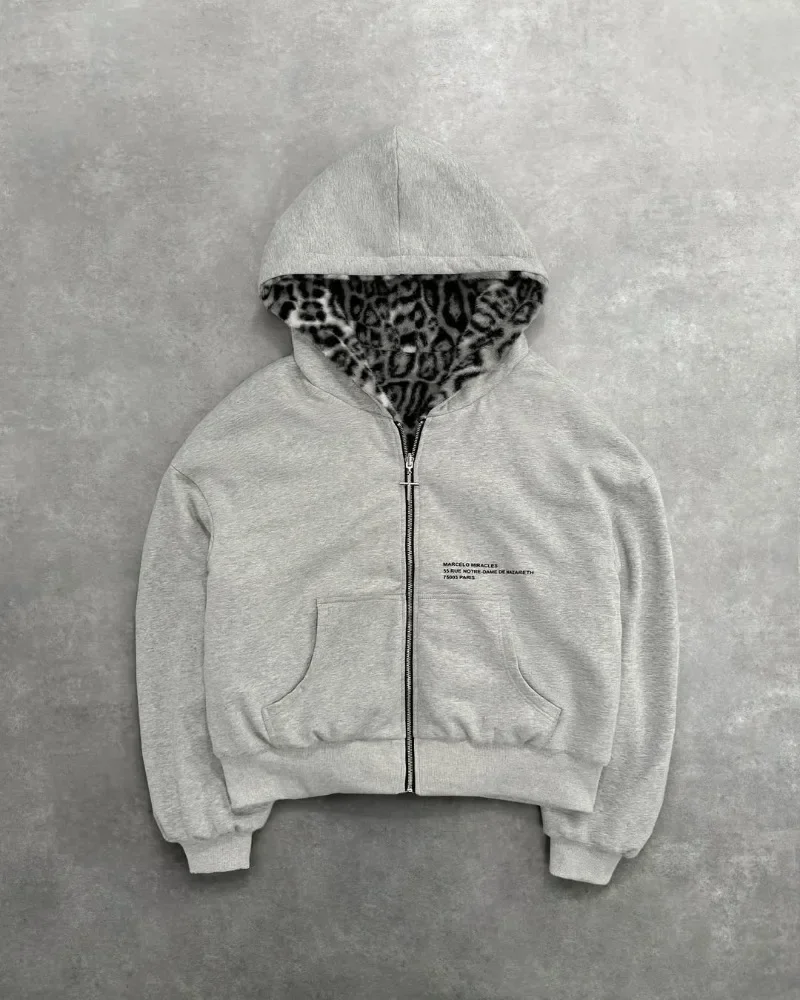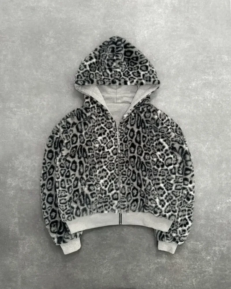 abbigliamento leopardato double face in autunno e inverno felpa casual da strada con cappuccio originale Kuaku retrò elegante con cerniera allentata