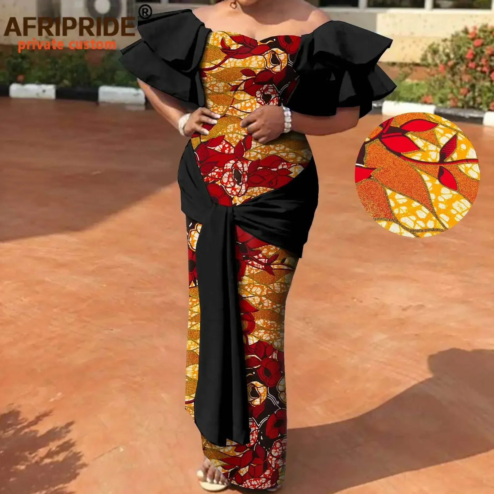 1 recensione per Abiti africani per le donne senza spalline con spalle scoperte a vita alta Maxi abito con stampa abbigliamento abiti Dashiki moda elegante A2225003