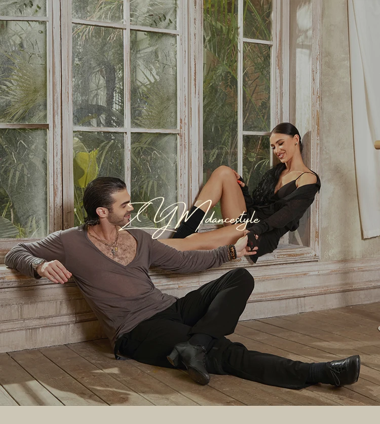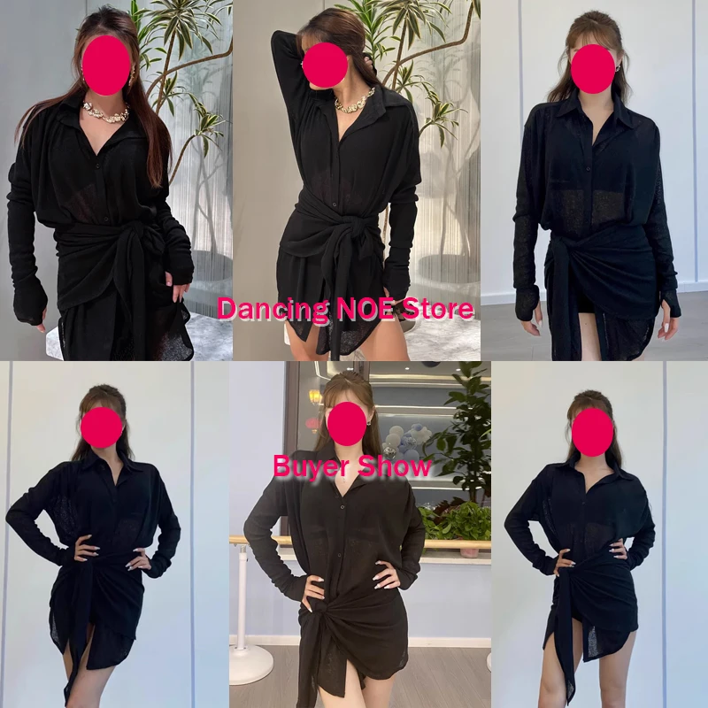3 recensioni per Abiti da ballo latino sexy per le donne Bianco Nero Manica lunga Camicia ampia Gonna Abiti da allenamento Samba Rumba Salsa Wear DNV21093