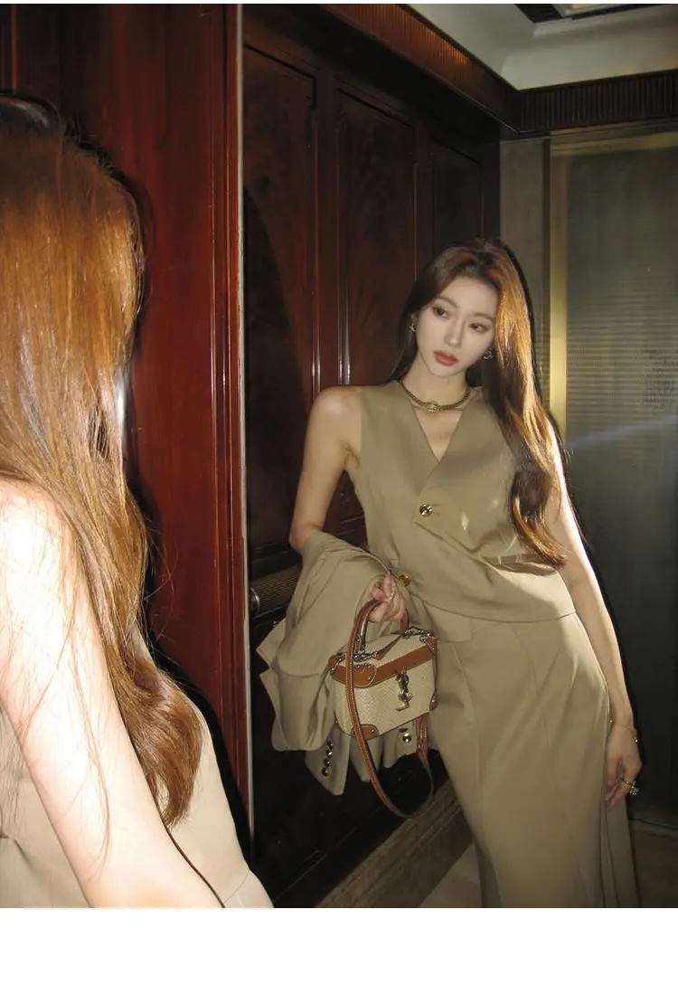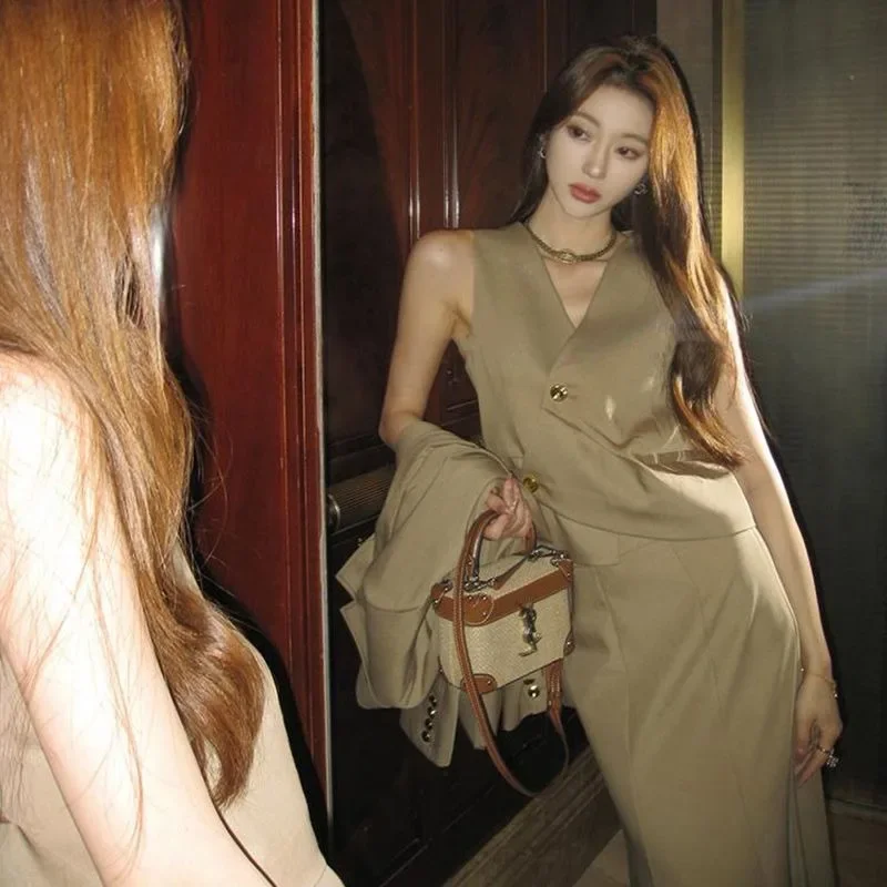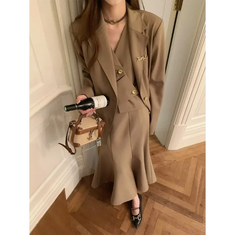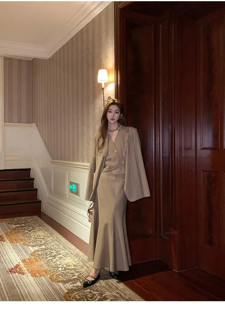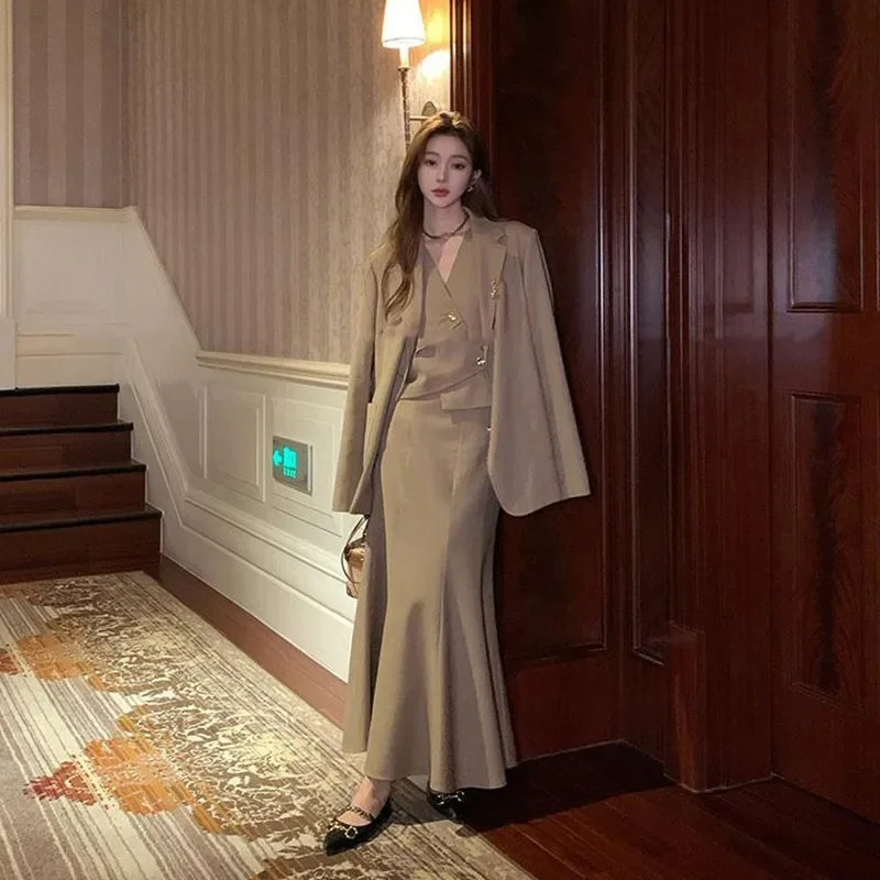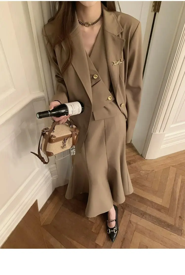Abiti da donna Blazer tinta unita Design Sense gilet irregolare gonne a coda di pesce a metà corpo temperamento coreano di alta qualità tre pezzi