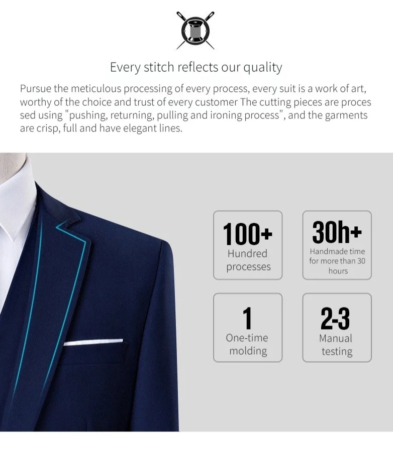 Questo abito è un design classico per i designer.È un abito da uomo molto elegante.Creo che ti adorerà questo abito da sposa.
