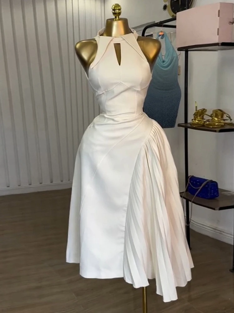 Abiti midi alla moda senza maniche da donna con pieghe asimmetriche e scavate, perfetti per cocktail party o invitati al matrimonio