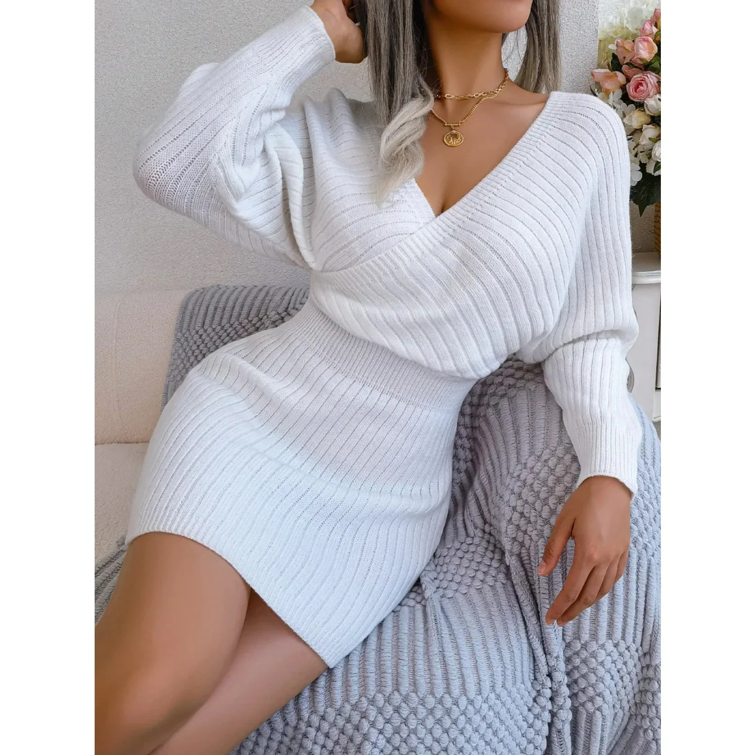 Recensisci per primo “Abito autunno inverno casual sexy con scollo a V incrociato e maniche a pipistrello per donna Abito avvolgente in lana tinta unita” Annulla risposta