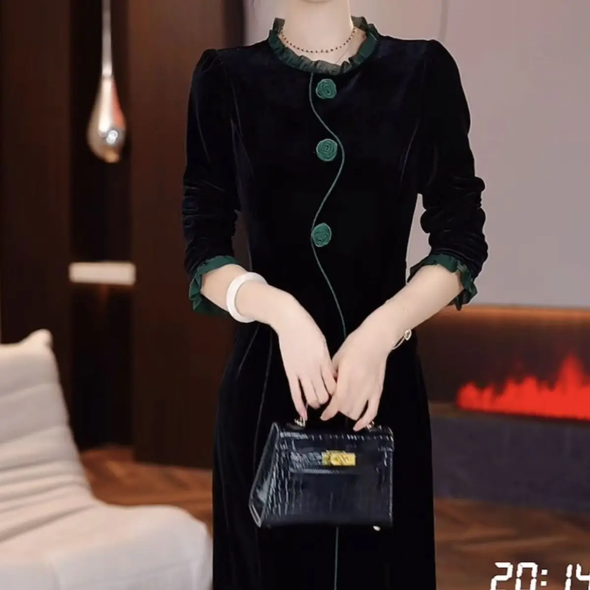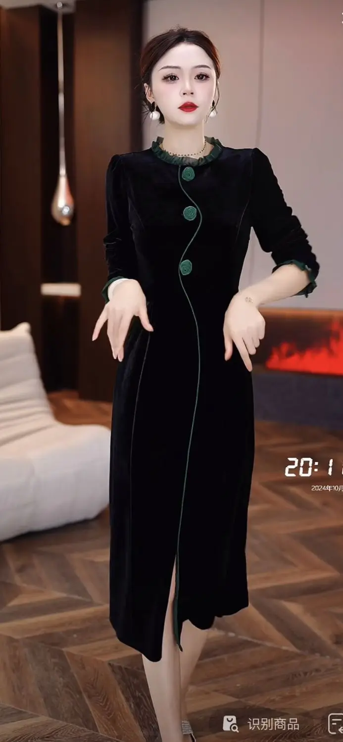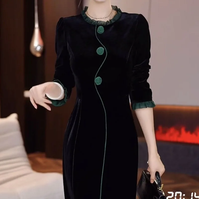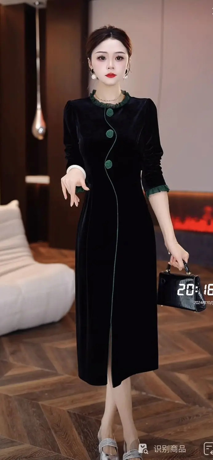 Abito cheongsam madre in stile cinese di fascia alta per l’autunno autunno e inverno Nuovo temperamento Abito slim fit e slim migliorato