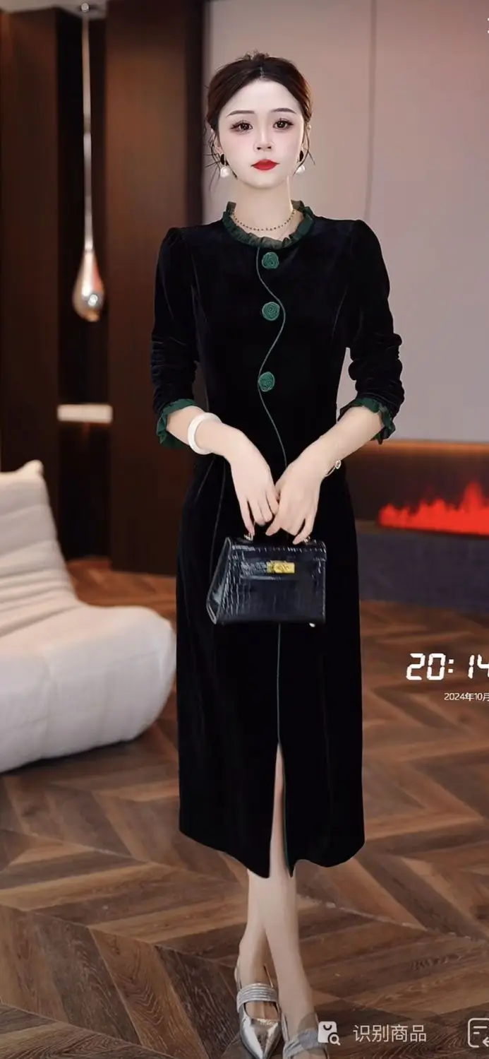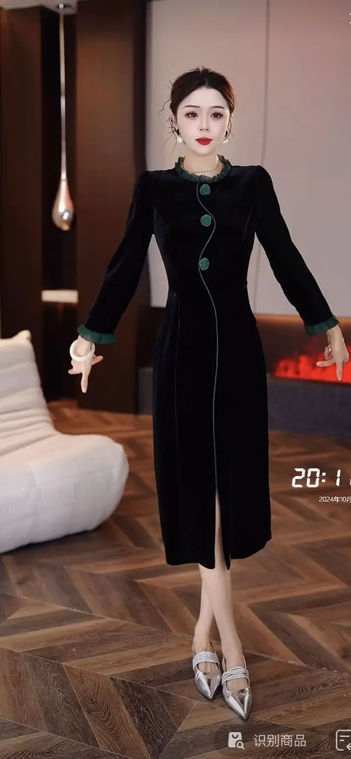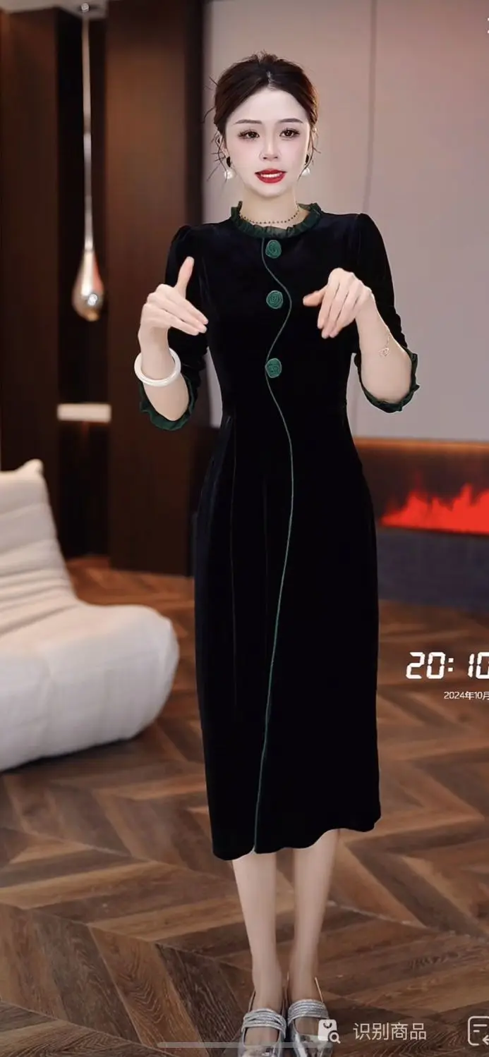 Abito cheongsam madre in stile cinese di fascia alta per l’autunno autunno e inverno Nuovo temperamento Abito slim fit e slim migliorato
