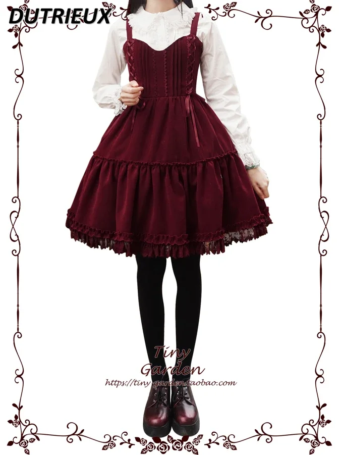 Recensisci per primo “Abito con bretelle in pizzo con fiocco per ragazze dolci autunno e inverno bordeaux JSK Abiti eleganti con canotta dimagrante a vita alta stile Lolita” Annulla risposta