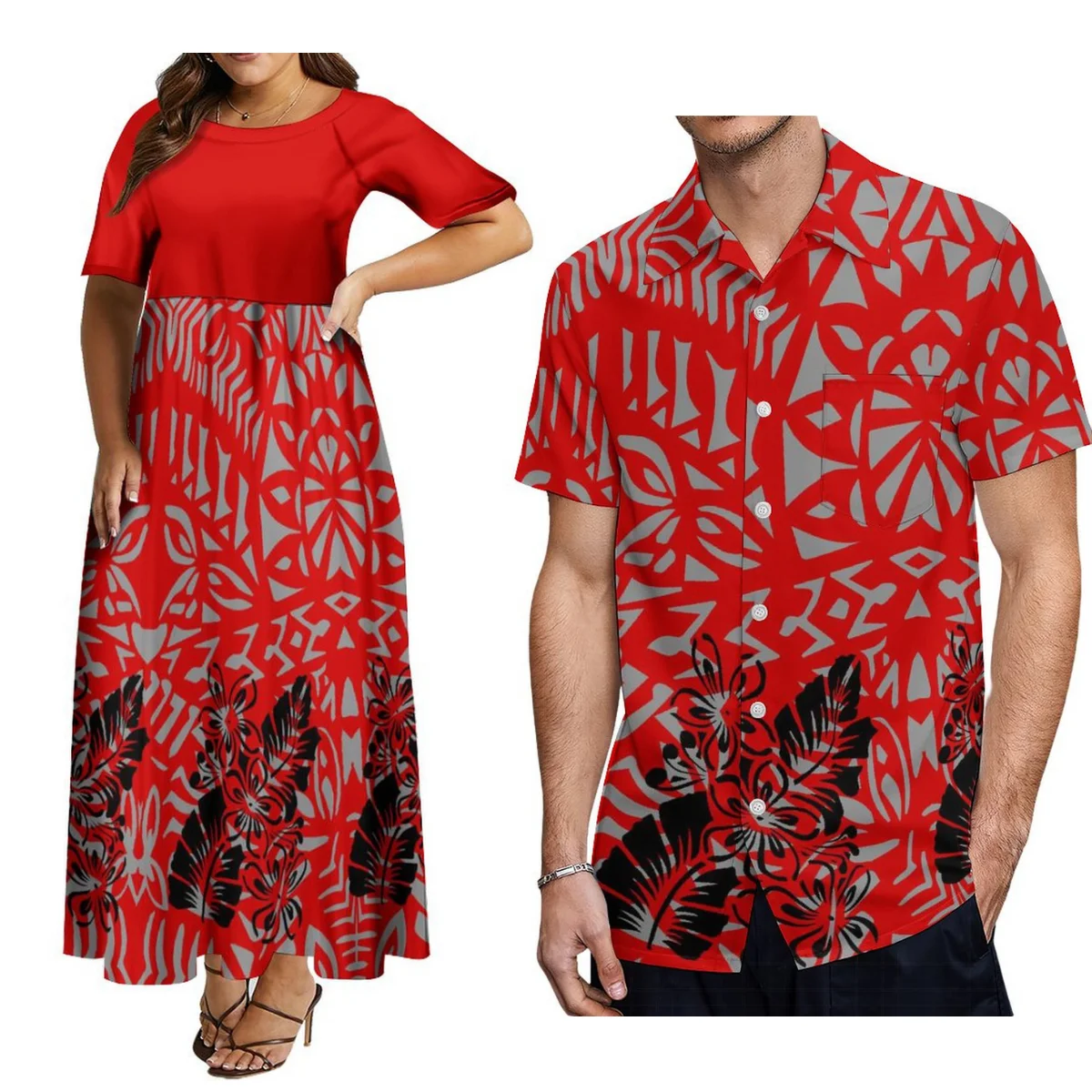Abito da coppia polinesiano abbinato abito girocollo da donna Plus Size 8xl abito elegante e camicia abbottonata da uomo spedizione gratuita