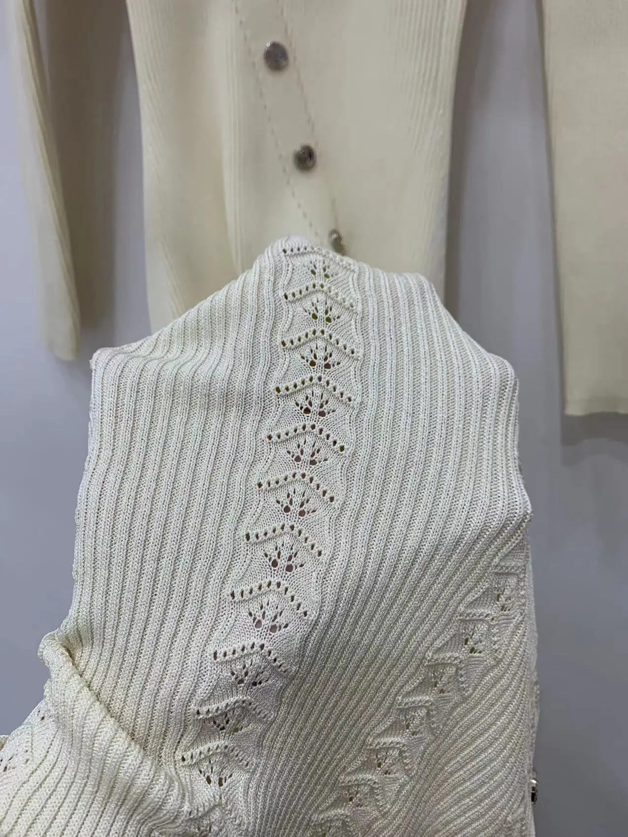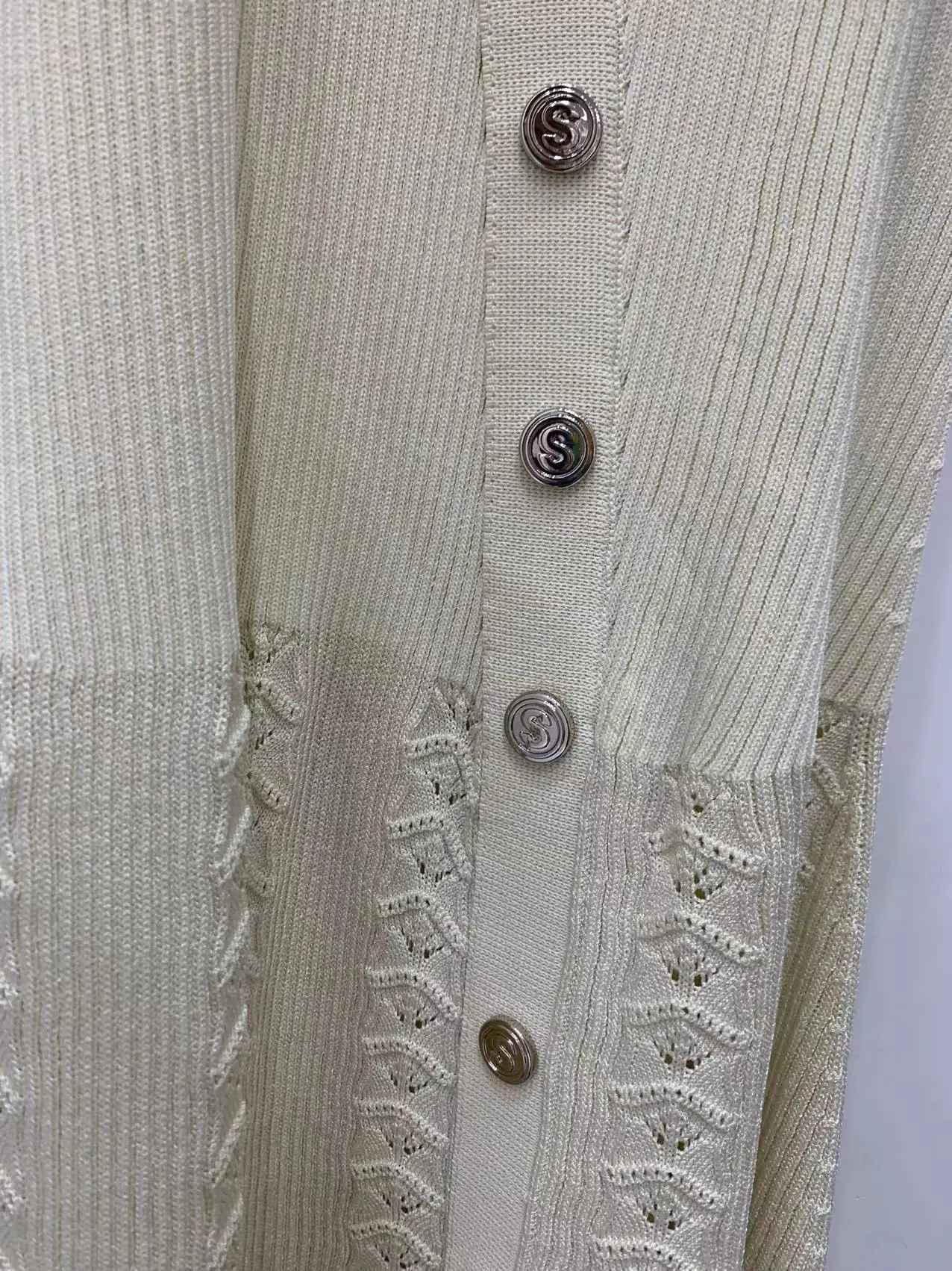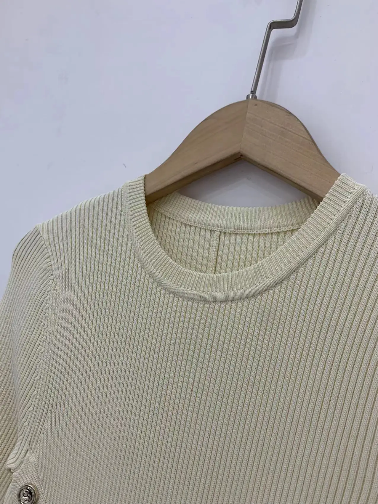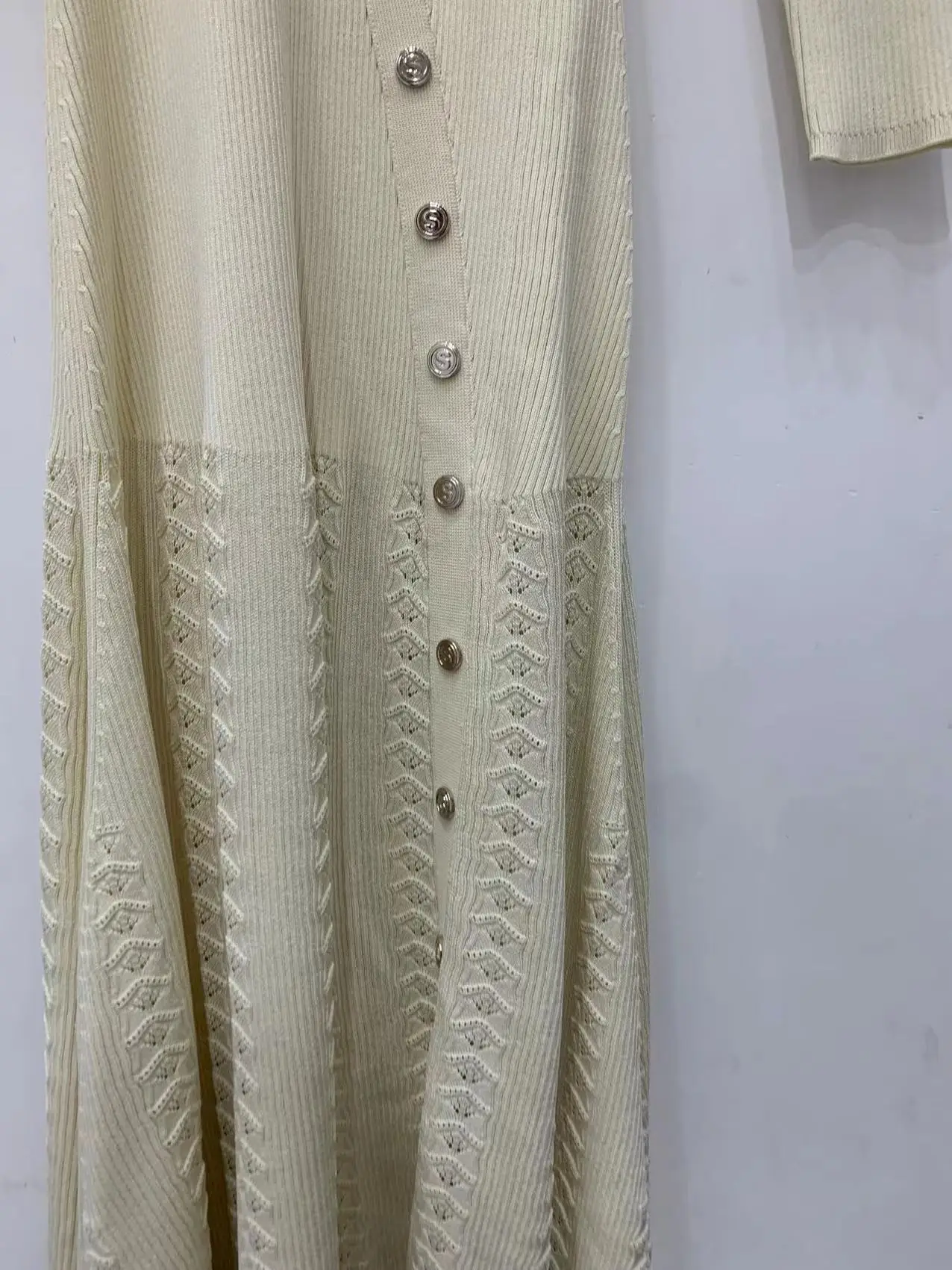 Abito da donna in maglia sottile con fibbia diagonale in metallo a maniche lunghe con spacco elegante