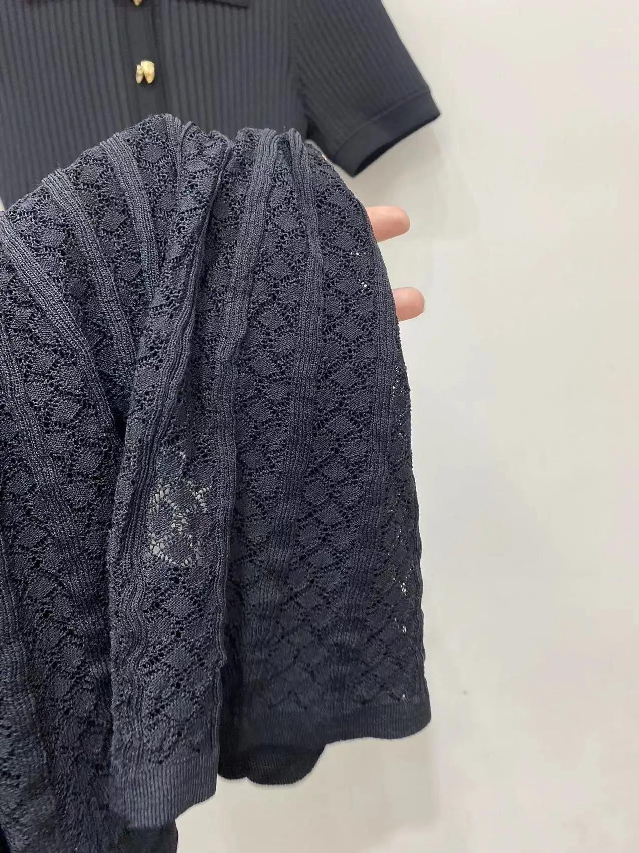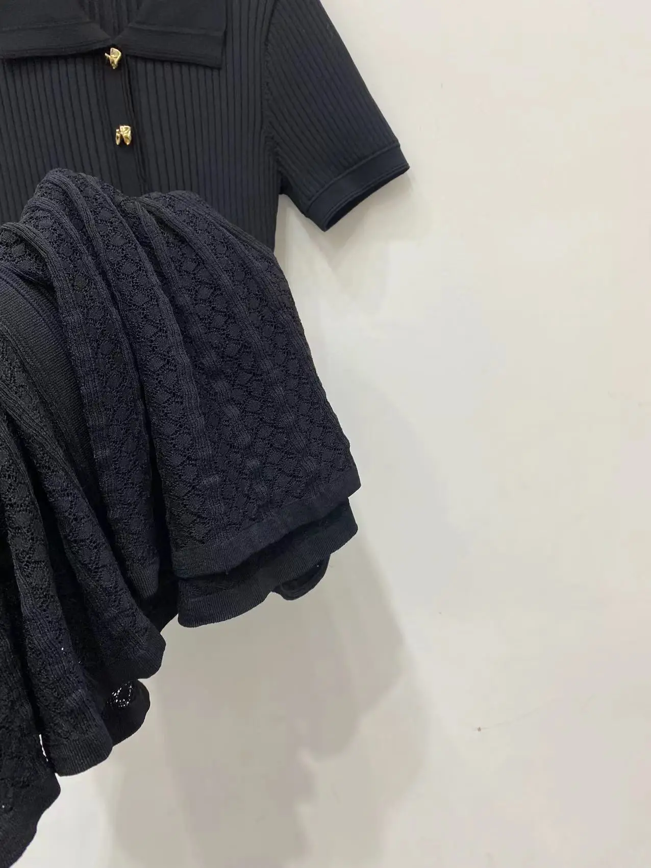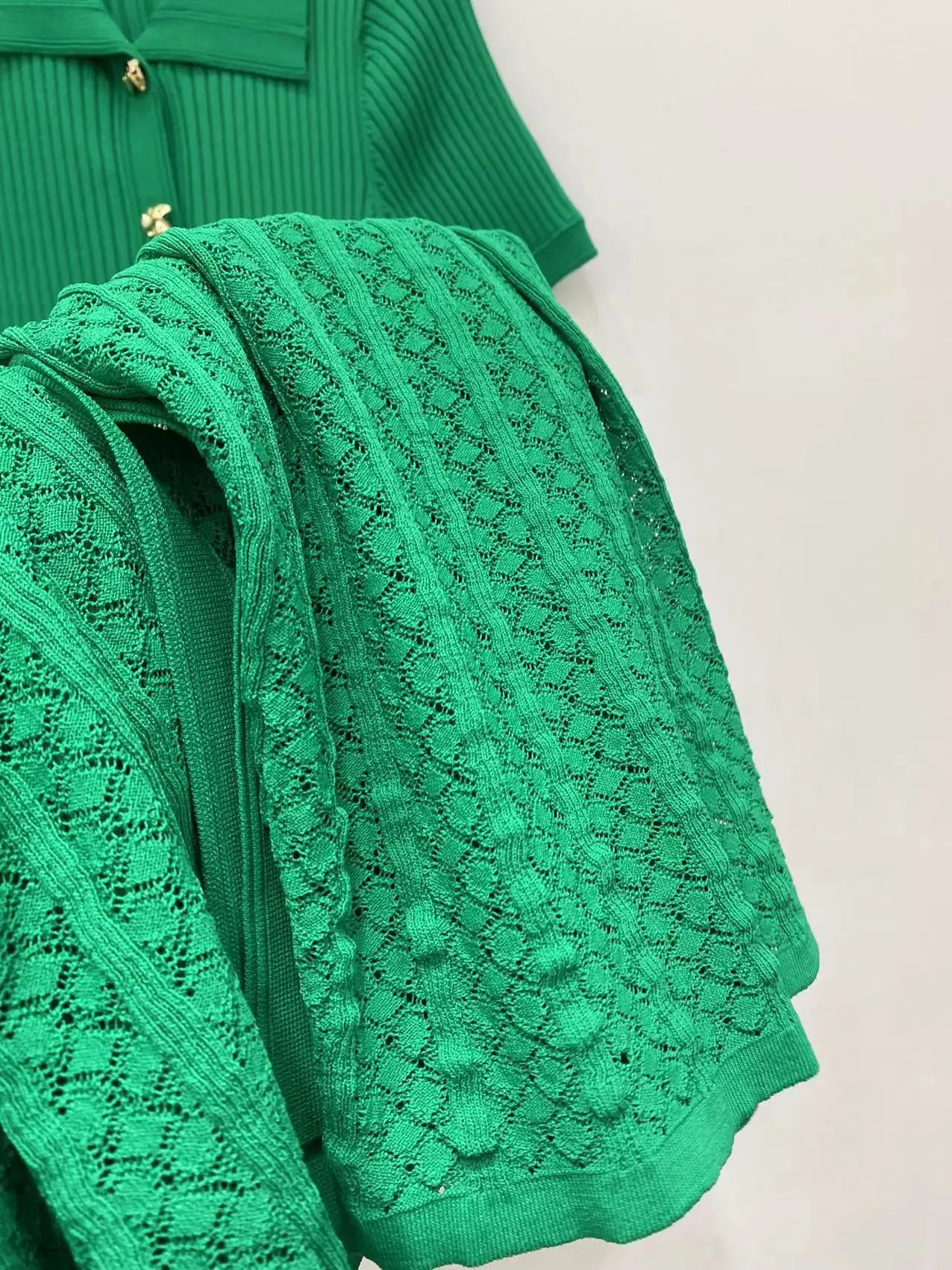 Recensisci per primo “Abito da donna in maglia verde o nero Colletto rovesciato Elegante abito longuette monopetto a maniche corte”