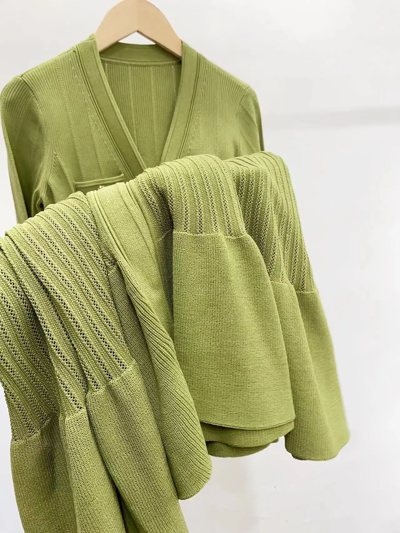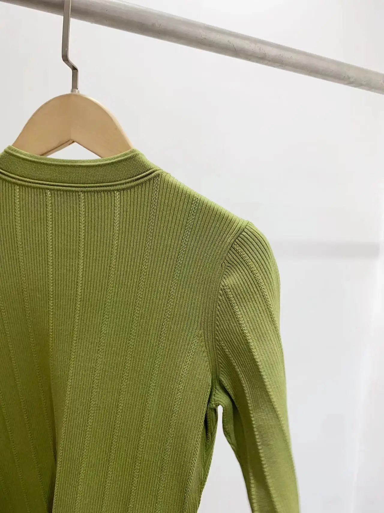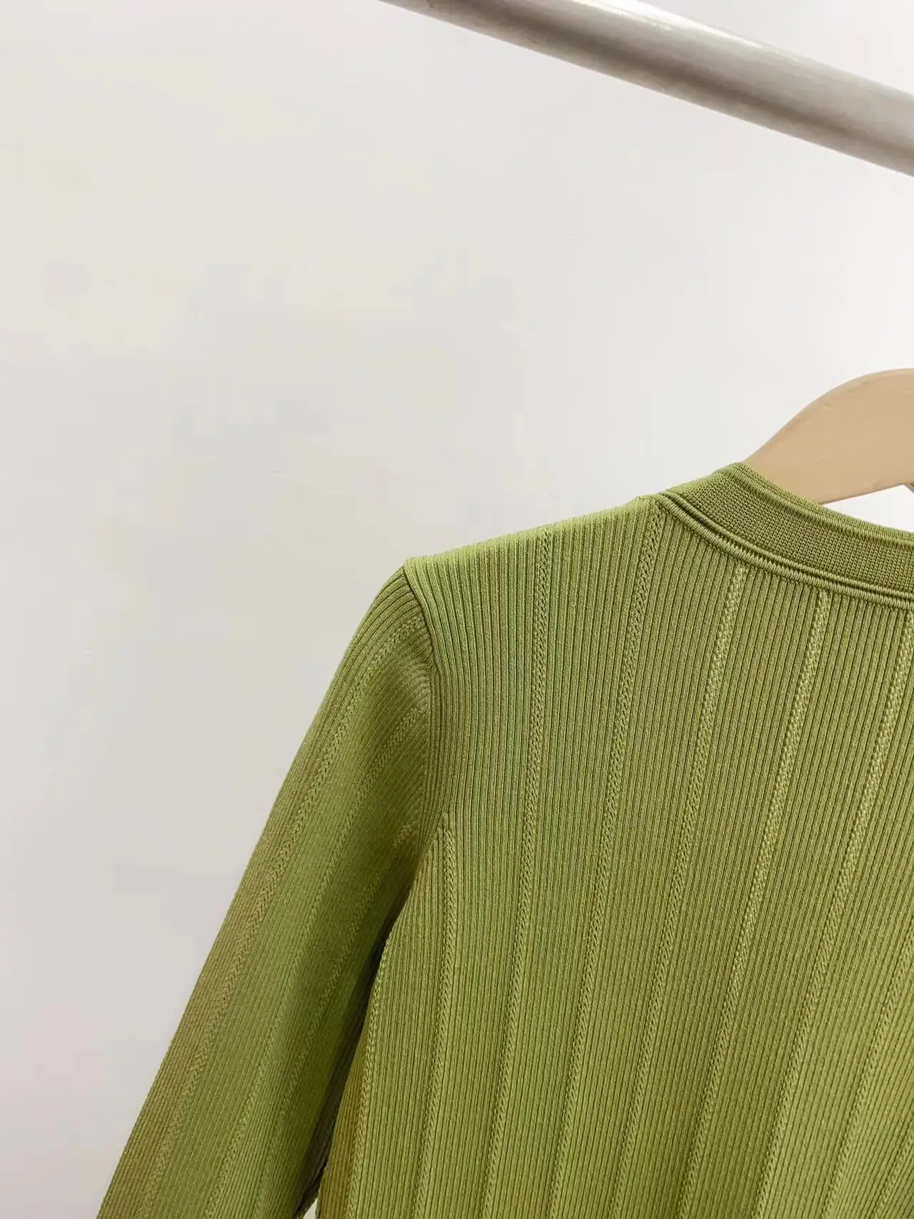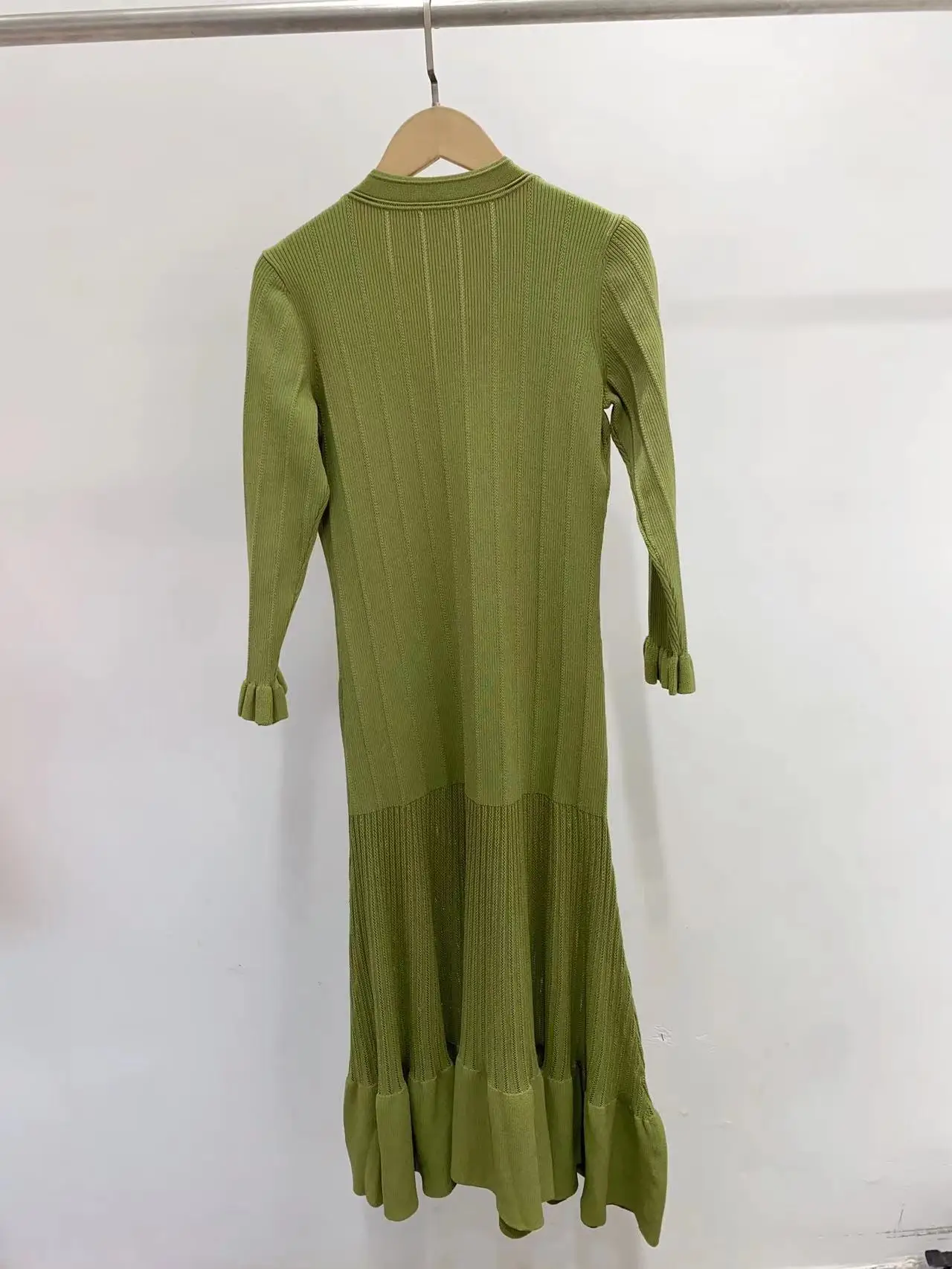 Recensisci per primo “Abito da donna monopetto con volant in maglia con scollo a V manica lunga femminile elegante abito longuette all’inizio della primavera”