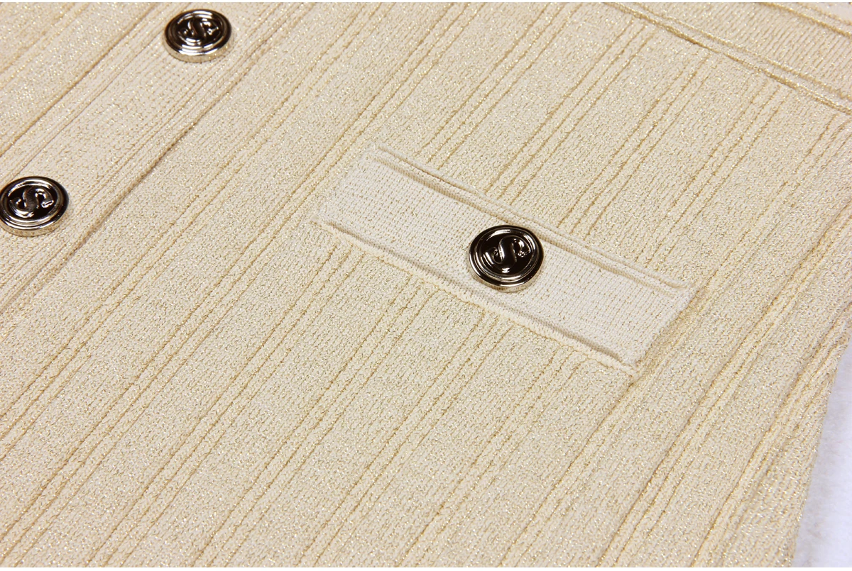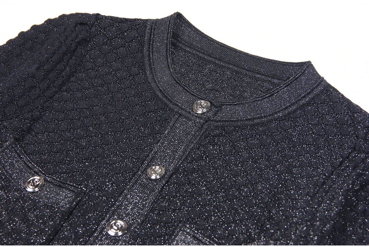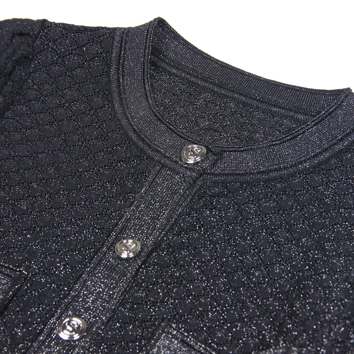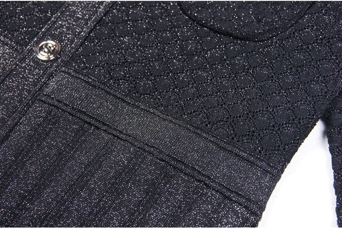 Abito da donna slim fit in pizzo con bottoni a fila singola, collo rotondo lavorato a maglia in seta brillante elastica alla moda di alta qualità