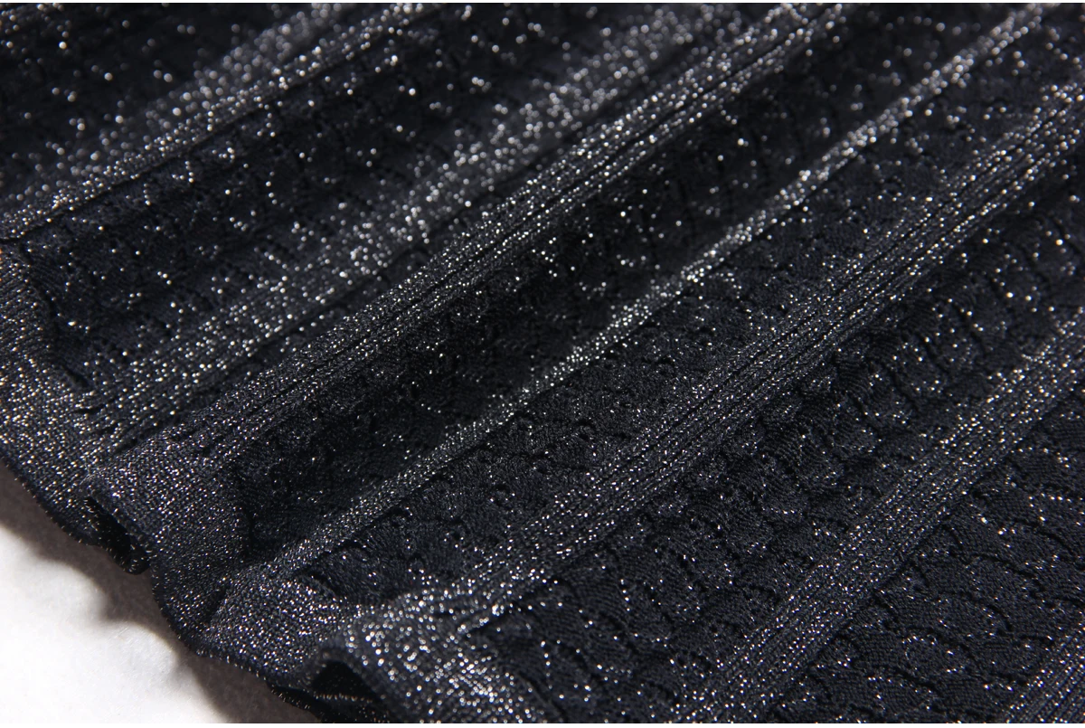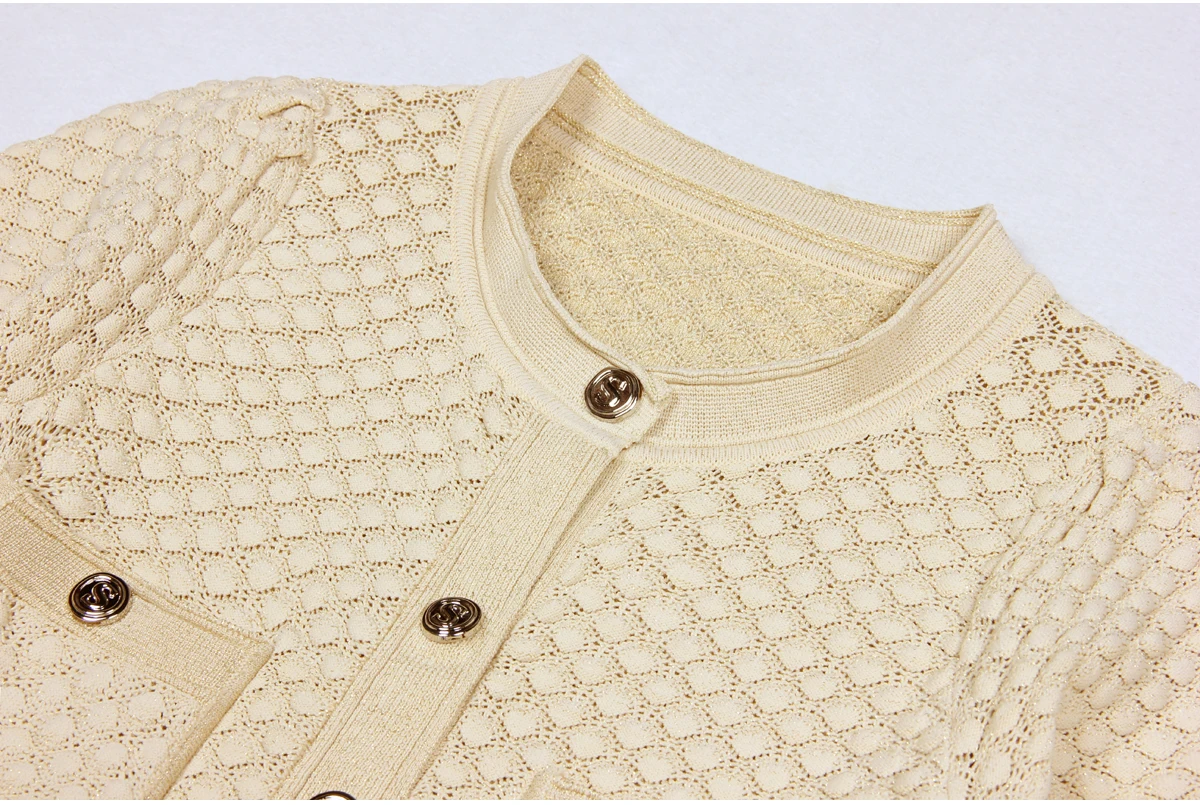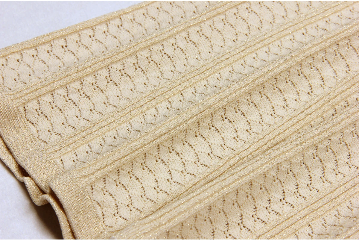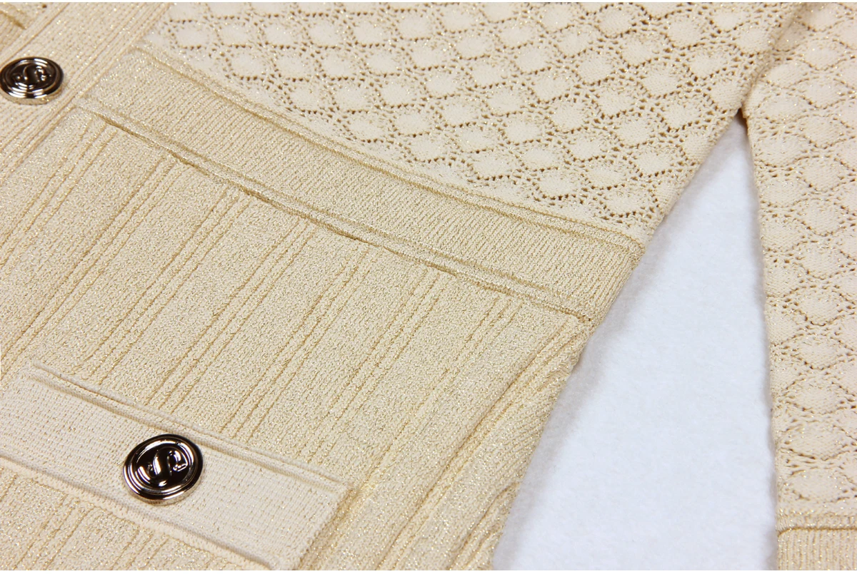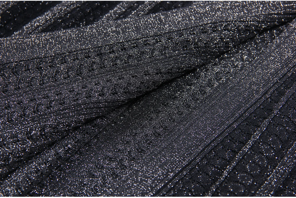 Abito da donna slim fit in pizzo con bottoni a fila singola, collo rotondo lavorato a maglia in seta brillante elastica alla moda di alta qualità