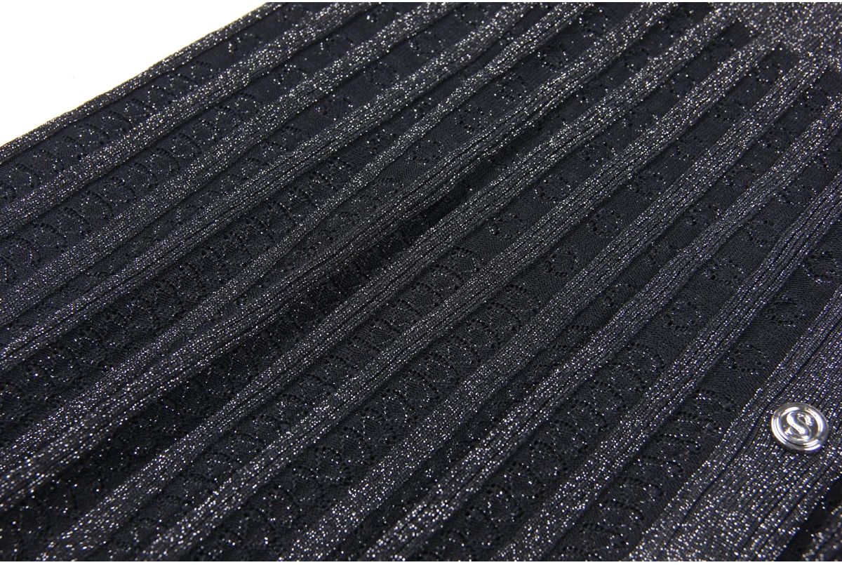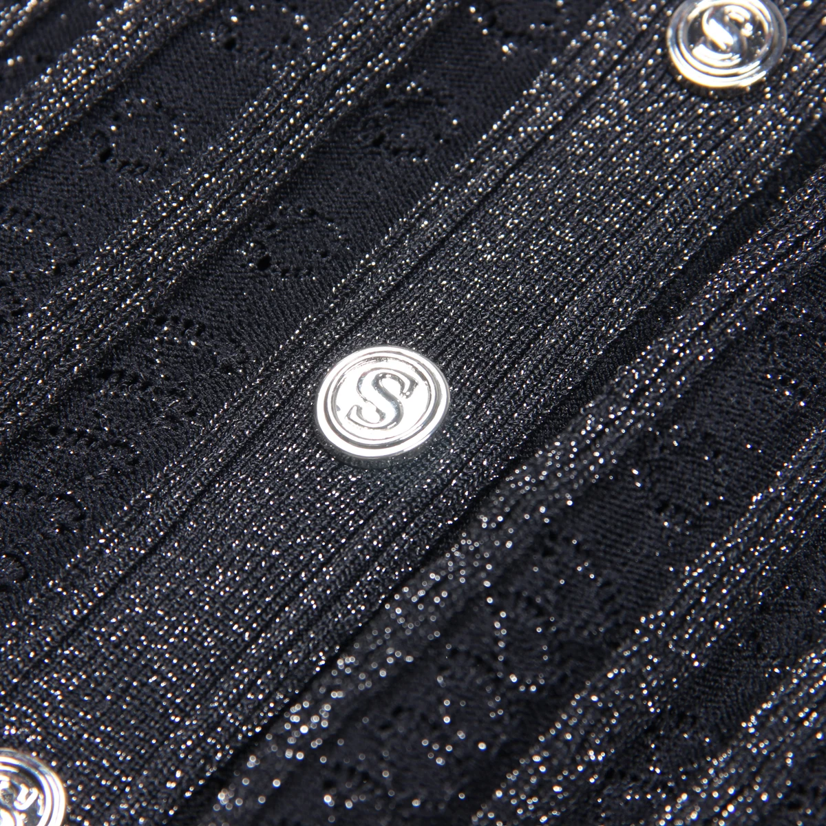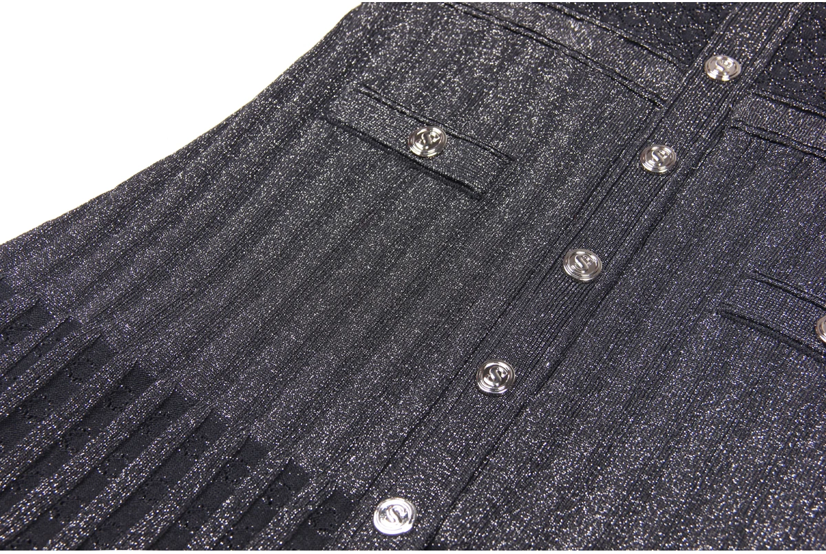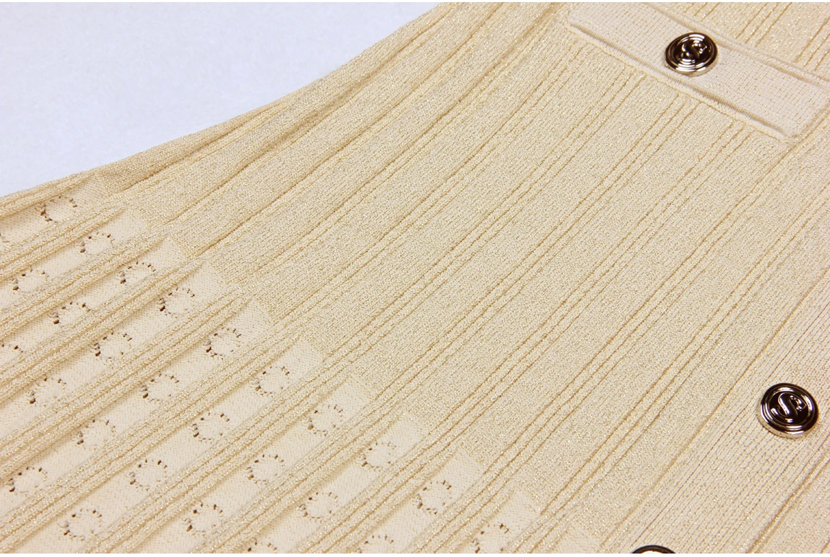 Abito da donna slim fit in pizzo con bottoni a fila singola, collo rotondo lavorato a maglia in seta brillante elastica alla moda di alta qualità