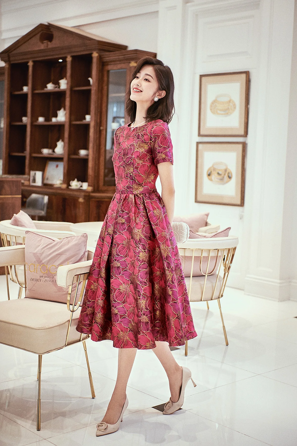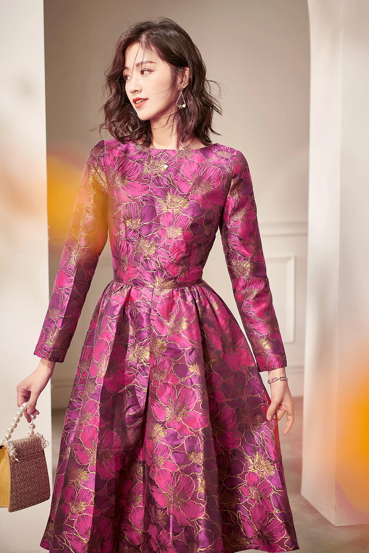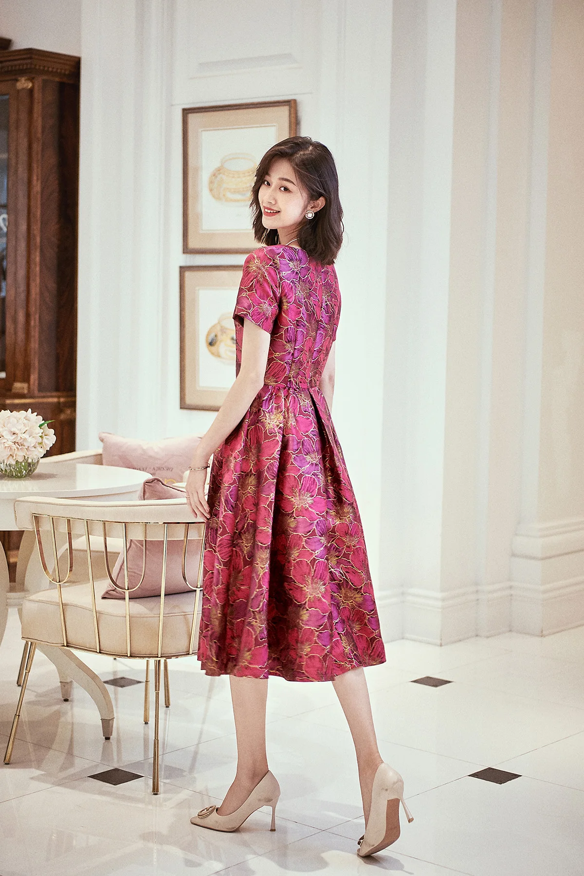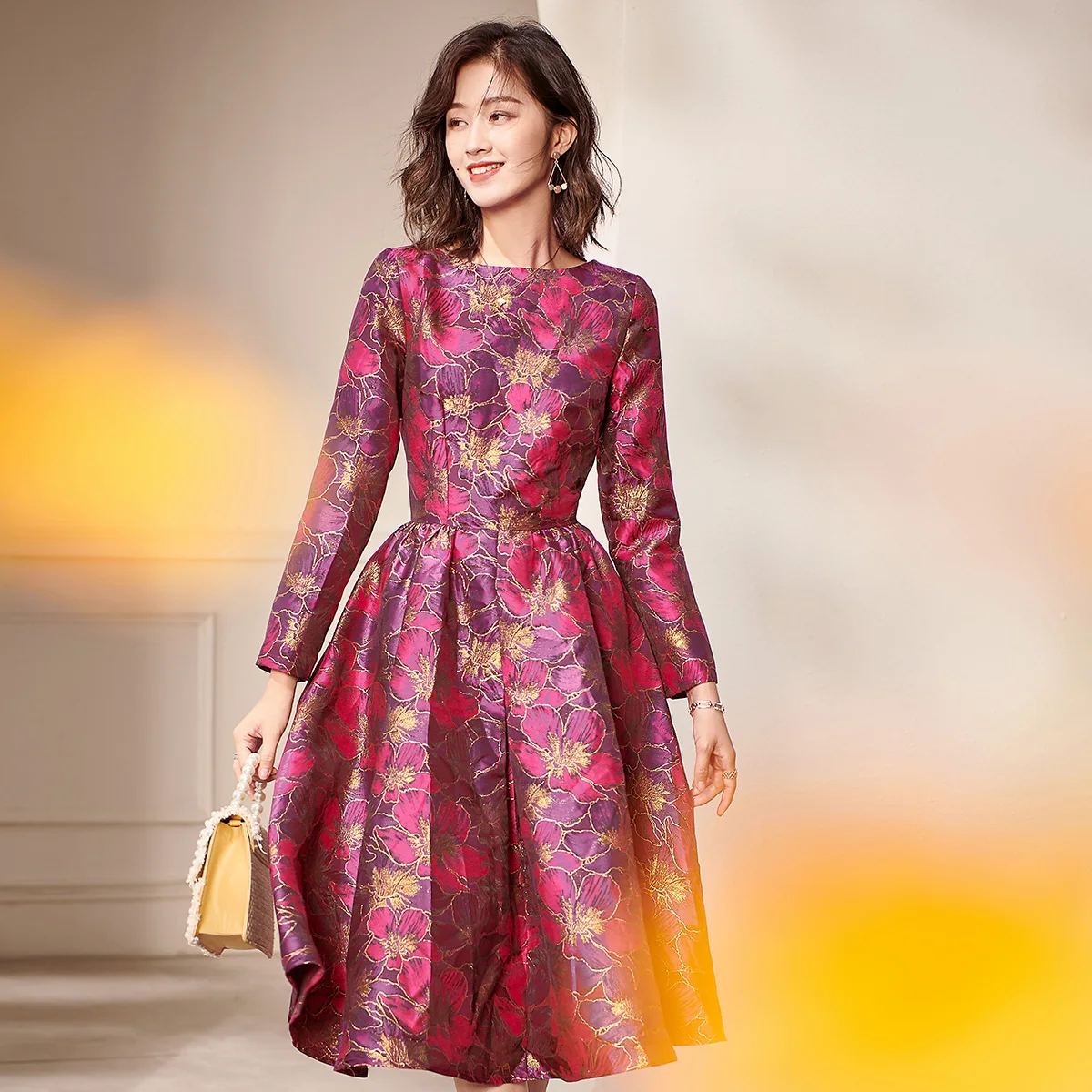 Abito jacquard autunno estate Abito da sera di Capodanno Abito a metà polpaccio stile Inghilterra Abito da festa per donna Abito da ballo HT1137