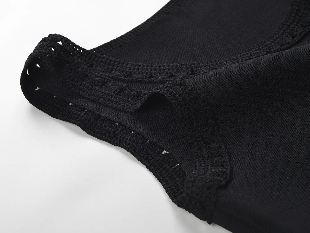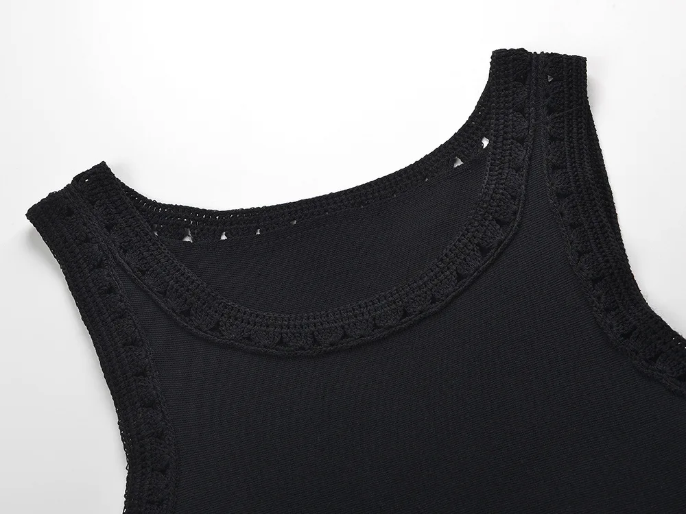 Abito lavorato a maglia con nappe nere Abito da sera lungo sottile e semplice senza maniche lavorato a maglia per le donne Abito lungo nero da festa elegante