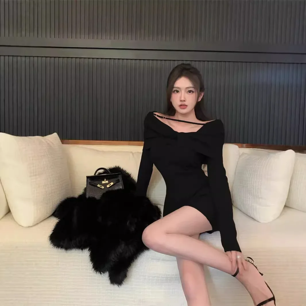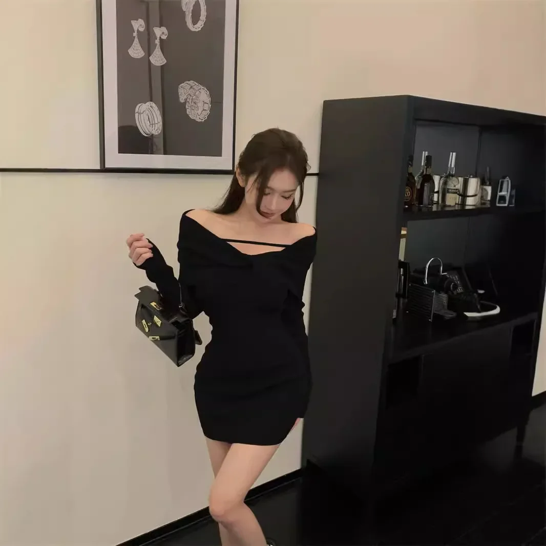 Abito maglione lavorato a maglia rosso con una spalla Autunno Inverno da donna Nuovo stile Base Tube Top avvolgente gonna Abbigliamento femminile alla moda