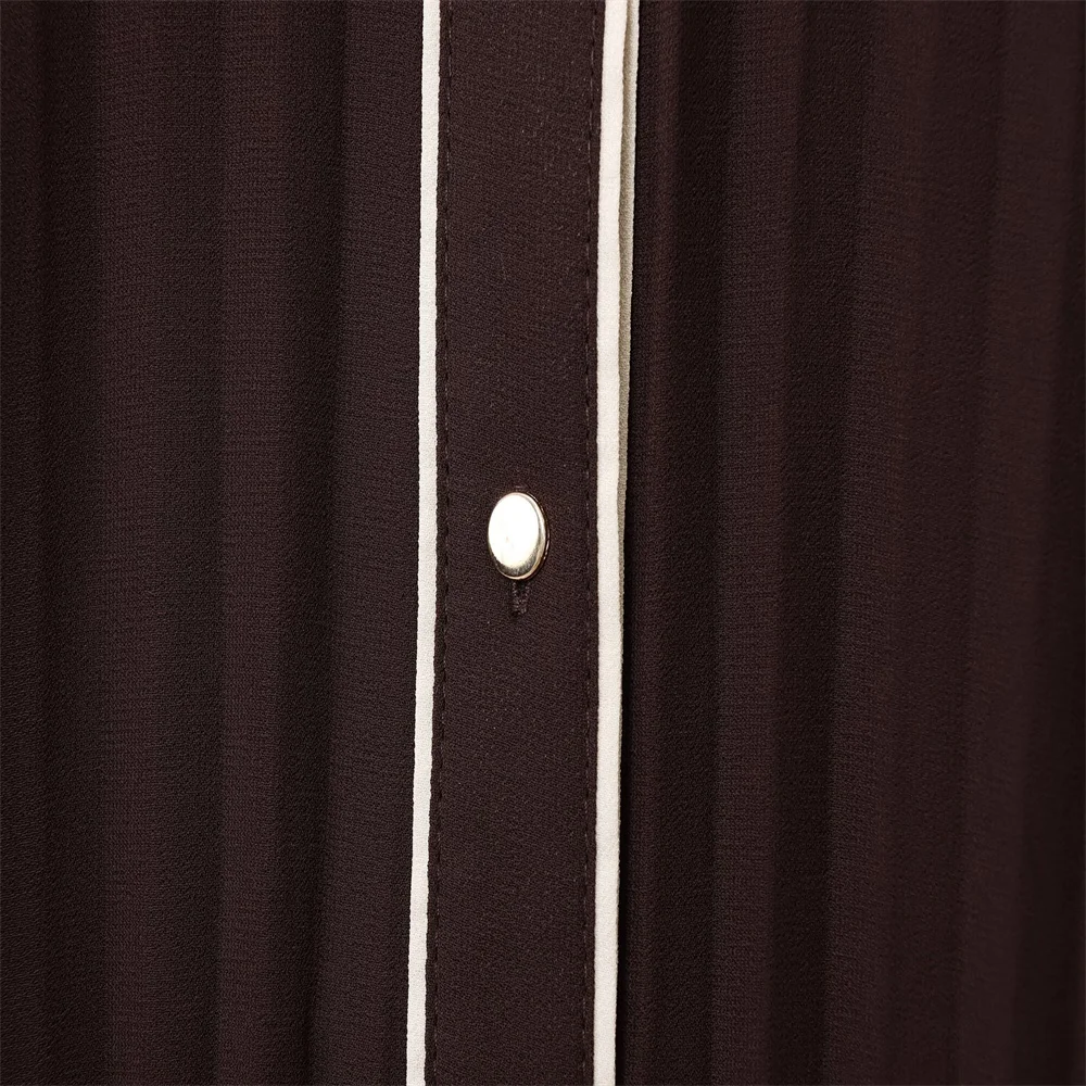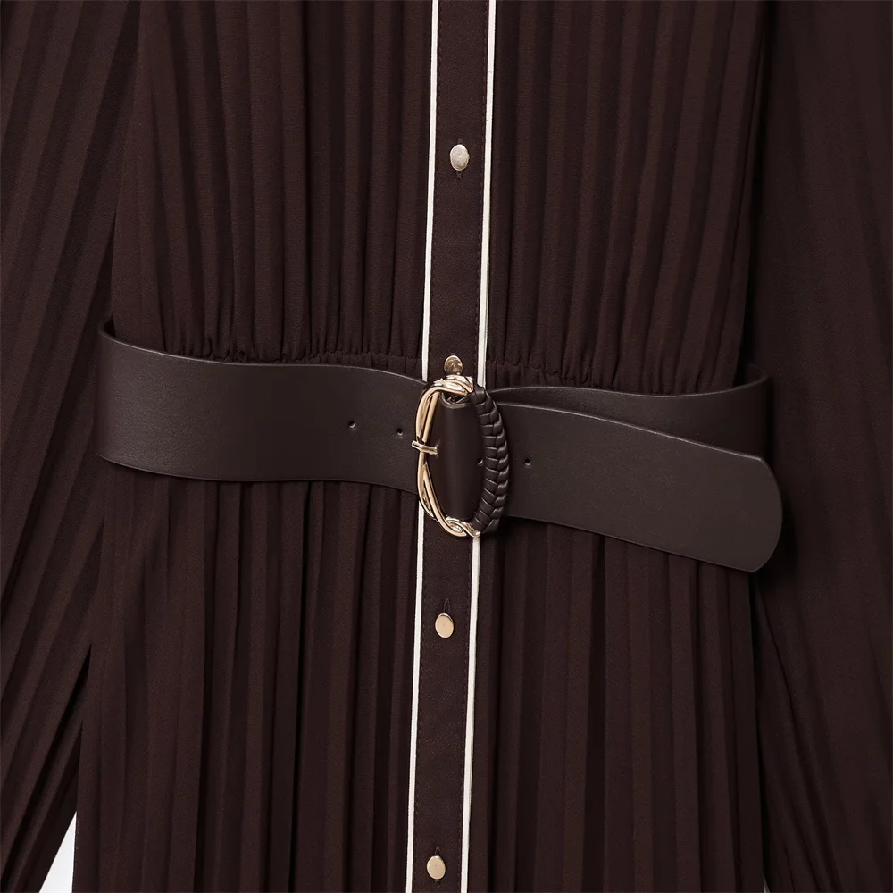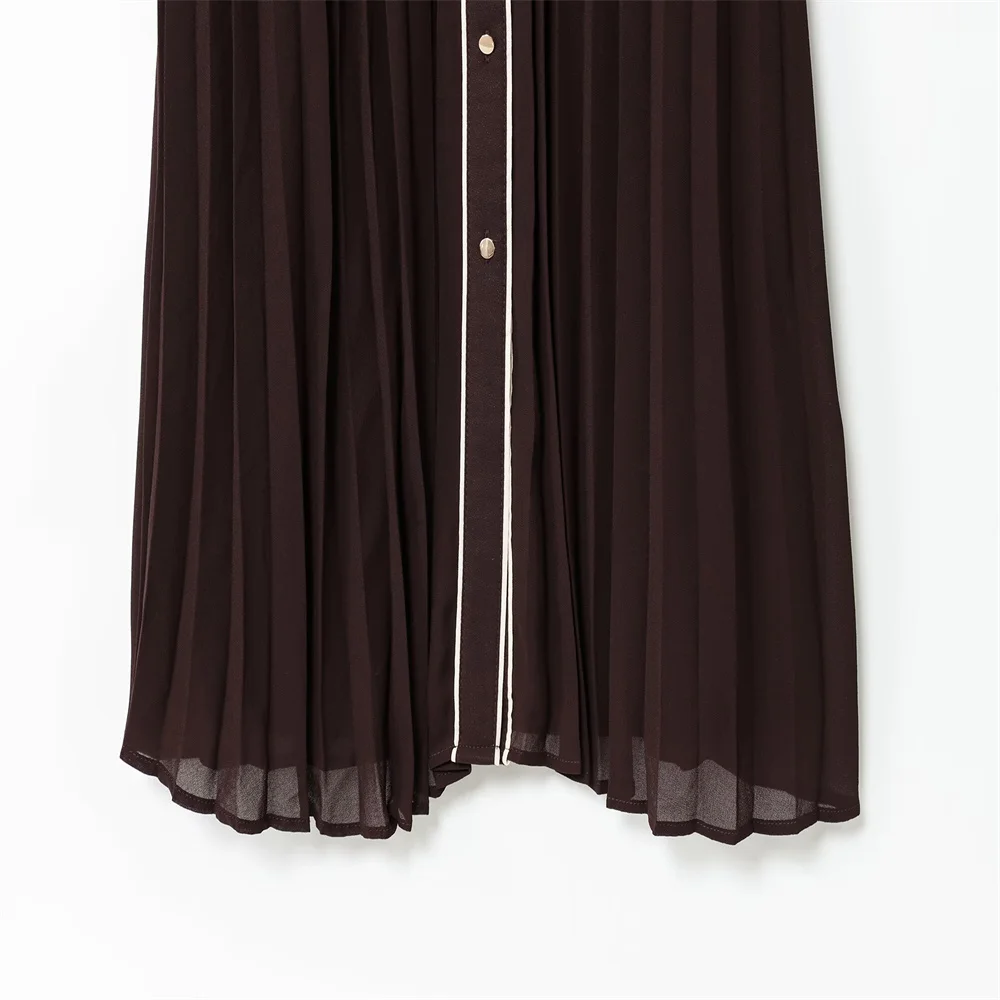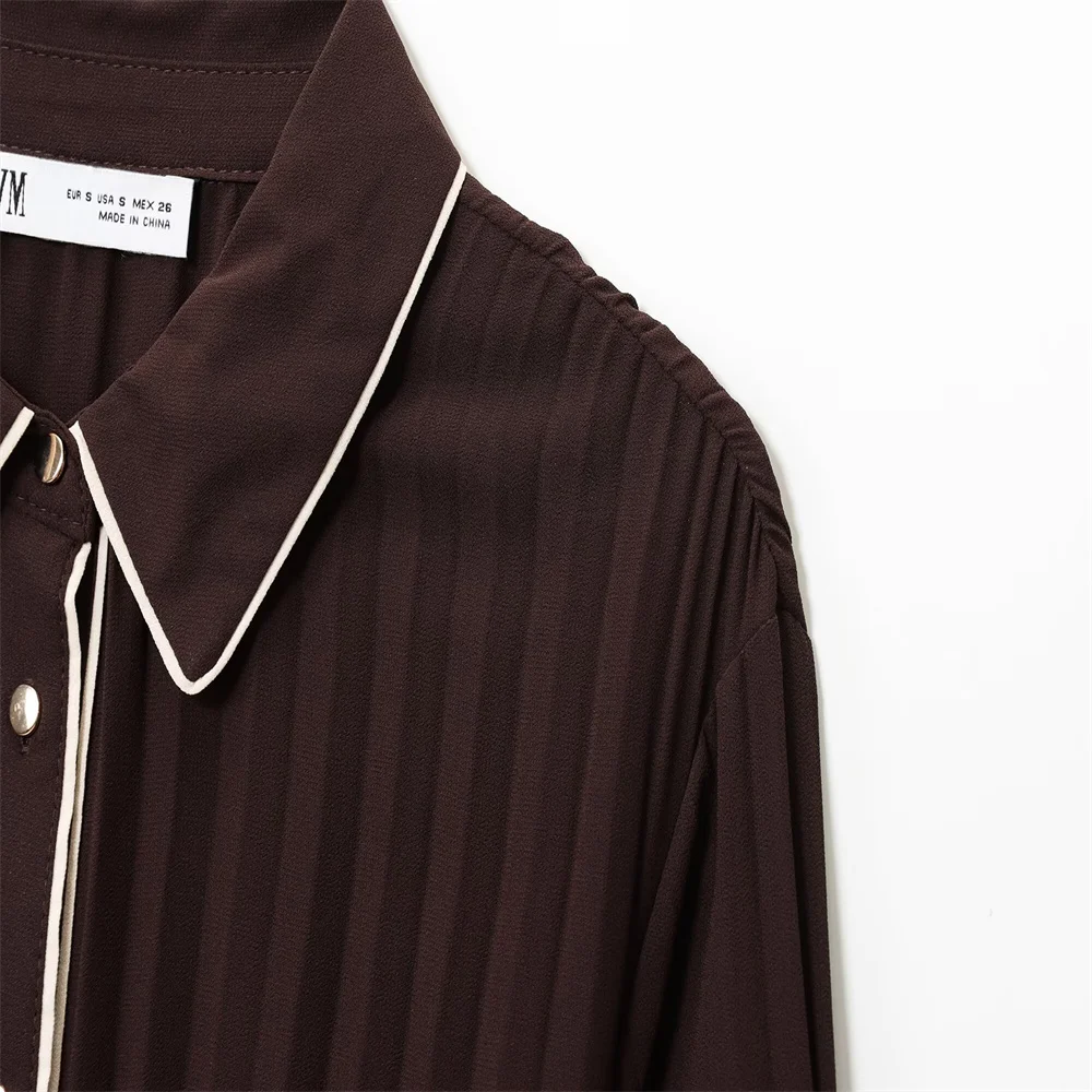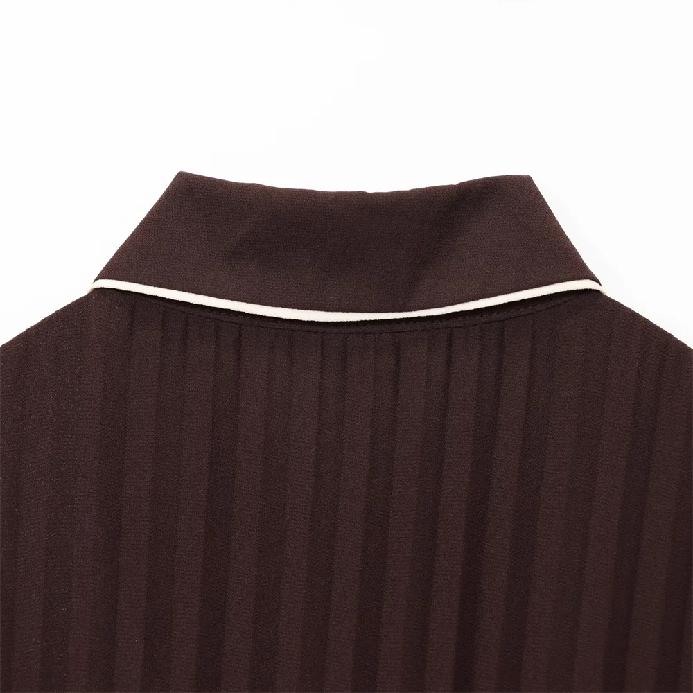 Abito MIDI plissettato patchwork con risvolto e cintura da donna nuovo autunno